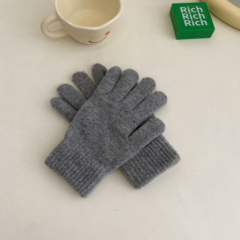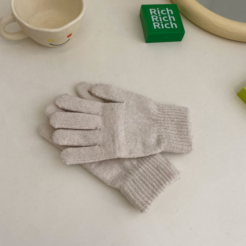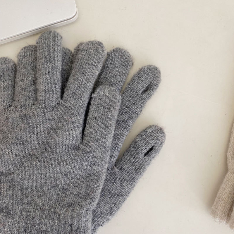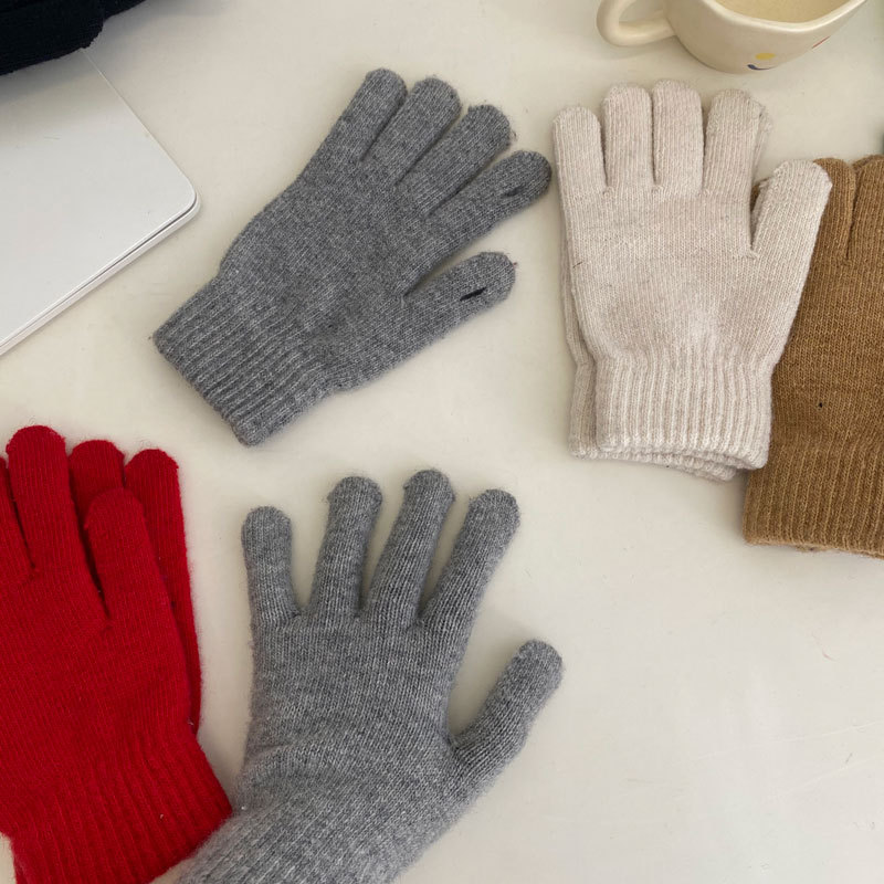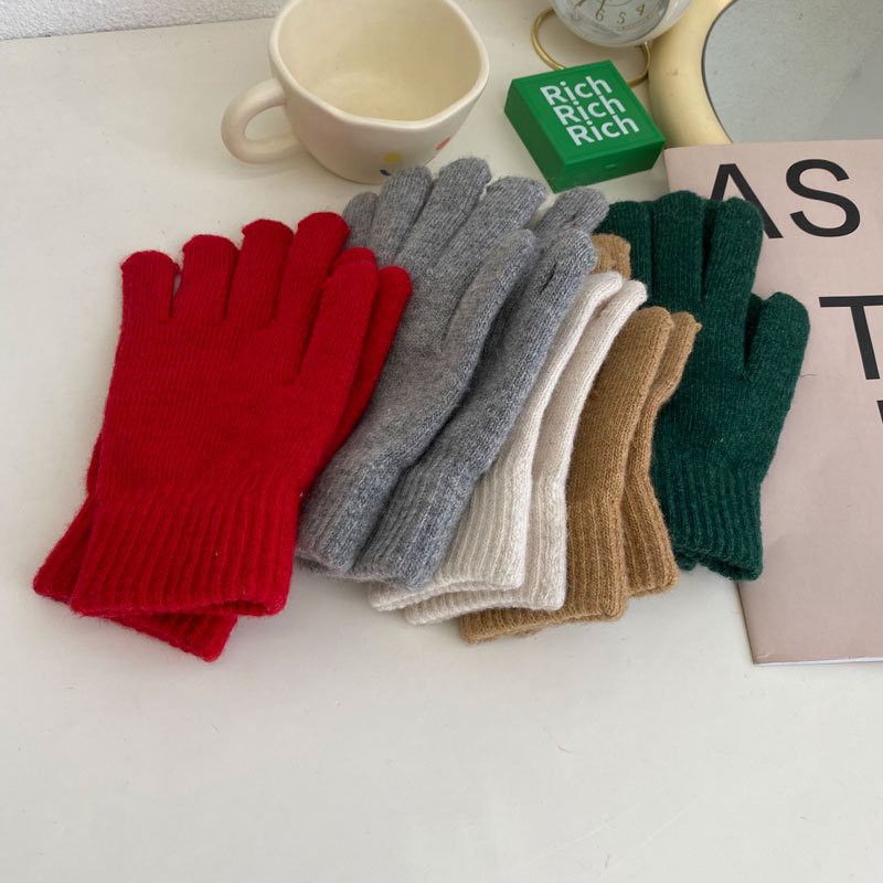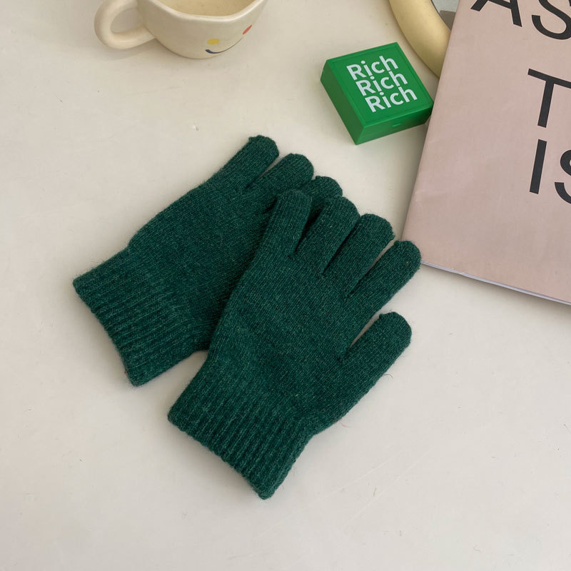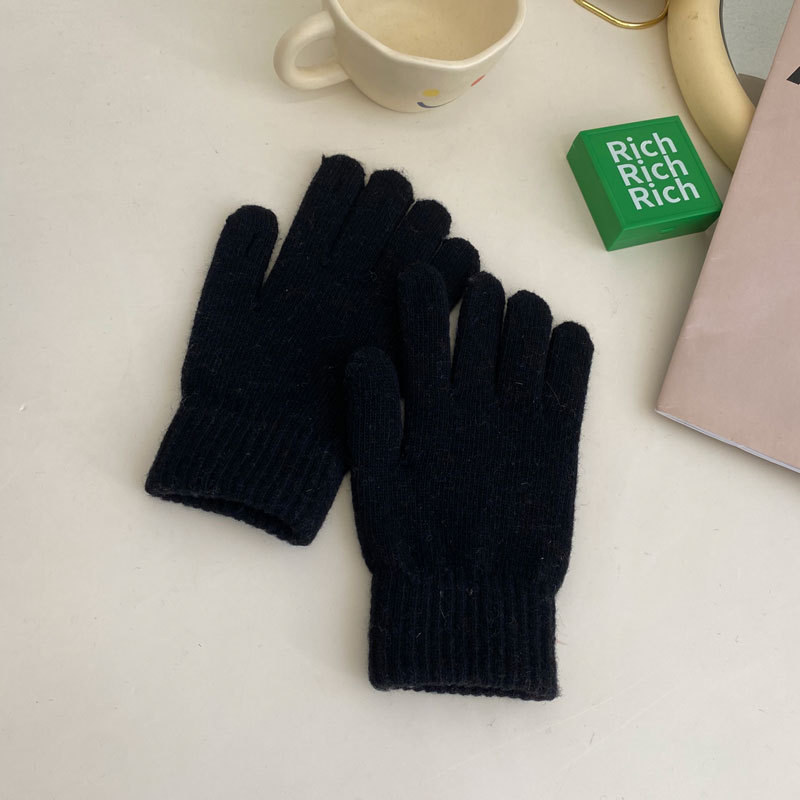 한국 스타일 세련된 스타일 단색 양모 장갑 여성 일본식 복고풍 손가락 장갑 유행 겨울 따뜻한 손가락 니트