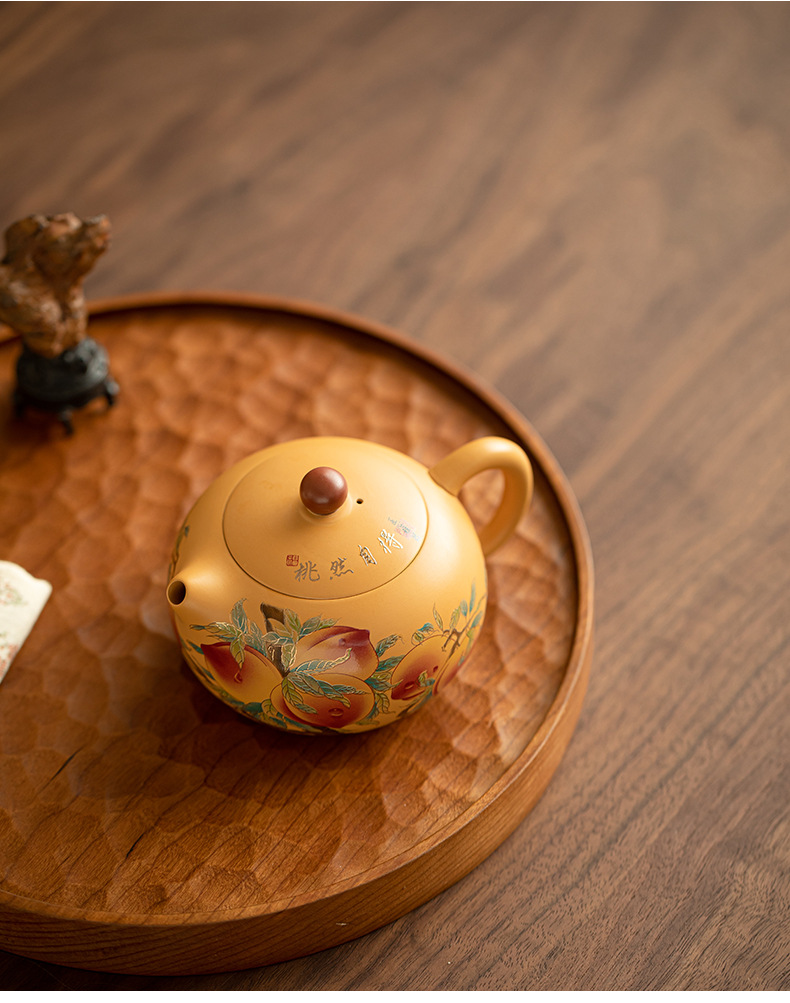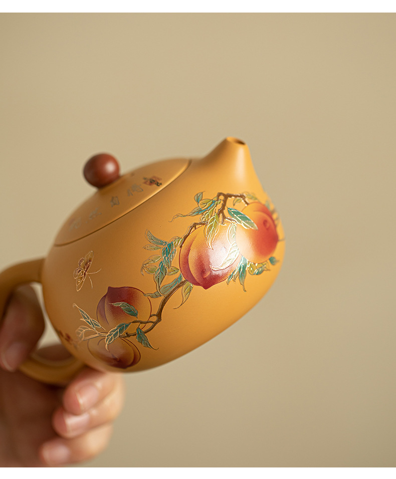9 개의 복숭아 보라색 점토 냄비 생 광석 골드 듀안 머드 주전자 시시 냄비 가정용 차 세트 쿵푸 주전자 차 냄비 손 행사스토어 가기