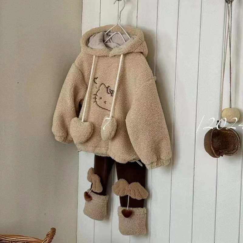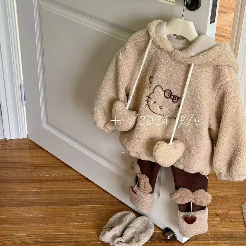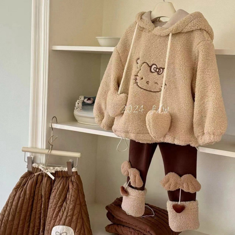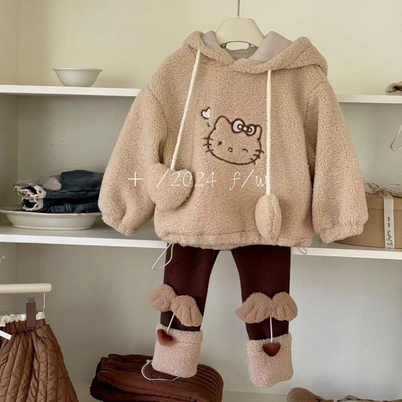 통 xingyuan 2024 겨울 의류 소녀 세트 만화 자수 양모 탑 패션 봉제 아기 레깅스 조수스토어 가기