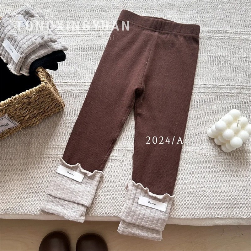 통 xingyuan 2024 겨울 의류 소녀 세트 만화 자수 양모 탑 패션 봉제 아기 레깅스 조수