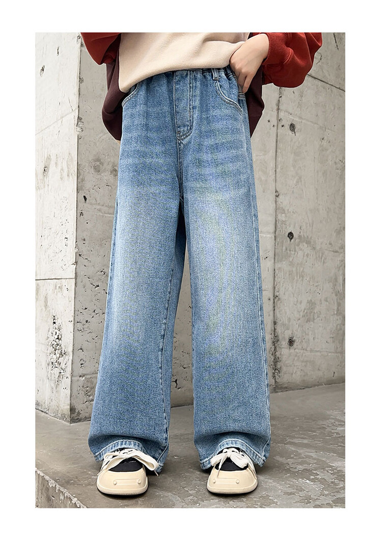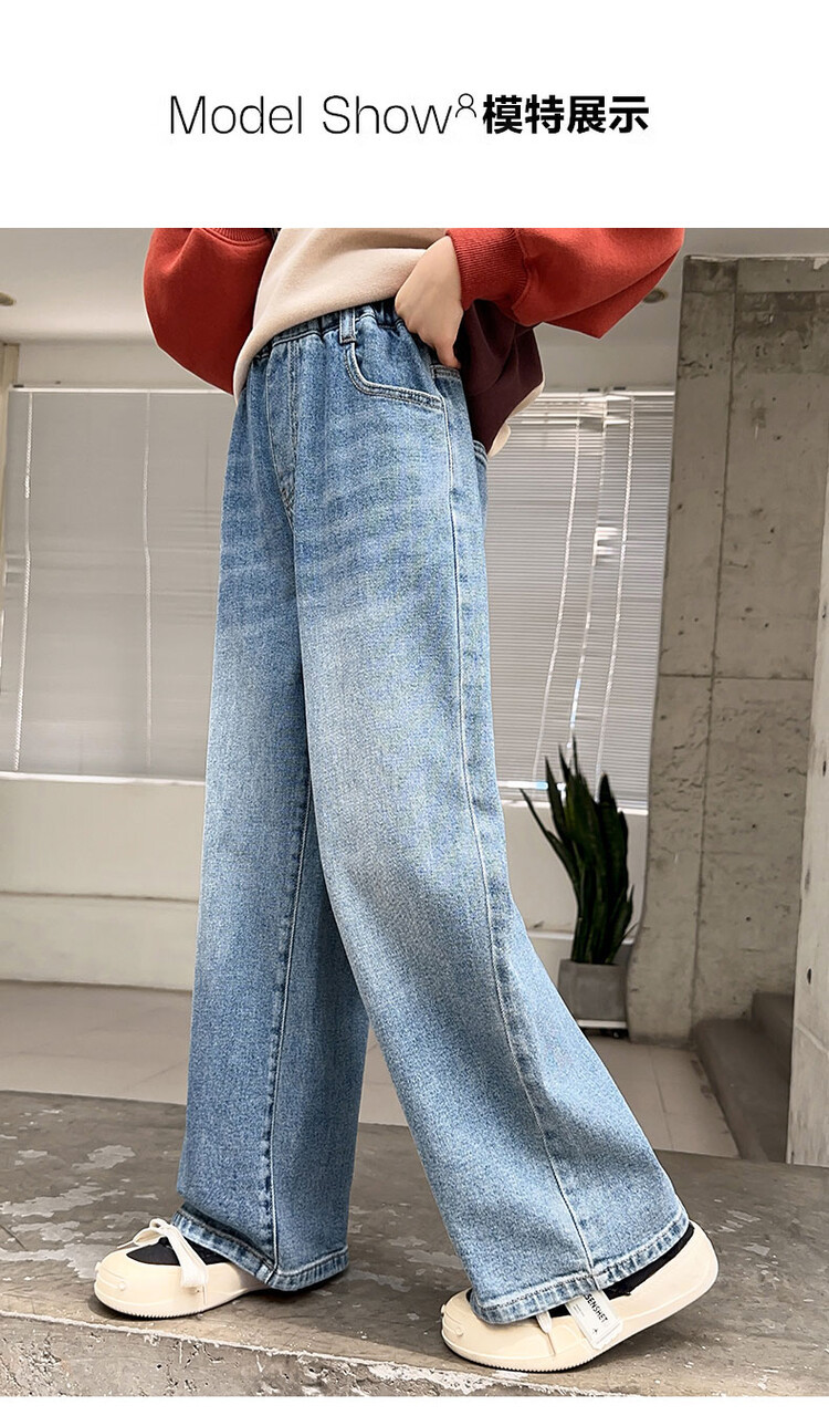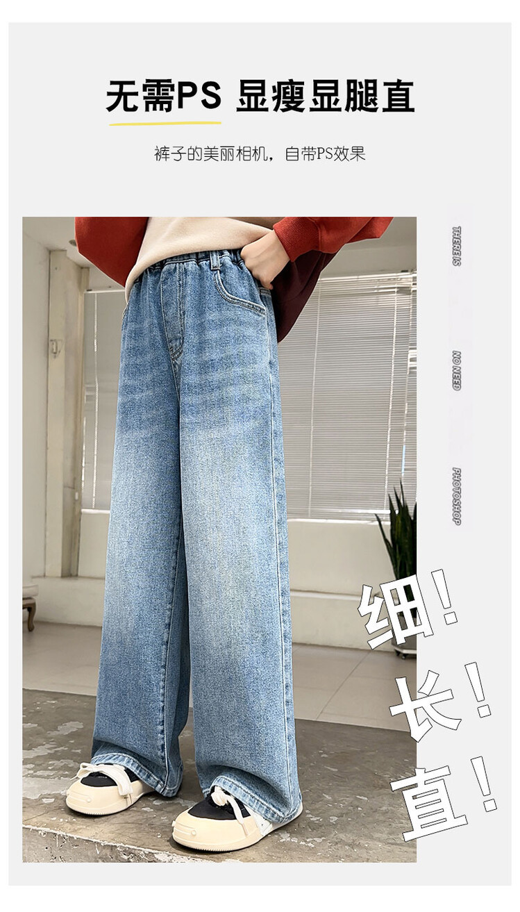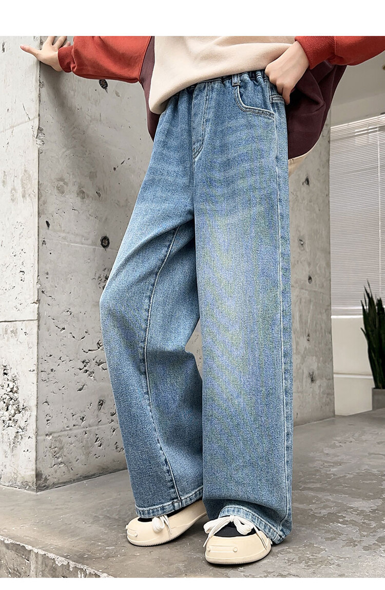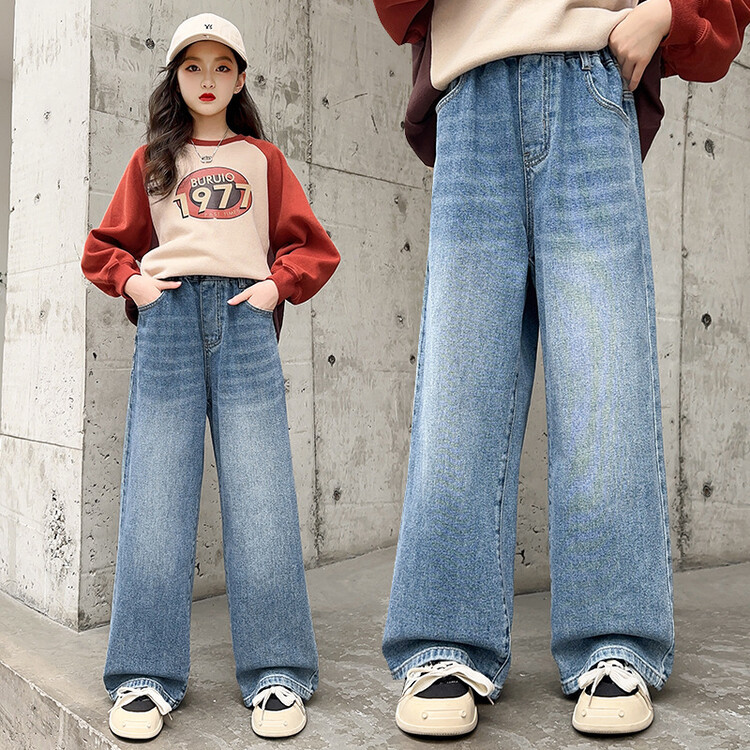 소녀 바지 봄과 가을 2024 새로운 어린이 가을 스트레이트 넓은 다리 바지 여성용 큰 어린이 느슨한 청바지스토어 가기