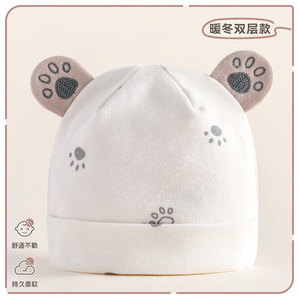 아기 모자 가을과 겨울 순면 신생아 모자 아기 더블 레이어 할로겐 문 보호 아기 귀여운 태아 모자스토어 가기