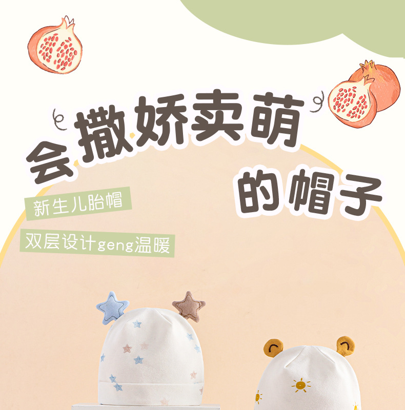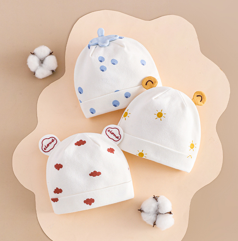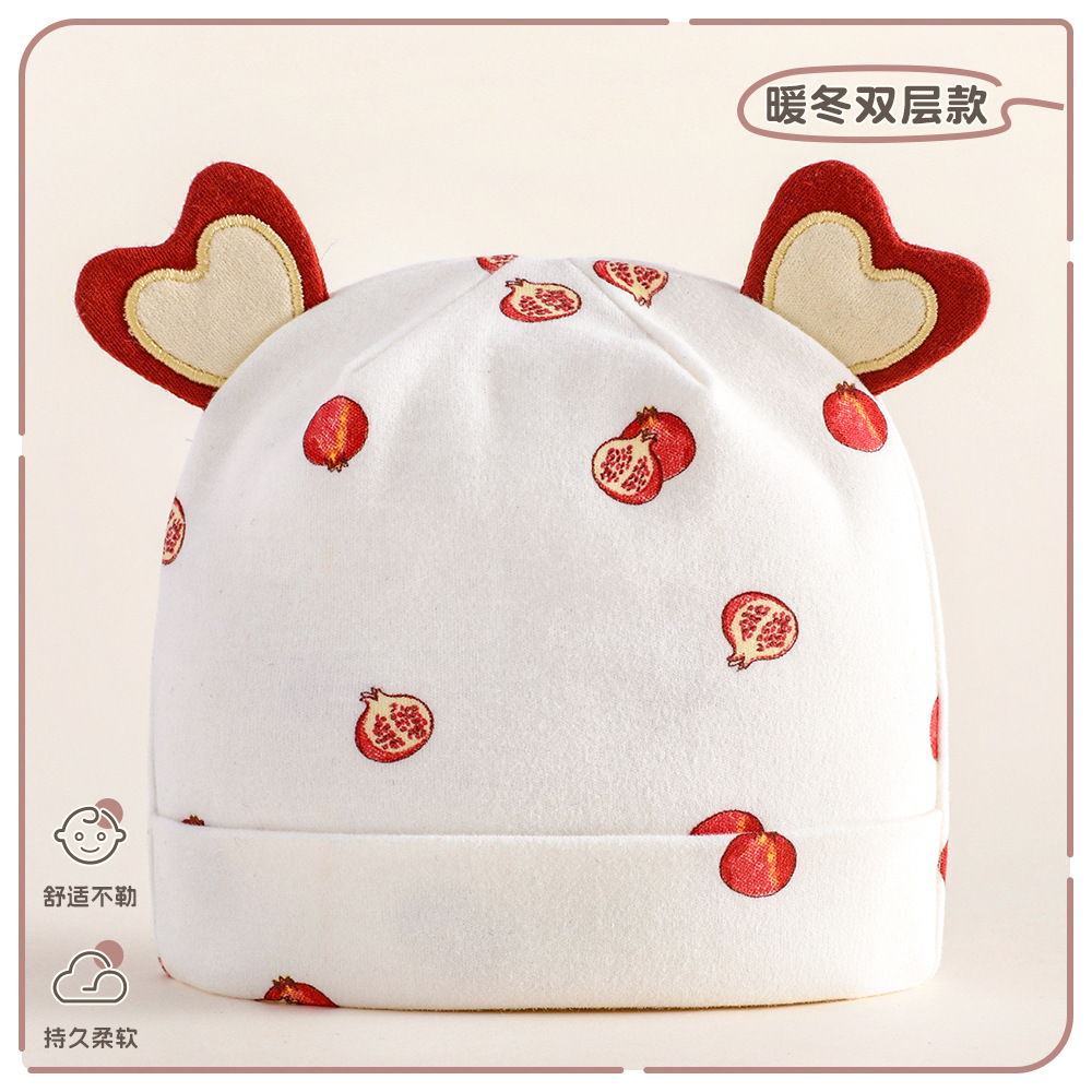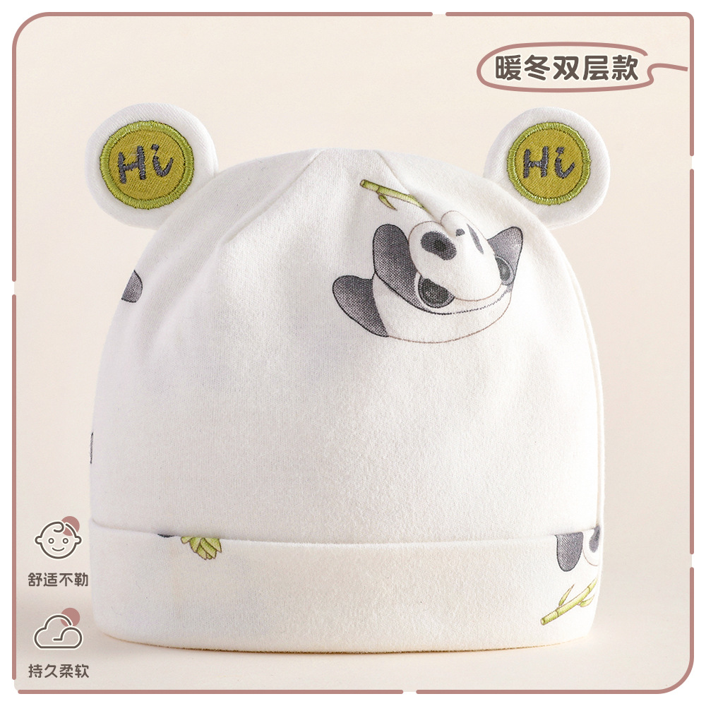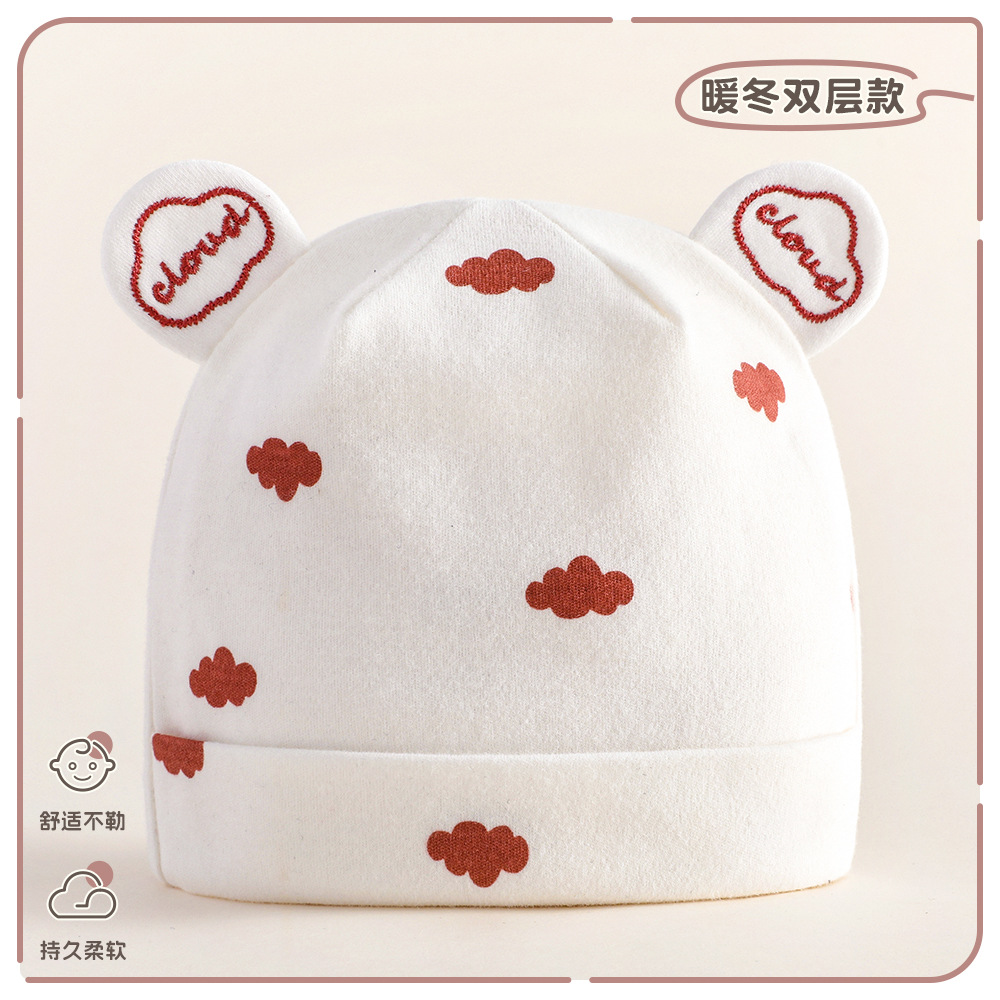 아기 모자 가을과 겨울 순면 신생아 모자 아기 더블 레이어 할로겐 문 보호 아기 귀여운 태아 모자