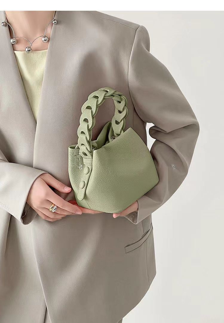 오늘의 핑크 부드러운 가죽 수제 버킷 백 여성의 휴대용 어깨가 우송료 집 세대를 걸었습니다.스토어 가기