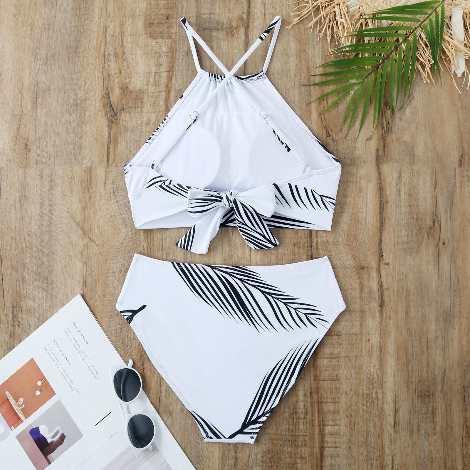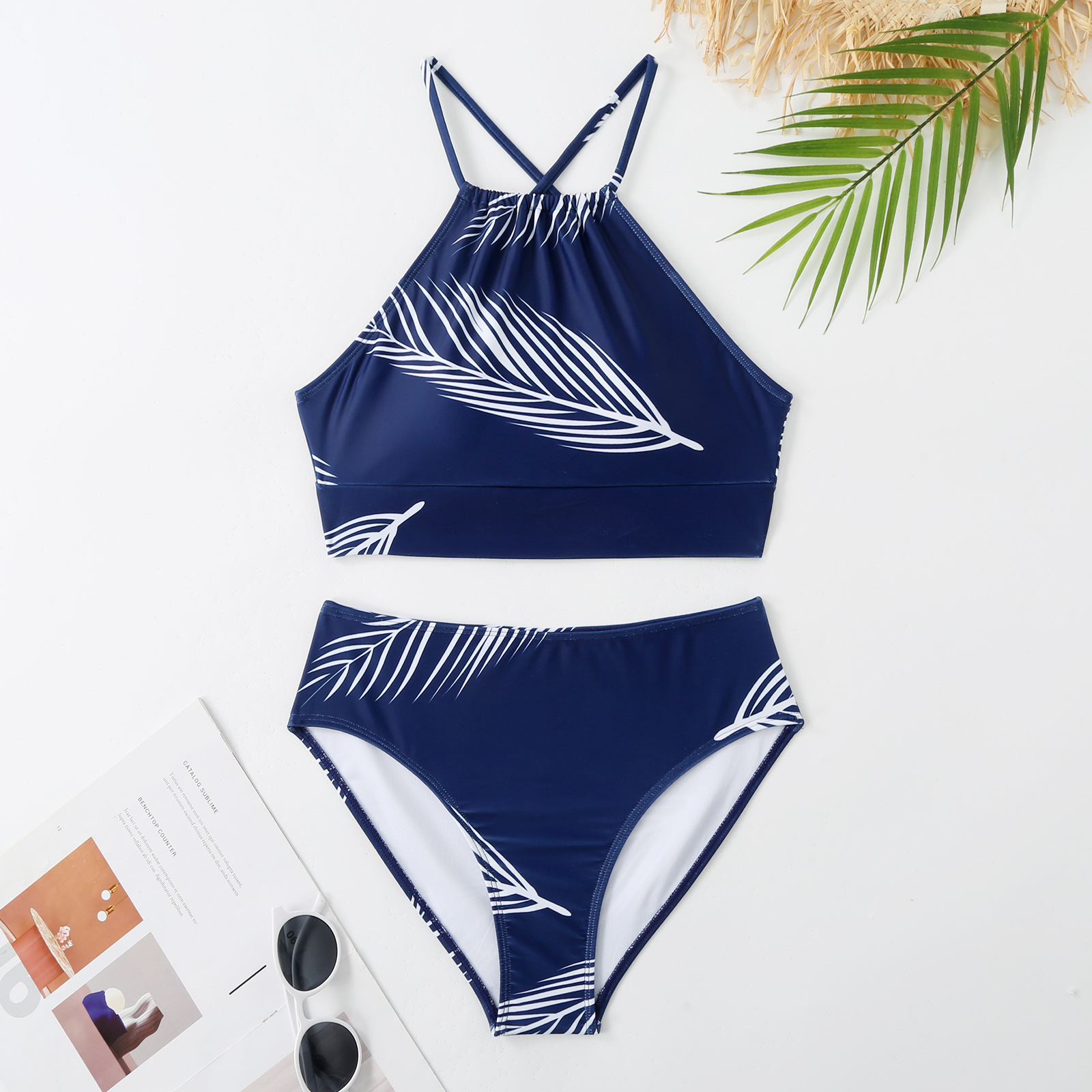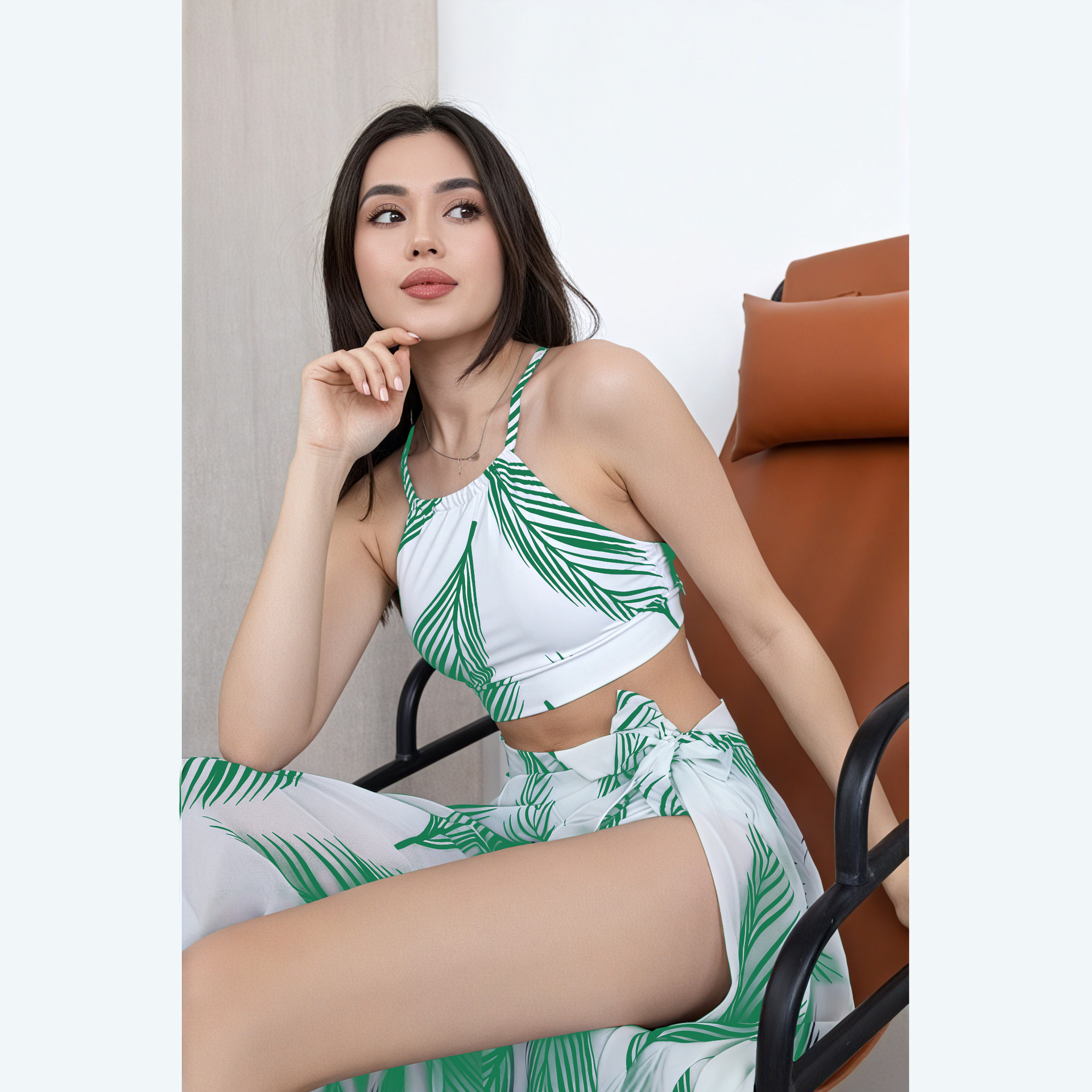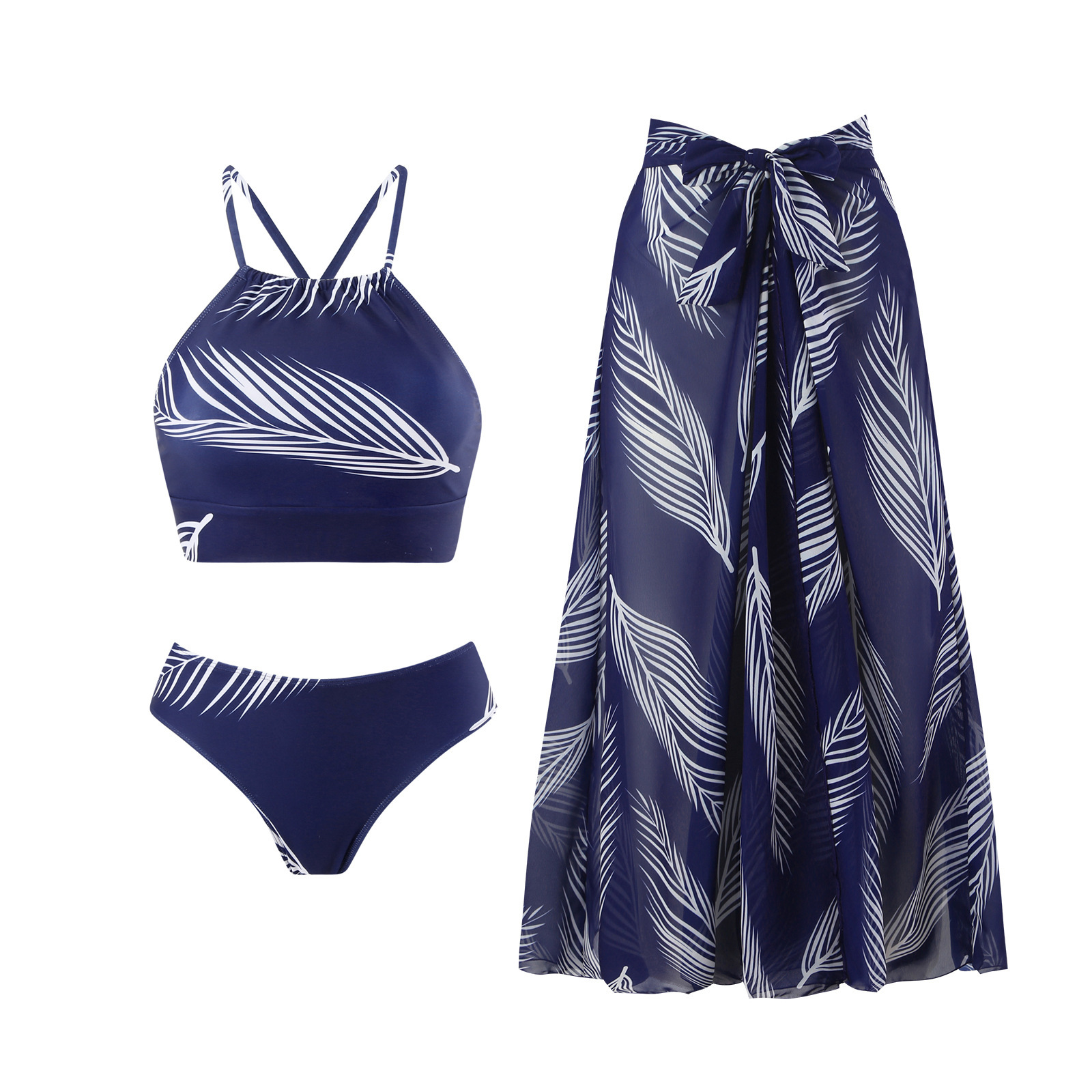 2025 유럽과 미국의 새로운 분할 3 피스 스커트 슬링 선 스크린 수영복 아마존 깃털 인쇄 여성 수영복