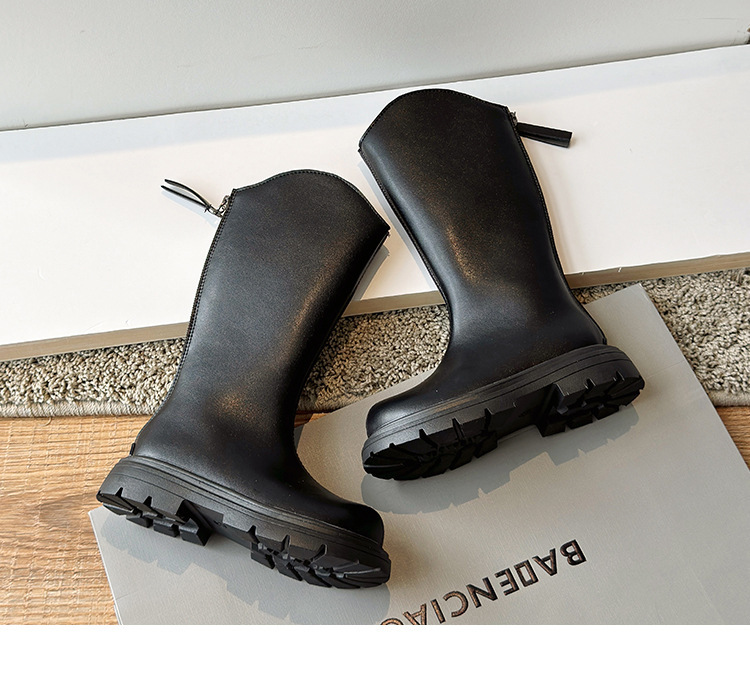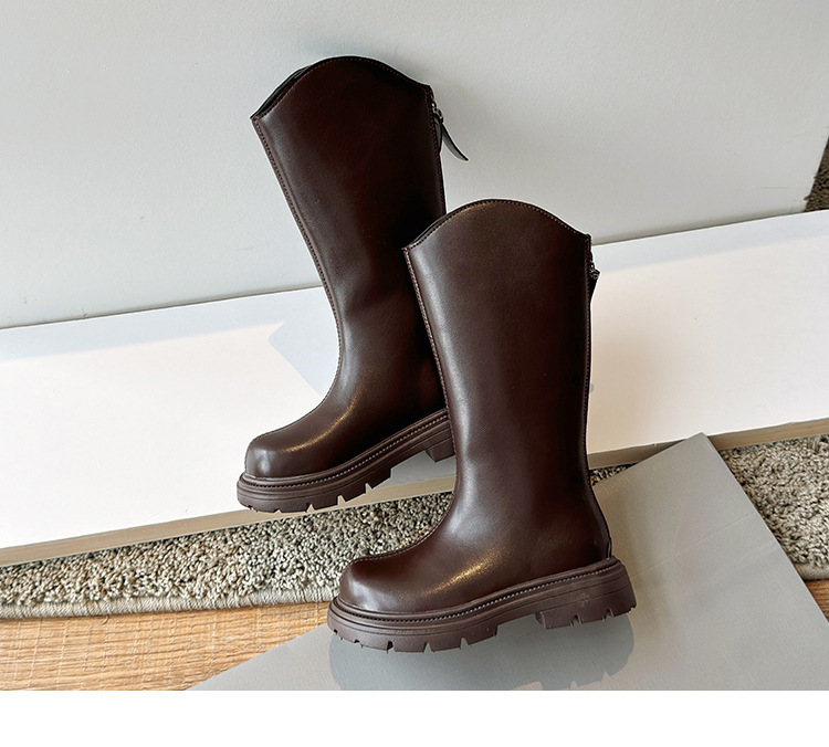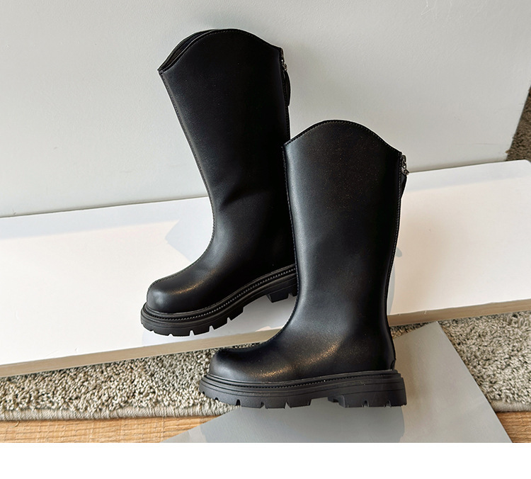 어린이 마틴 부츠 2024 가을 및 겨울 새로운 영국 스타일 기사 부츠 소녀 부드러운 바닥 면화 긴 부츠 높은 가죽 부츠