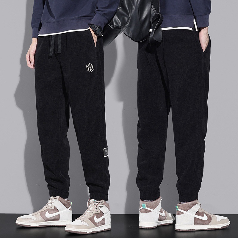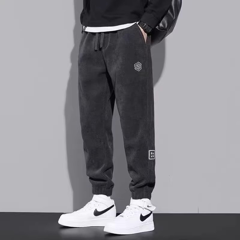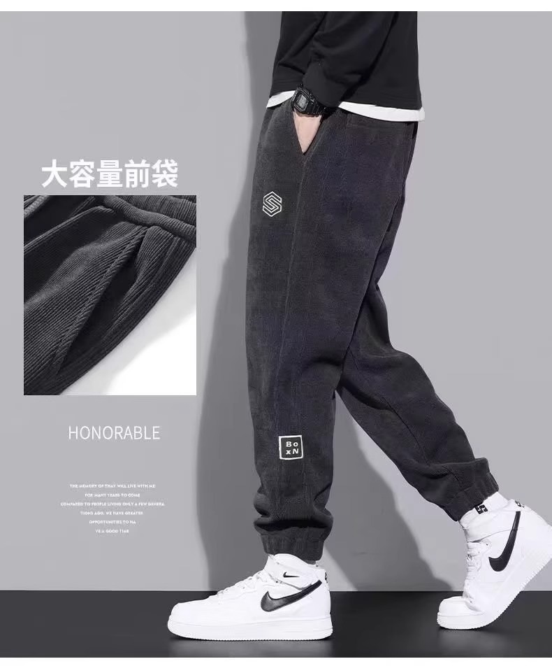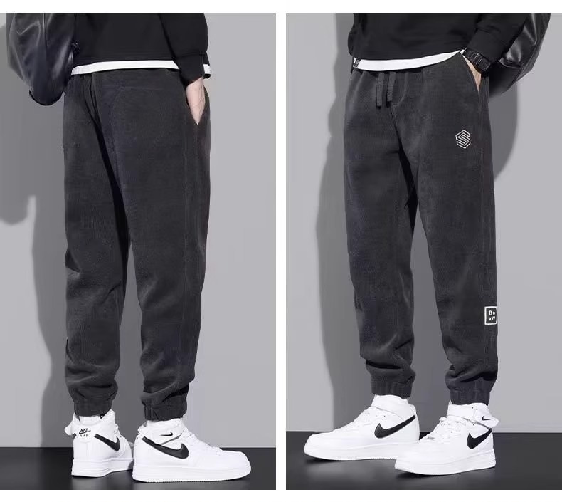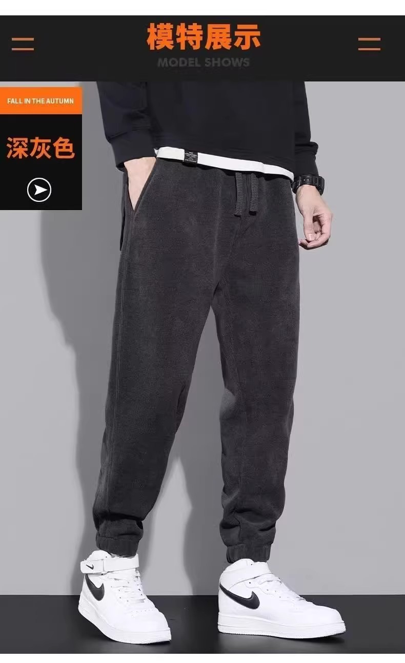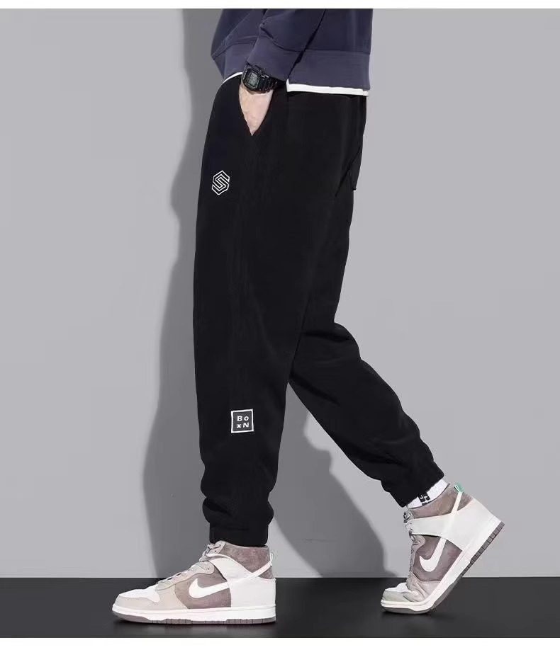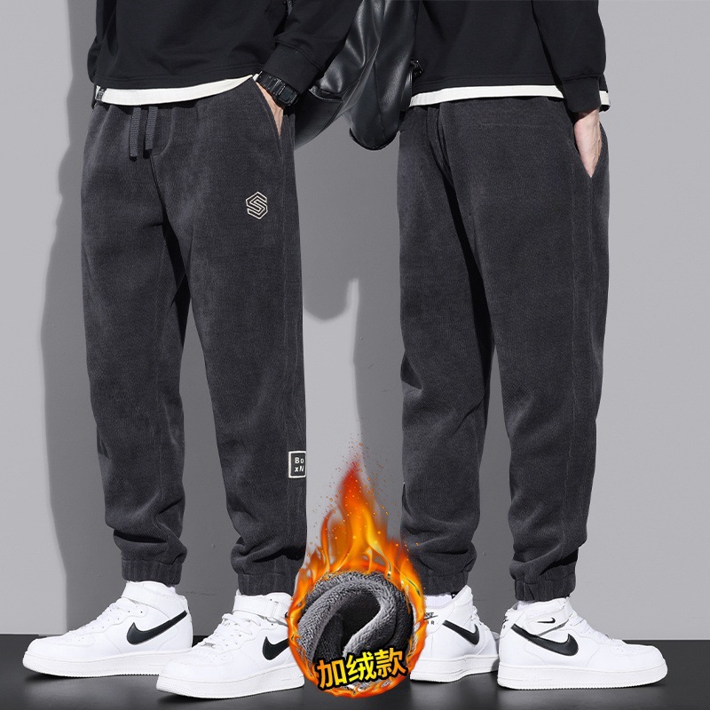 캐주얼 바지 남자 가을과 겨울 2024 새로운 스타일 땀 바지 남자 코듀로이 따뜻한 스포츠 긴 바지 기모 두껍게스토어 가기