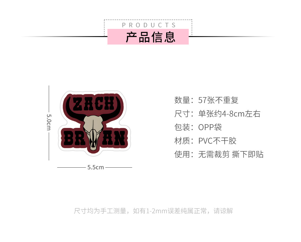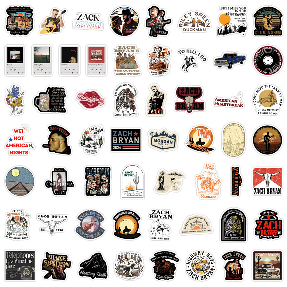 55 개의 새로운 Zach Bryan 낙서 스티커 장식 스케이트 보드 휴대 전화 국경 방수 스티커 제조 업체 도매