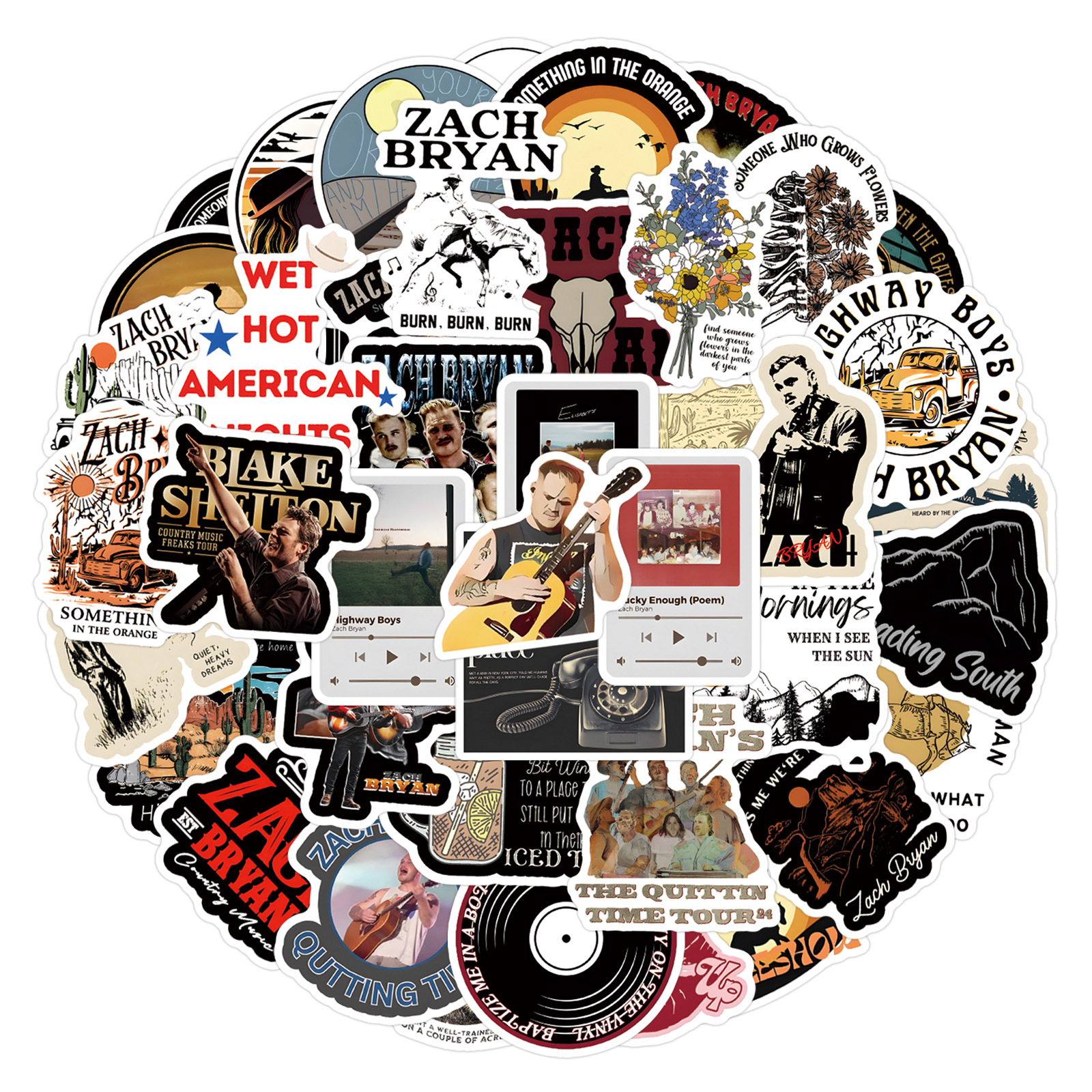 55 개의 새로운 Zach Bryan 낙서 스티커 장식 스케이트 보드 휴대 전화 국경 방수 스티커 제조 업체 도매스토어 가기
