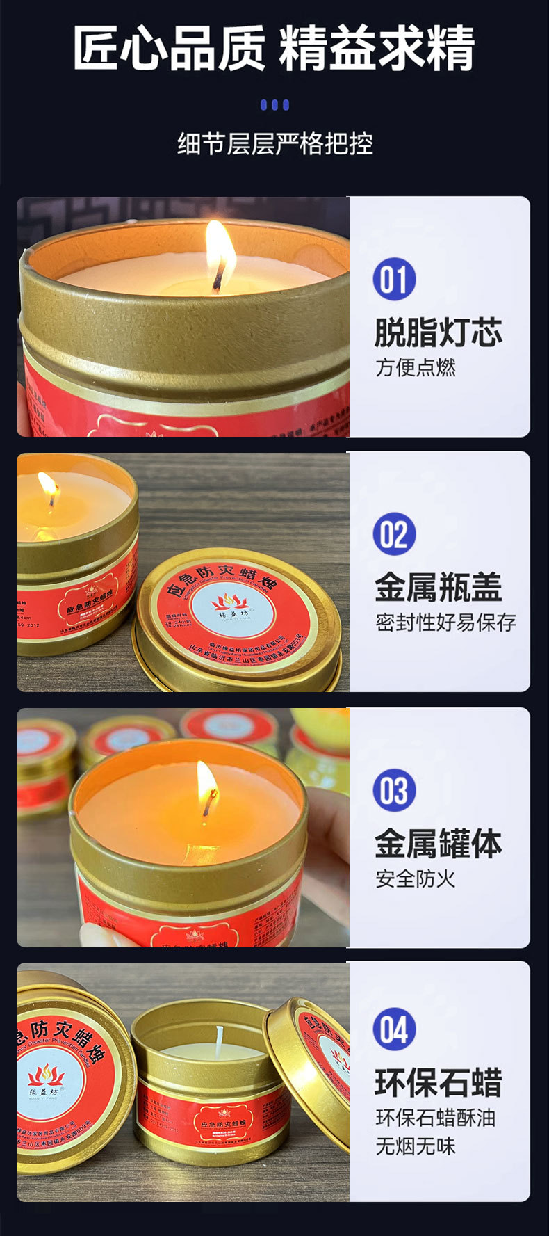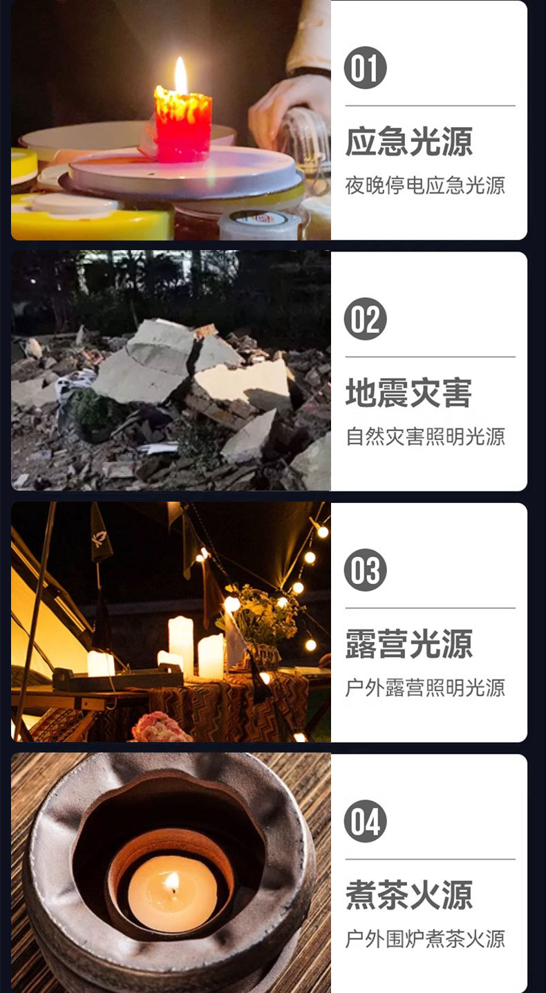 采用金属外壳,防风防雨,植物蜡制作,无烟无味。