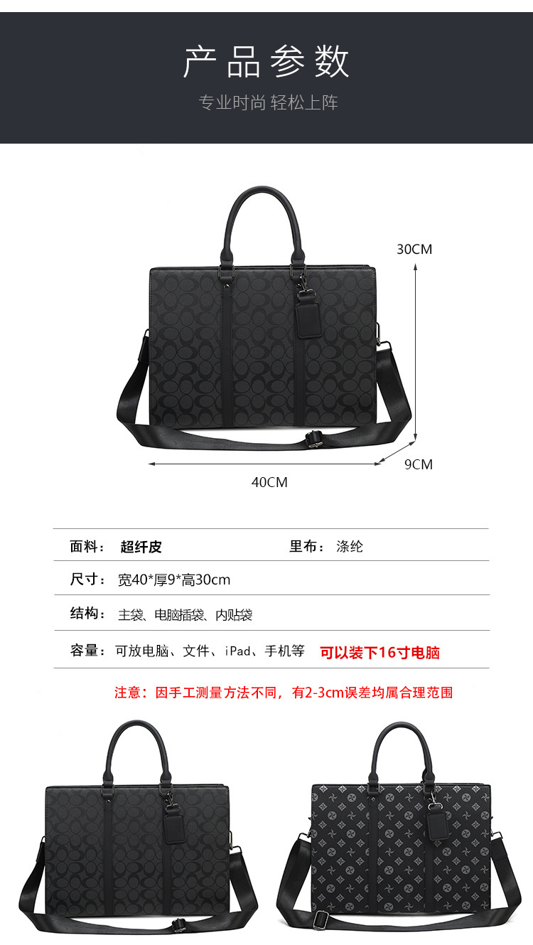 유럽과 미국의 새로운 남성 비즈니스 서류 가방 대용량 패션 노트북 가방 A4 파일 가방 OL 서류 가방