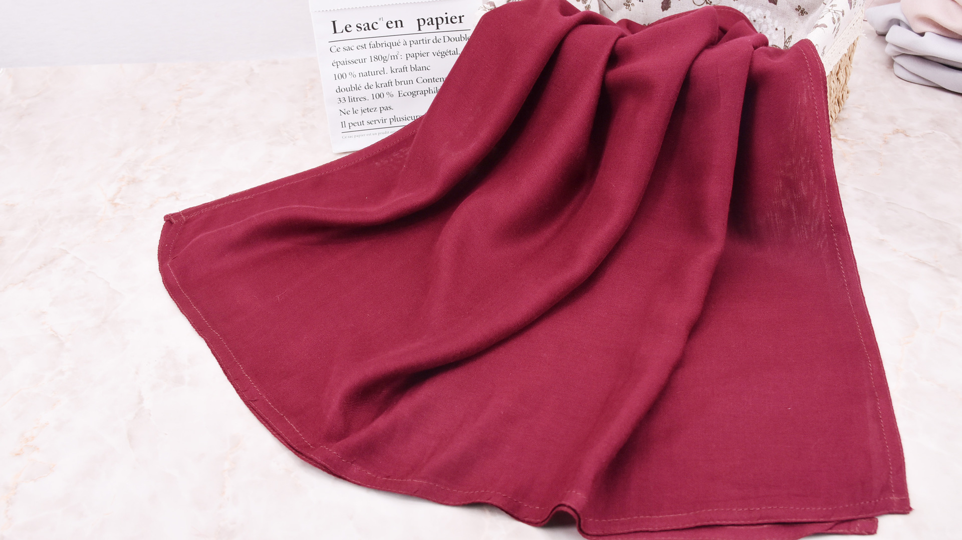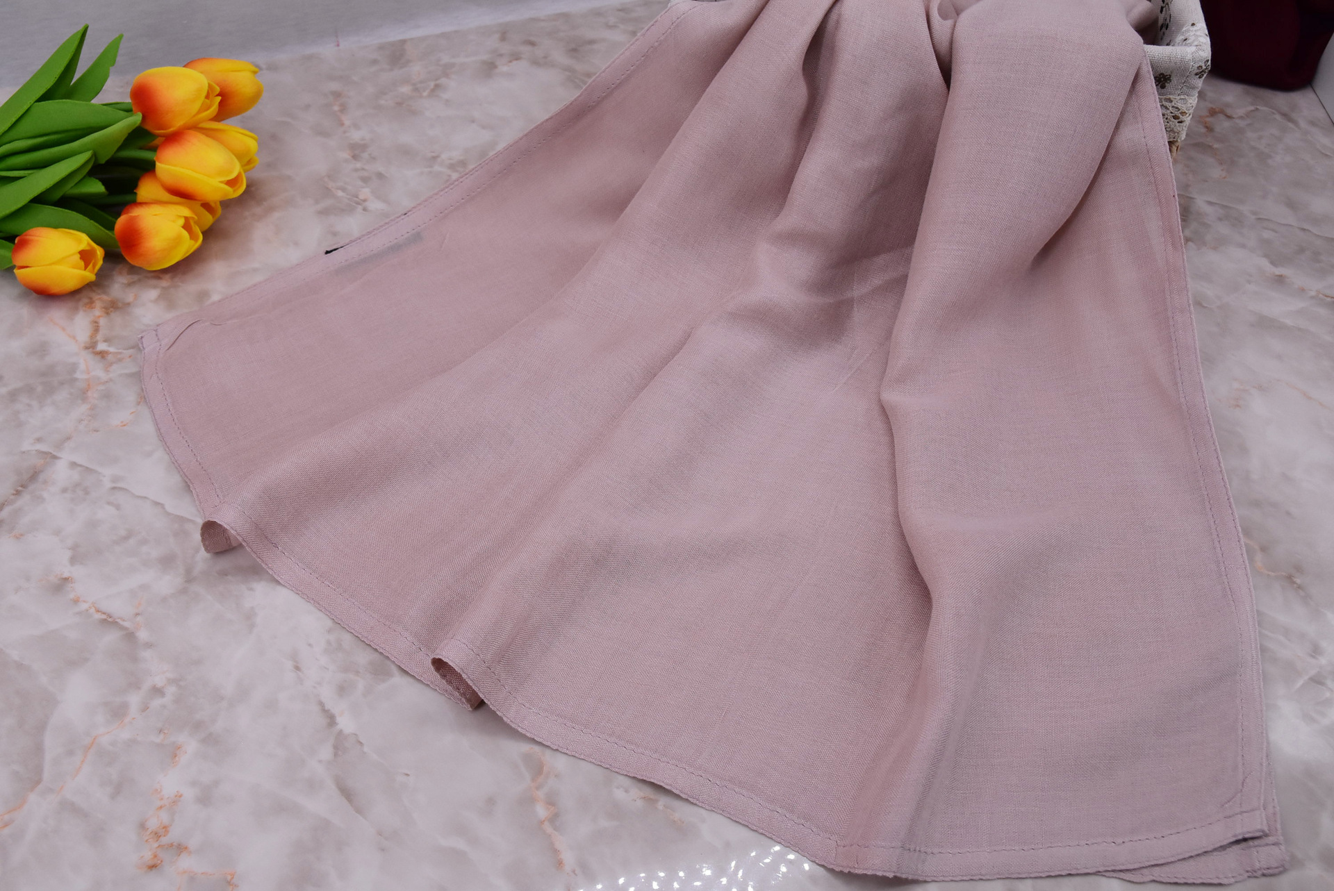 새로운 디자인의 이중 스티치 모달 스카프, 단색, 부드럽고 통기성 좋은 넓은 가장자리의 중동 스타일 숄/헤드스카프, 패셔너블하고 다용도스토어 가기