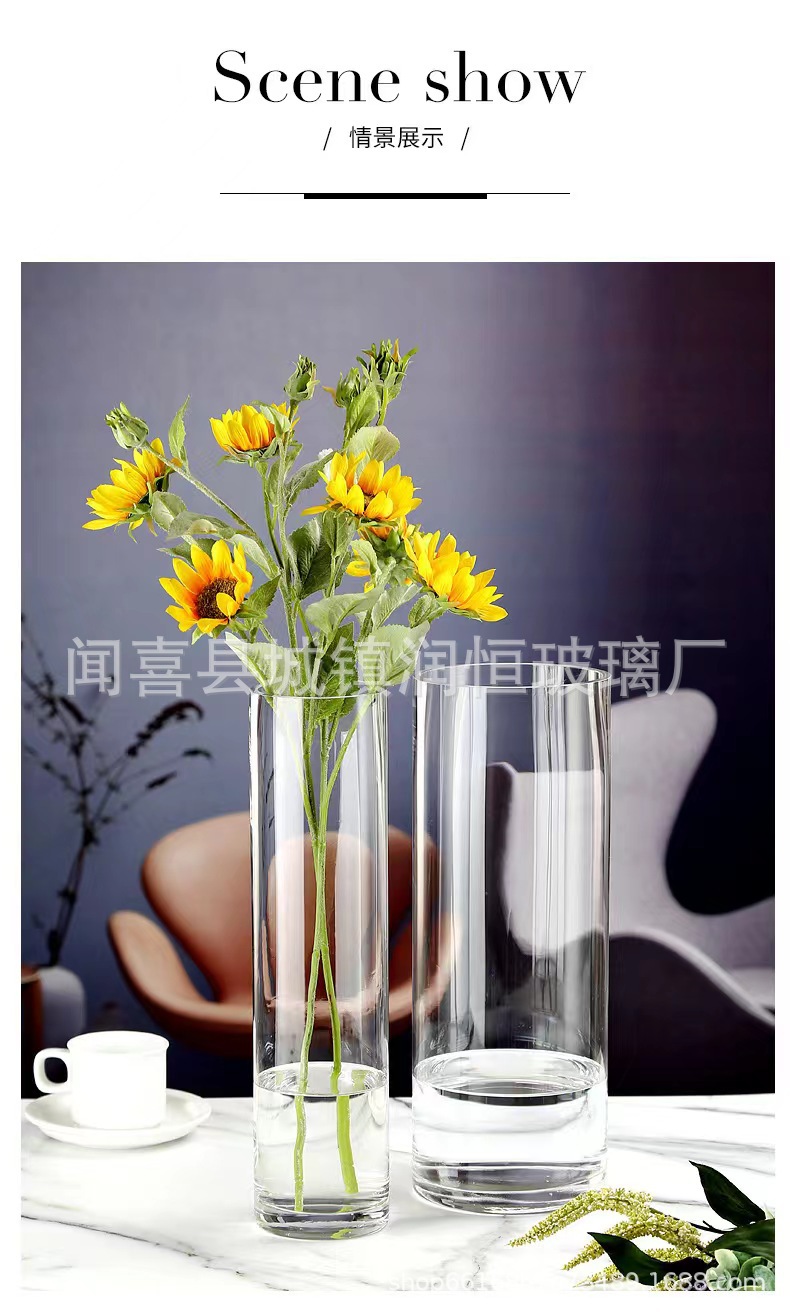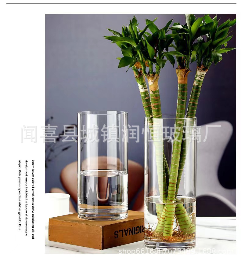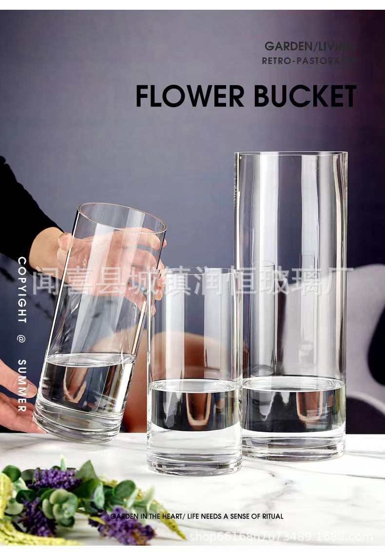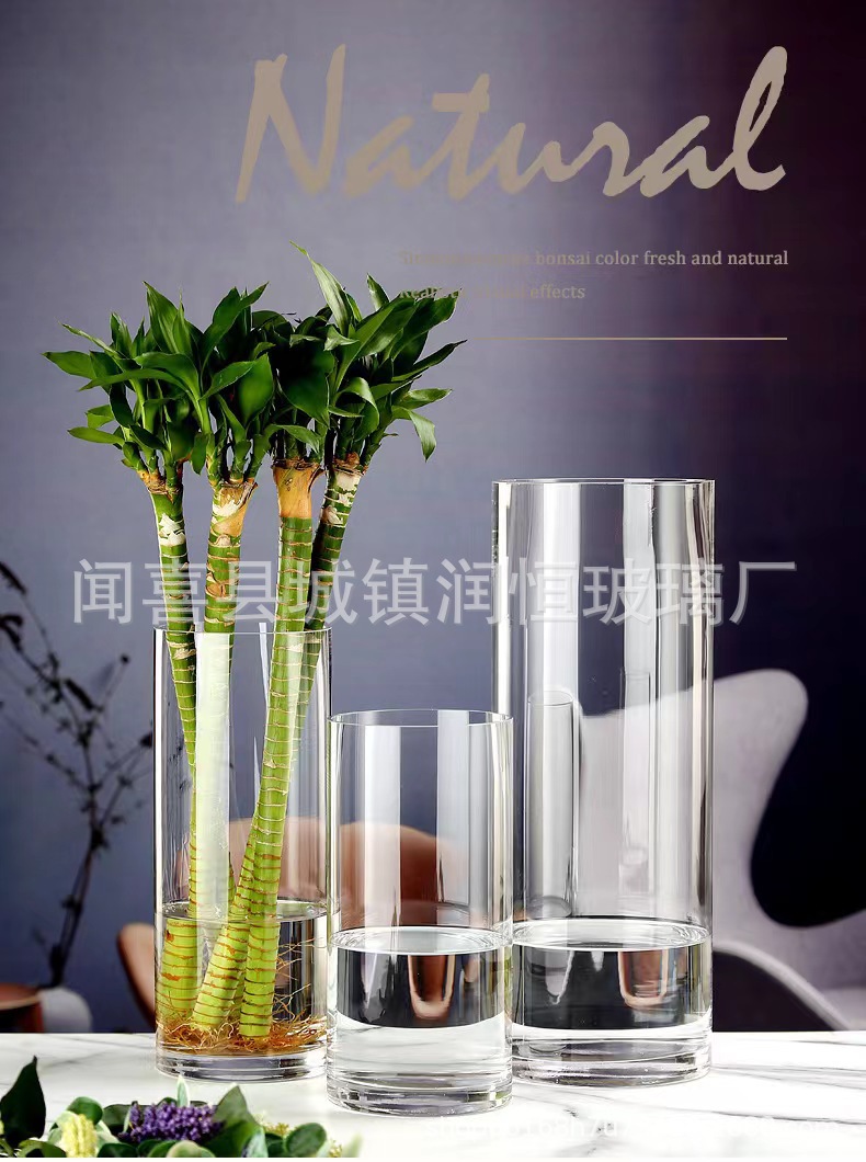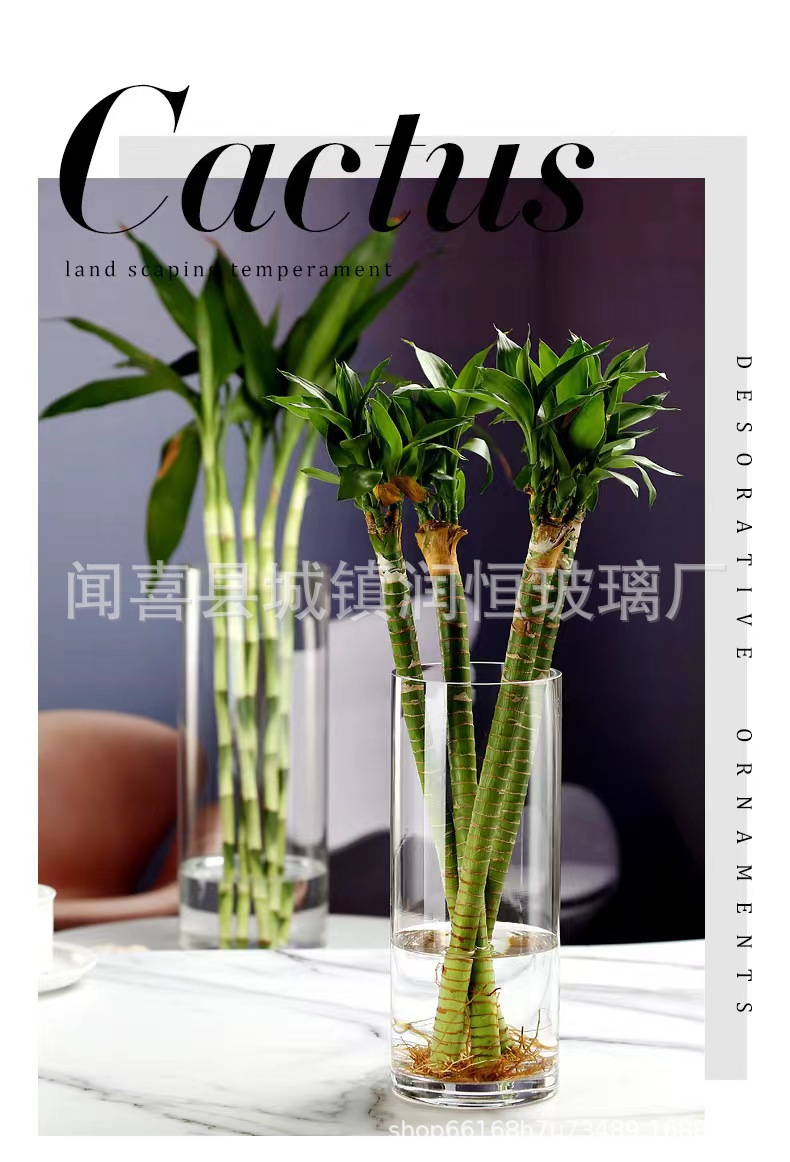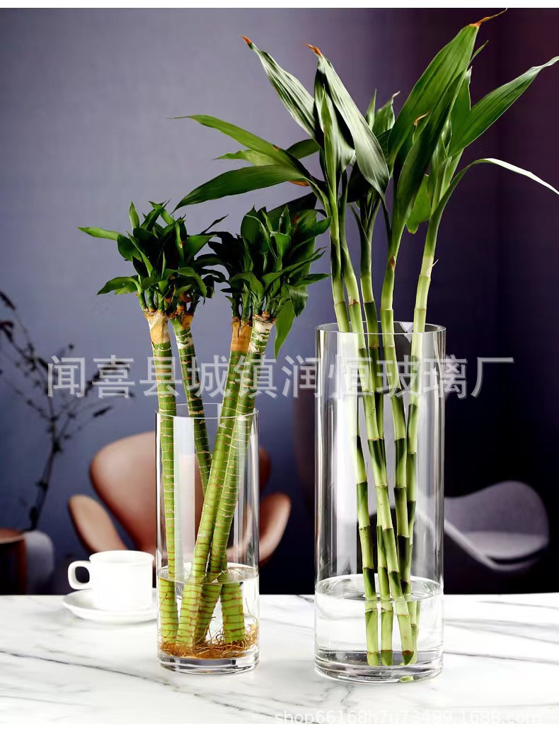 Ins 스타일 투명 스트레이트 유리 바닥 대형 꽃병 도매 Fugui 대나무 꽃병 장식품 수경 유리 제품스토어 가기