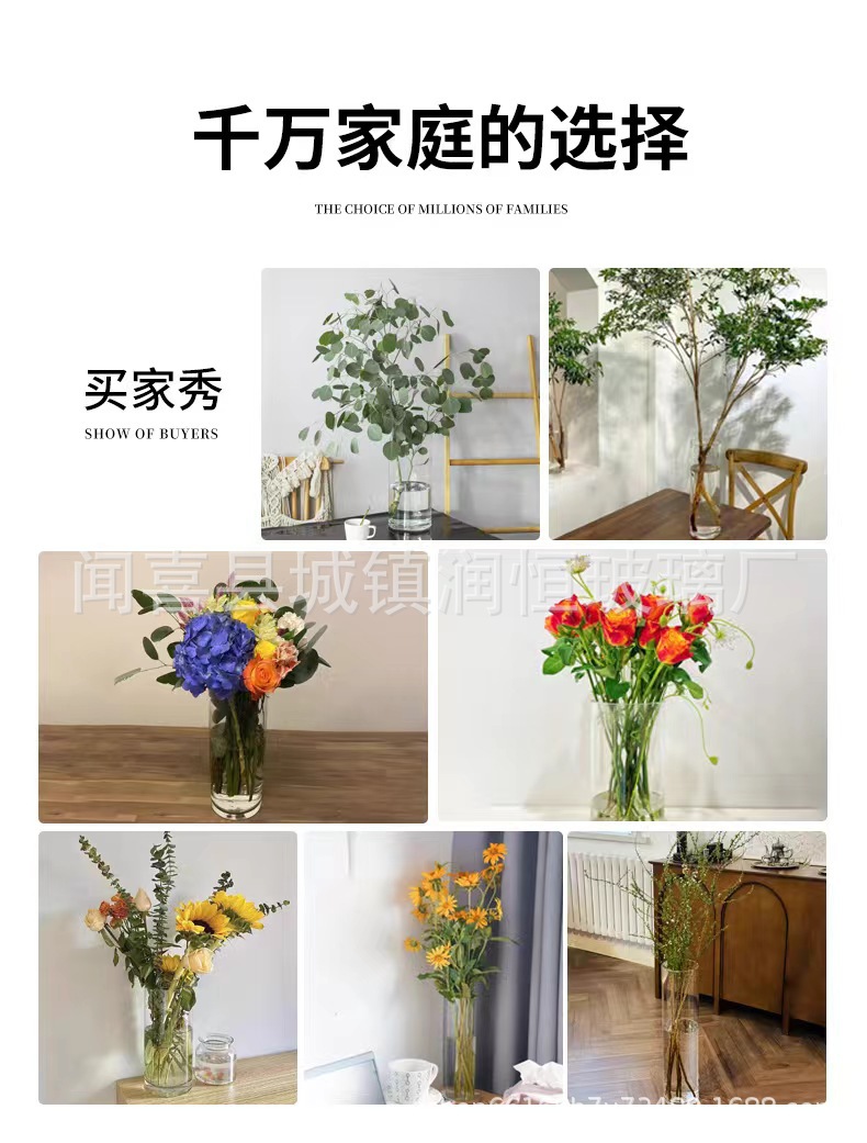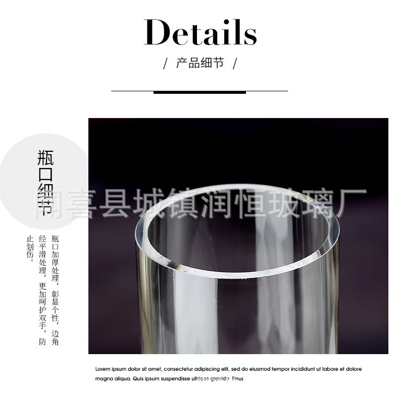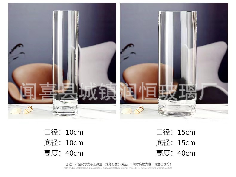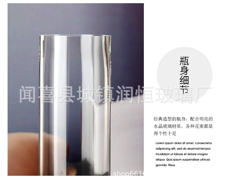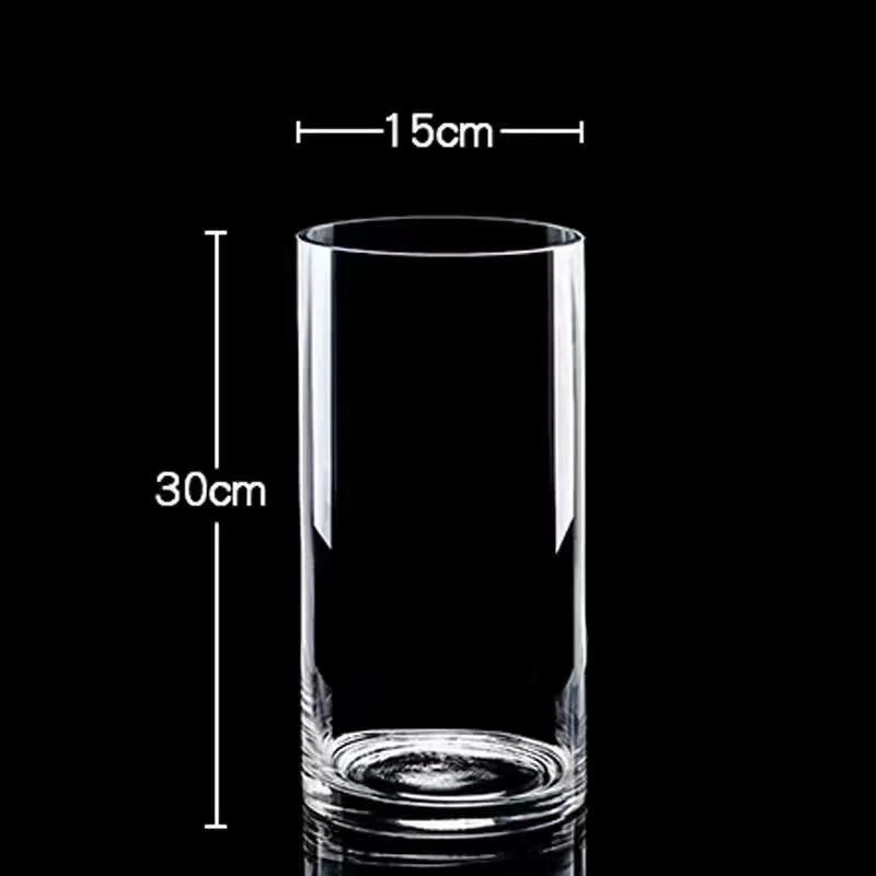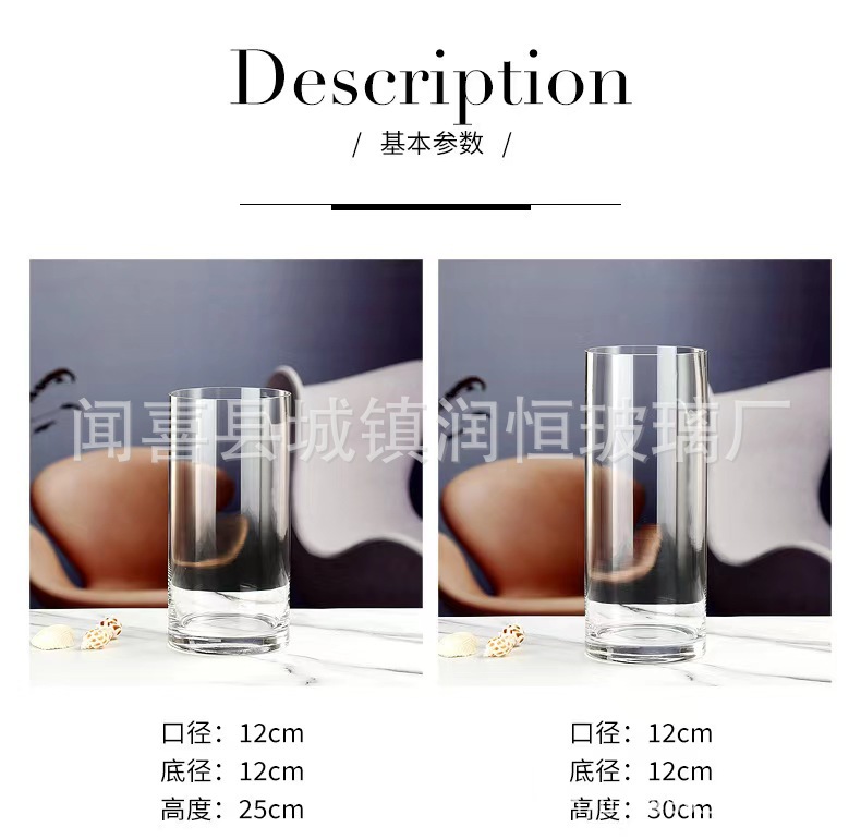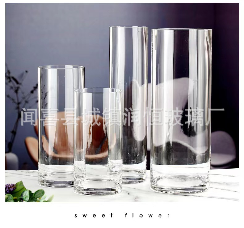 Ins 스타일 투명 스트레이트 유리 바닥 대형 꽃병 도매 Fugui 대나무 꽃병 장식품 수경 유리 제품스토어 가기