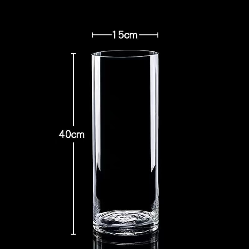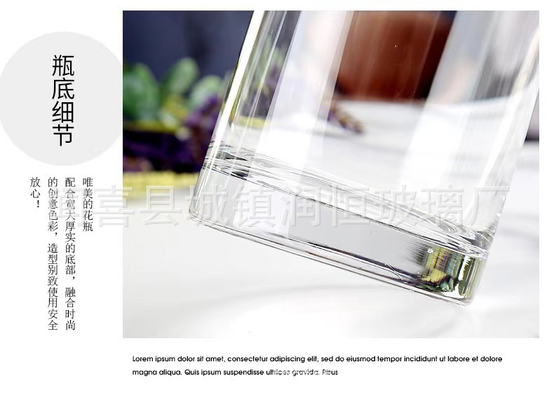 Ins 스타일 투명 스트레이트 유리 바닥 대형 꽃병 도매 Fugui 대나무 꽃병 장식품 수경 유리 제품