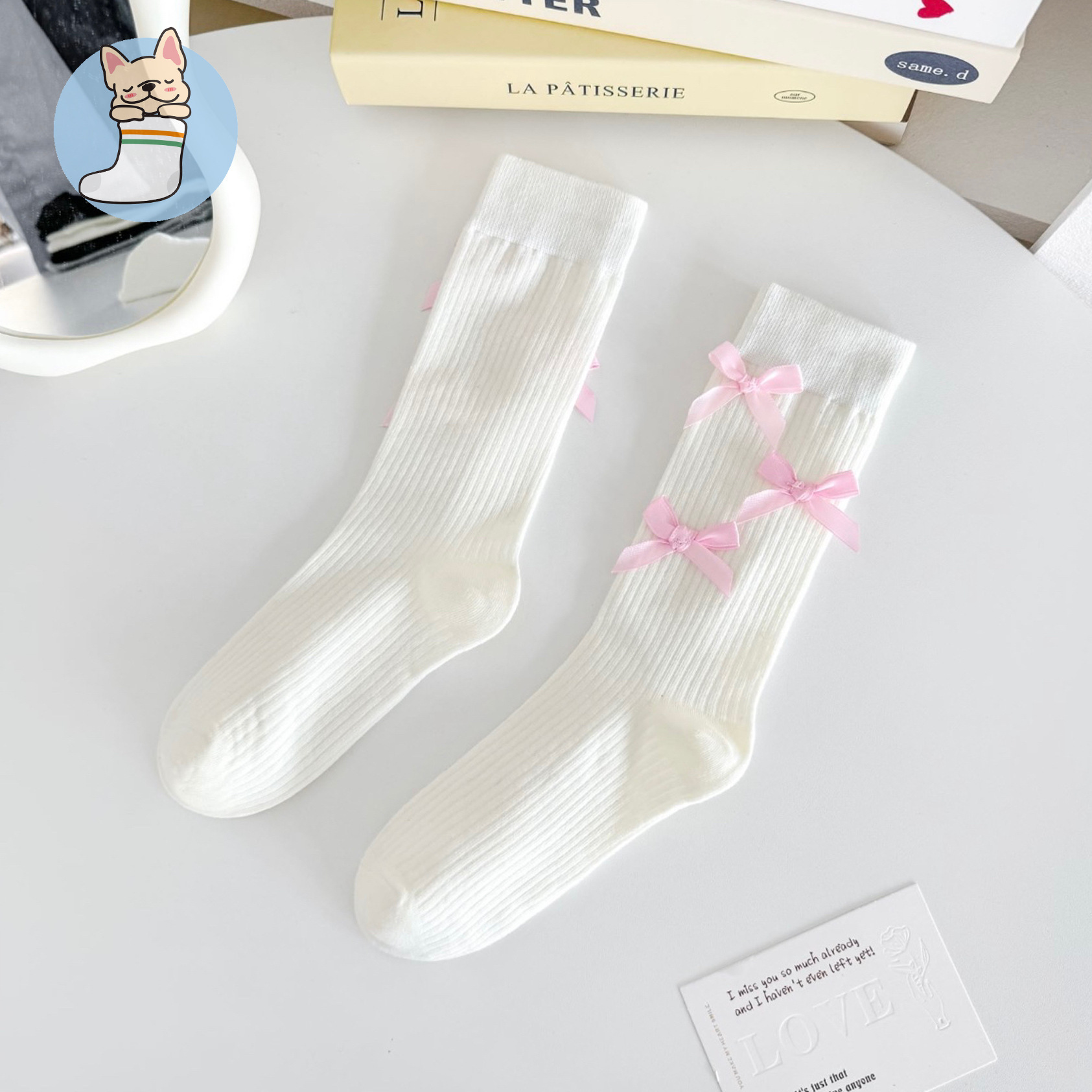발레 스타일 심플 올 매치 코튼 양말 JK 한국식 리본 보우인 트렌디 한 양말 4 시즌 미드 튜브 여성용 양말