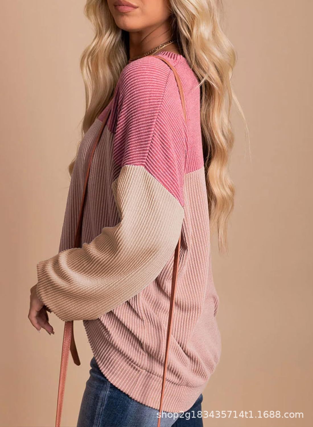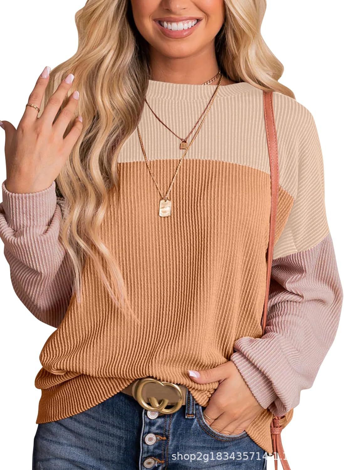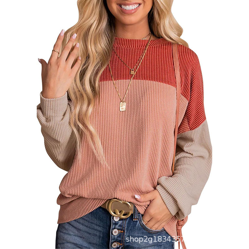 아마존 2024 새로운 독립 역 유럽과 미국 국경 여성 의류 컬러 매칭 캐주얼 느슨한 스웨터 풀오버 셔츠