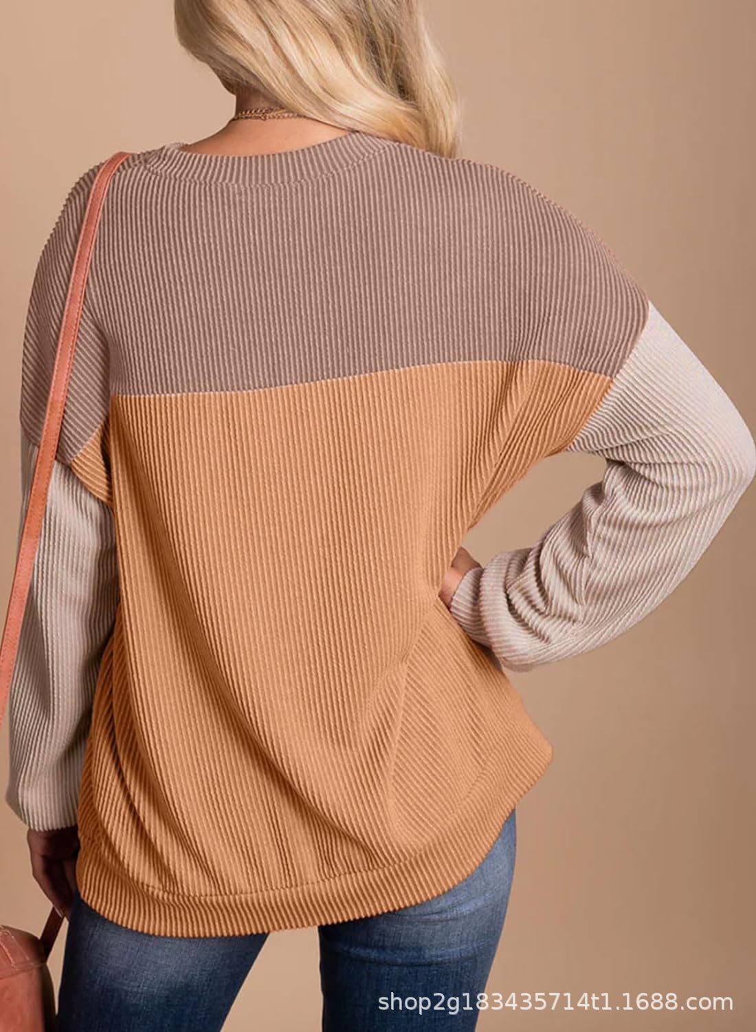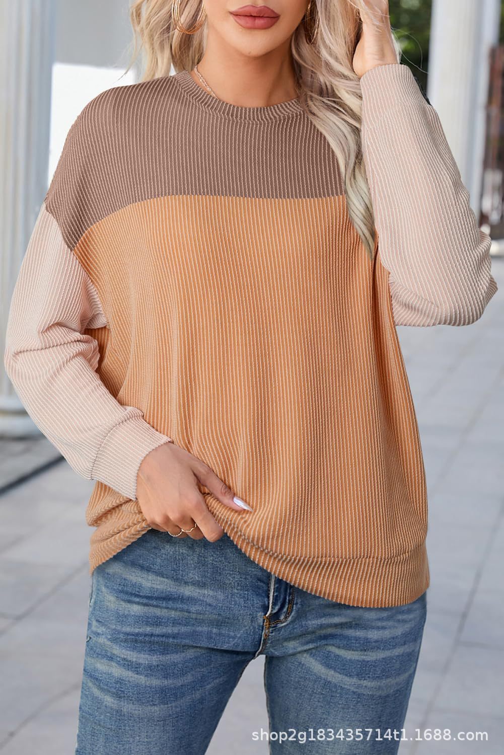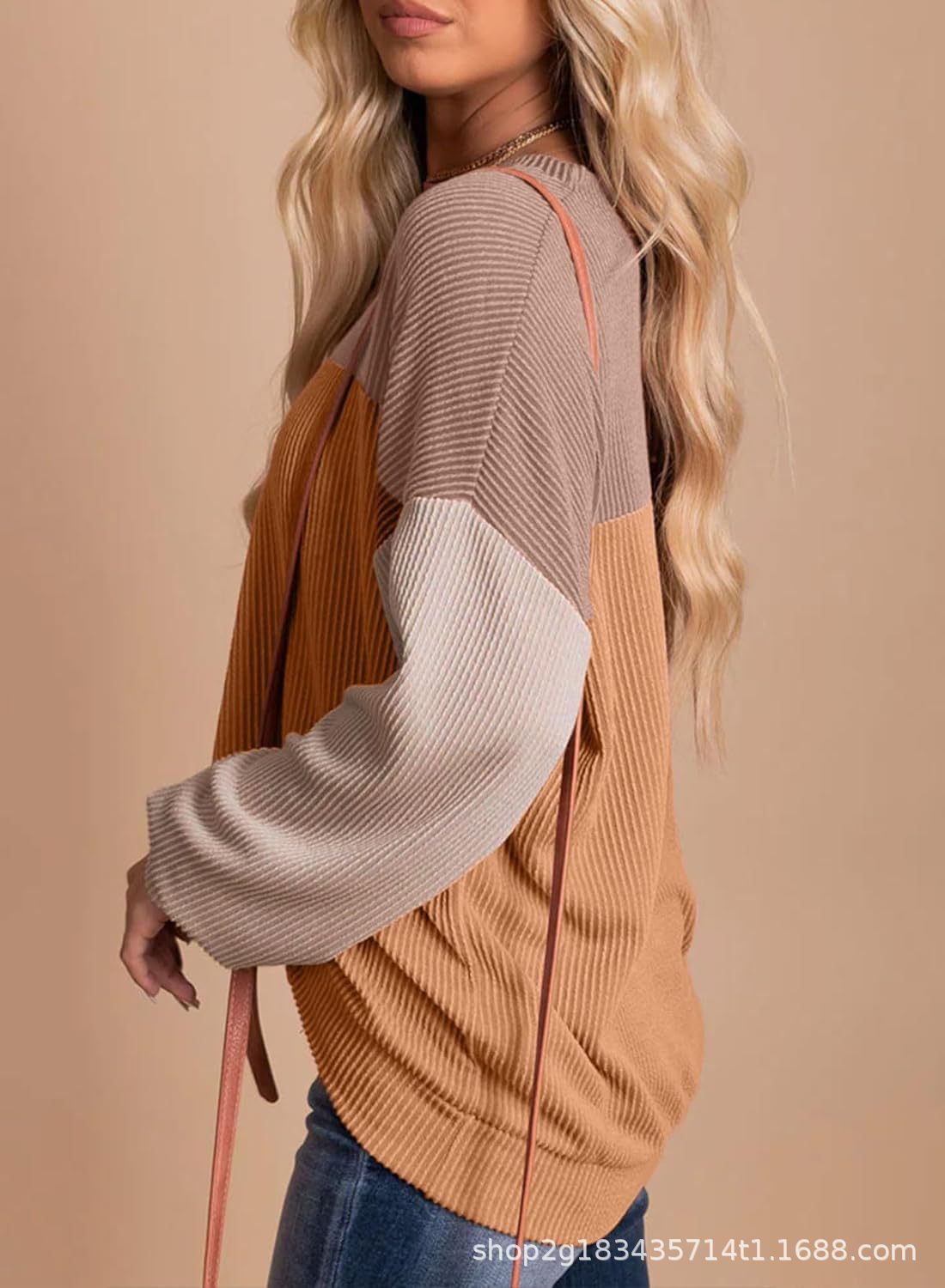 아마존 2024 새로운 독립 역 유럽과 미국 국경 여성 의류 컬러 매칭 캐주얼 느슨한 스웨터 풀오버 셔츠