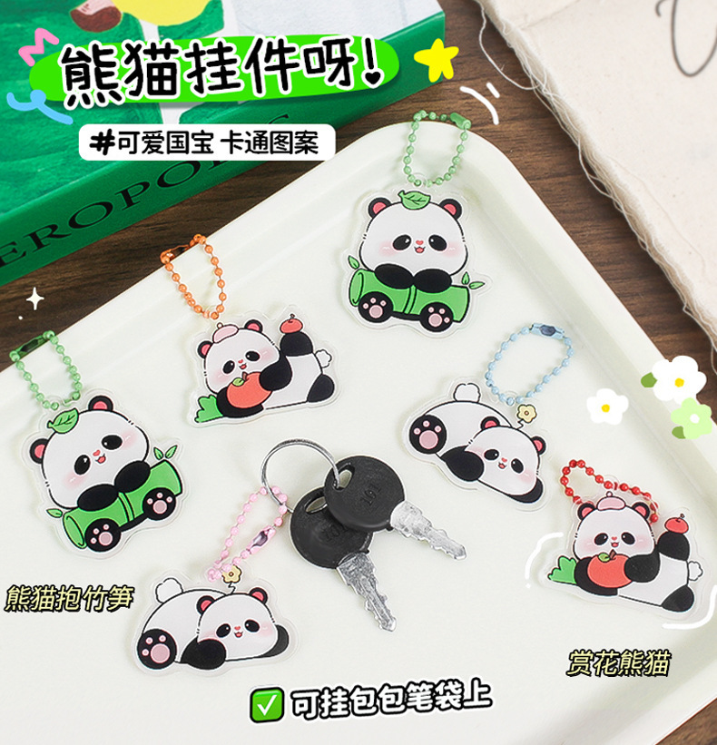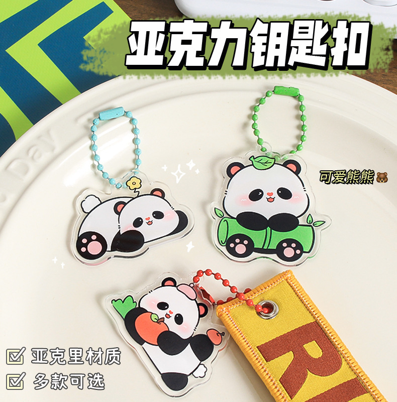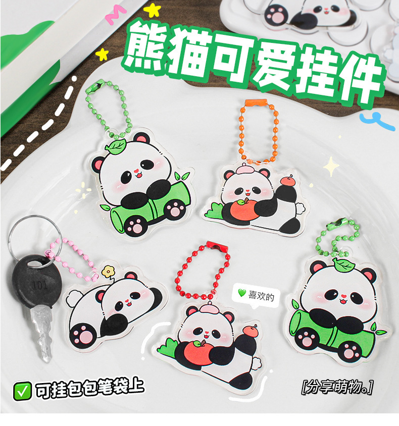 팬더 키 체인 귀여운 키 체인 매달려 아크릴 펜던트 배낭 장식 액세서리 학교 가방 걸이 체인 작은 선물