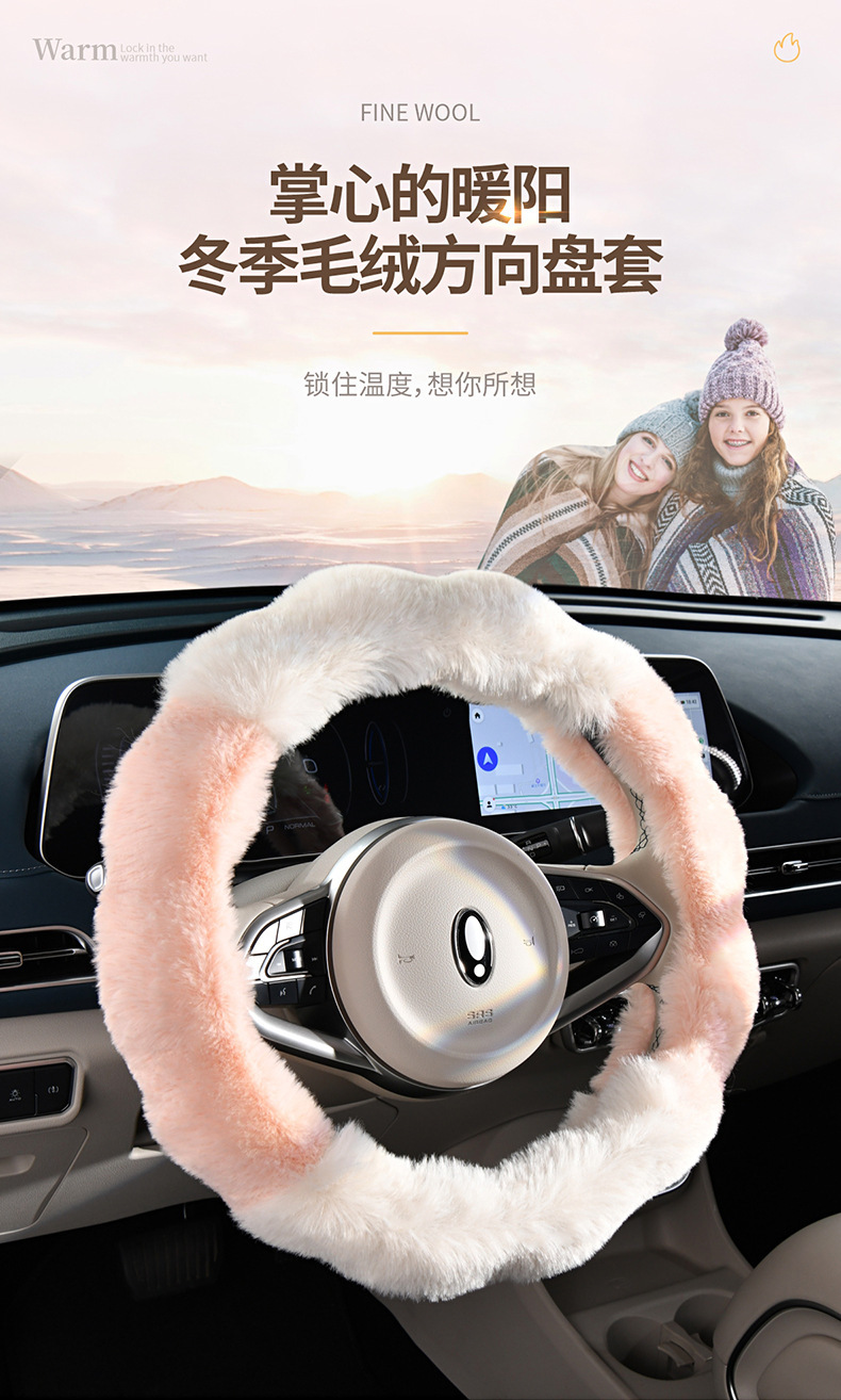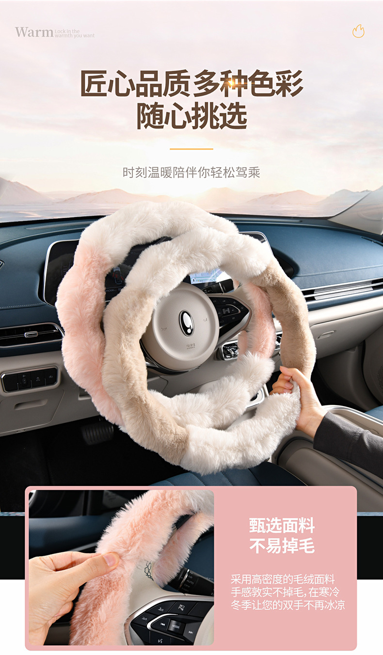 국경 도매 봉제 버블 벨벳 컬러 매칭 스티어링 휠 커버 겨울 대비 컬러 두꺼운 헤어 자동차 핸들 커버 지원 생성스토어 가기