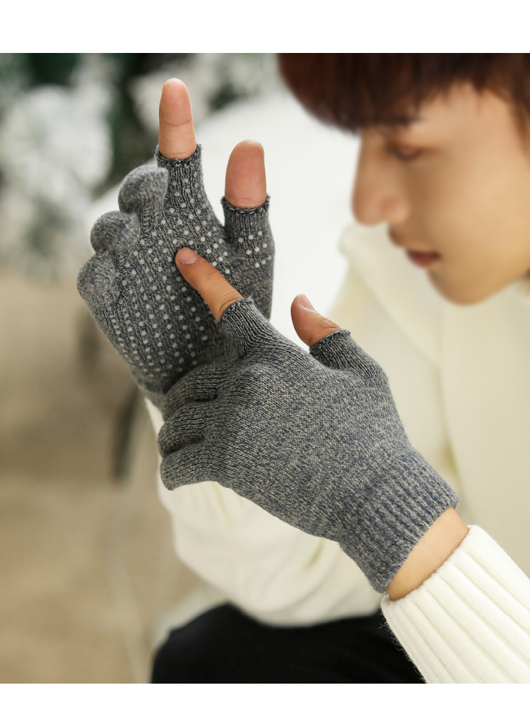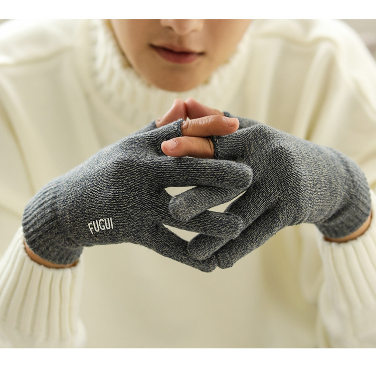 하프 핑거 남성용 장갑 가을과 겨울 이슬 두 손가락 두꺼운 따뜻한 터치 스크린 기모 울 냉장 야외 라이딩 니트