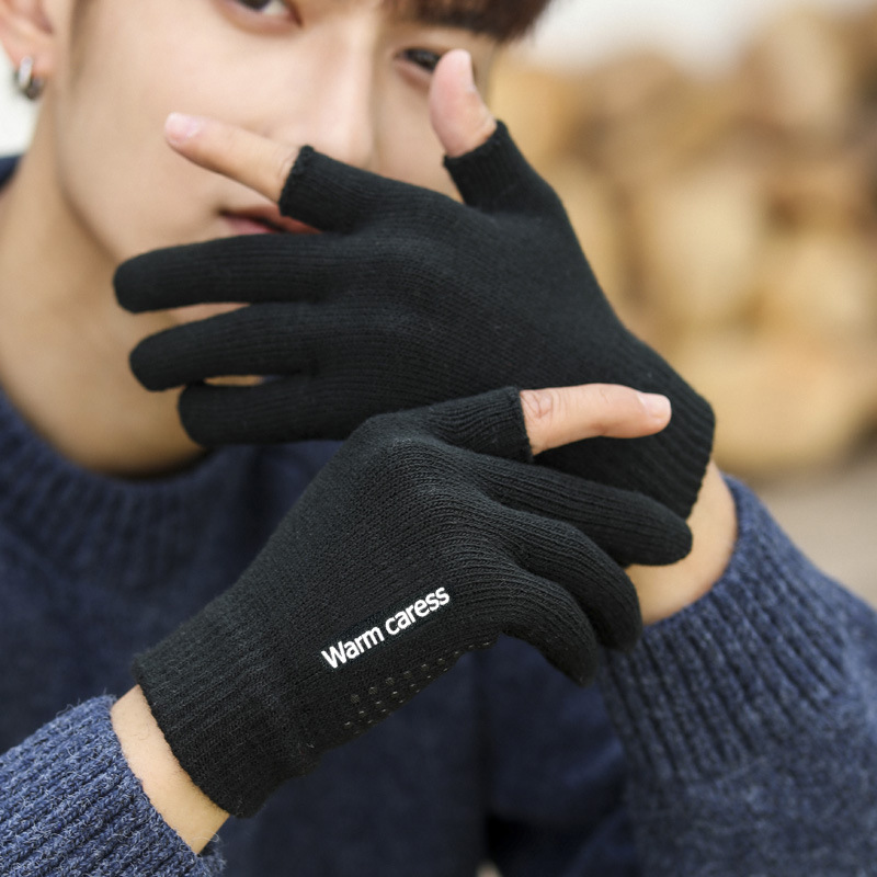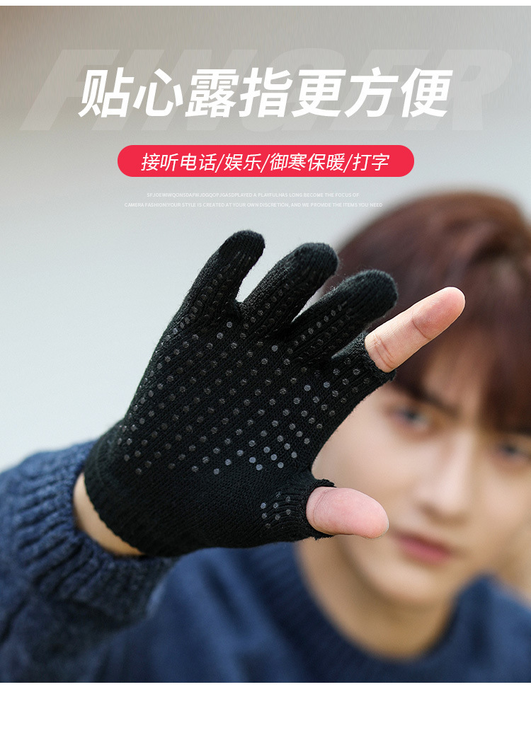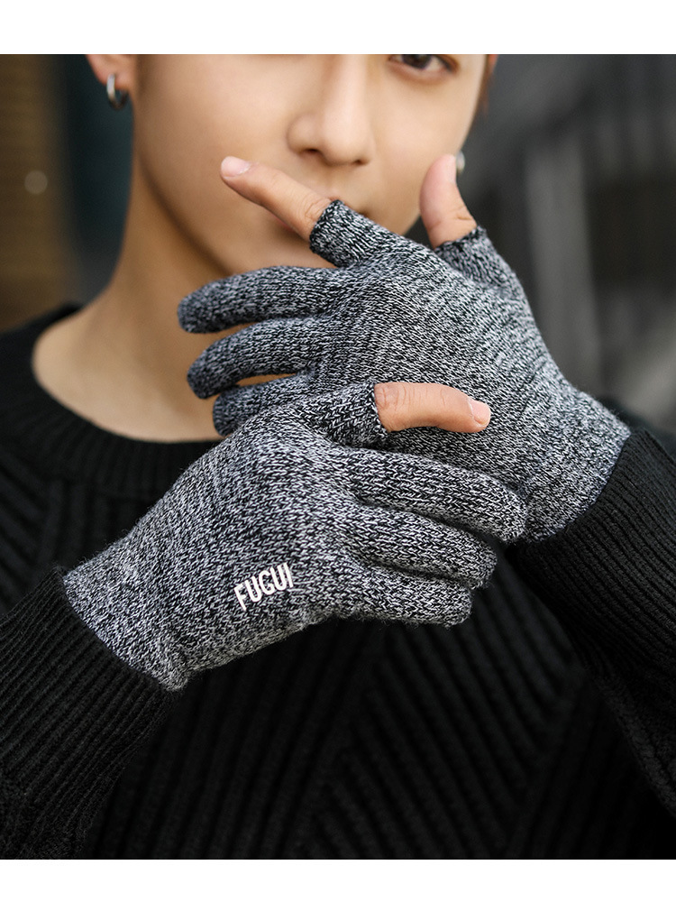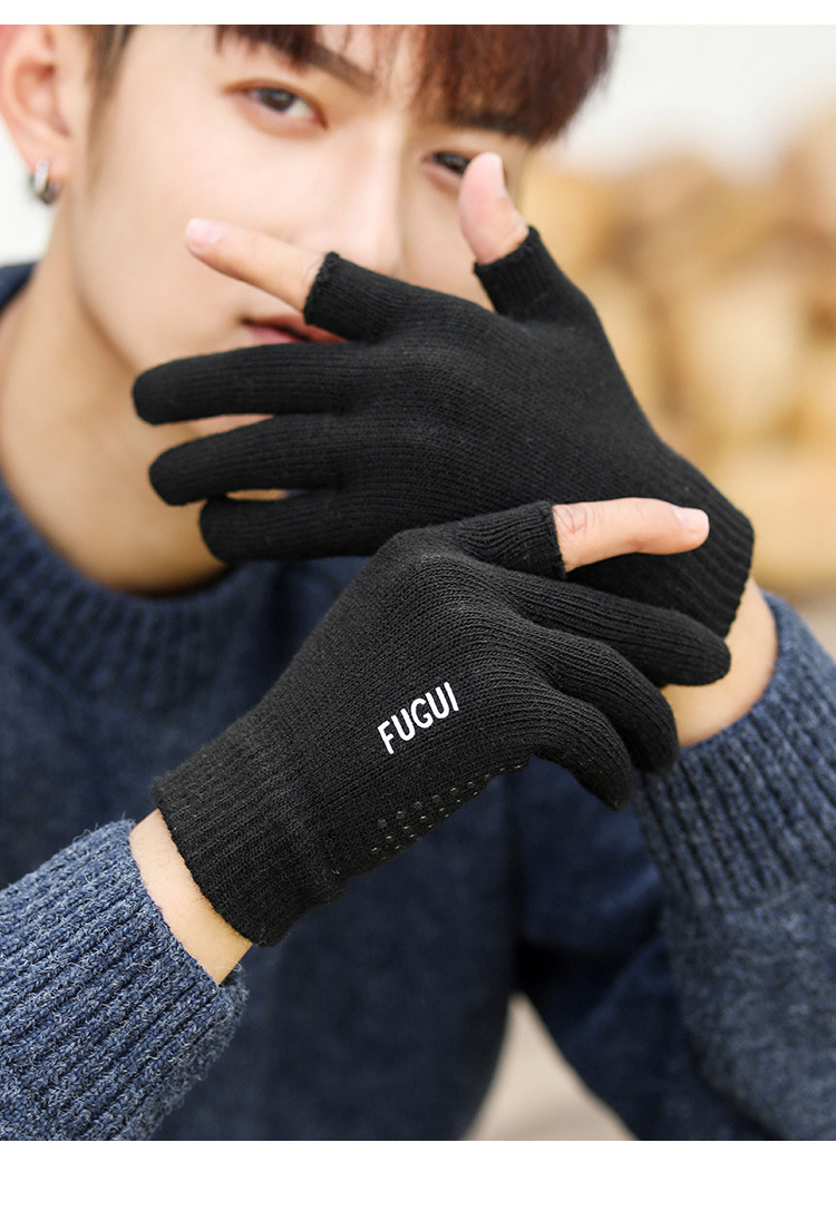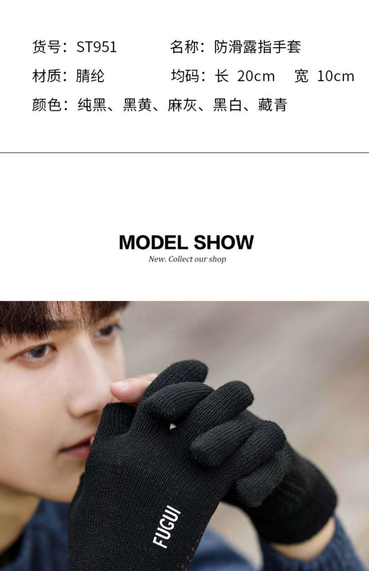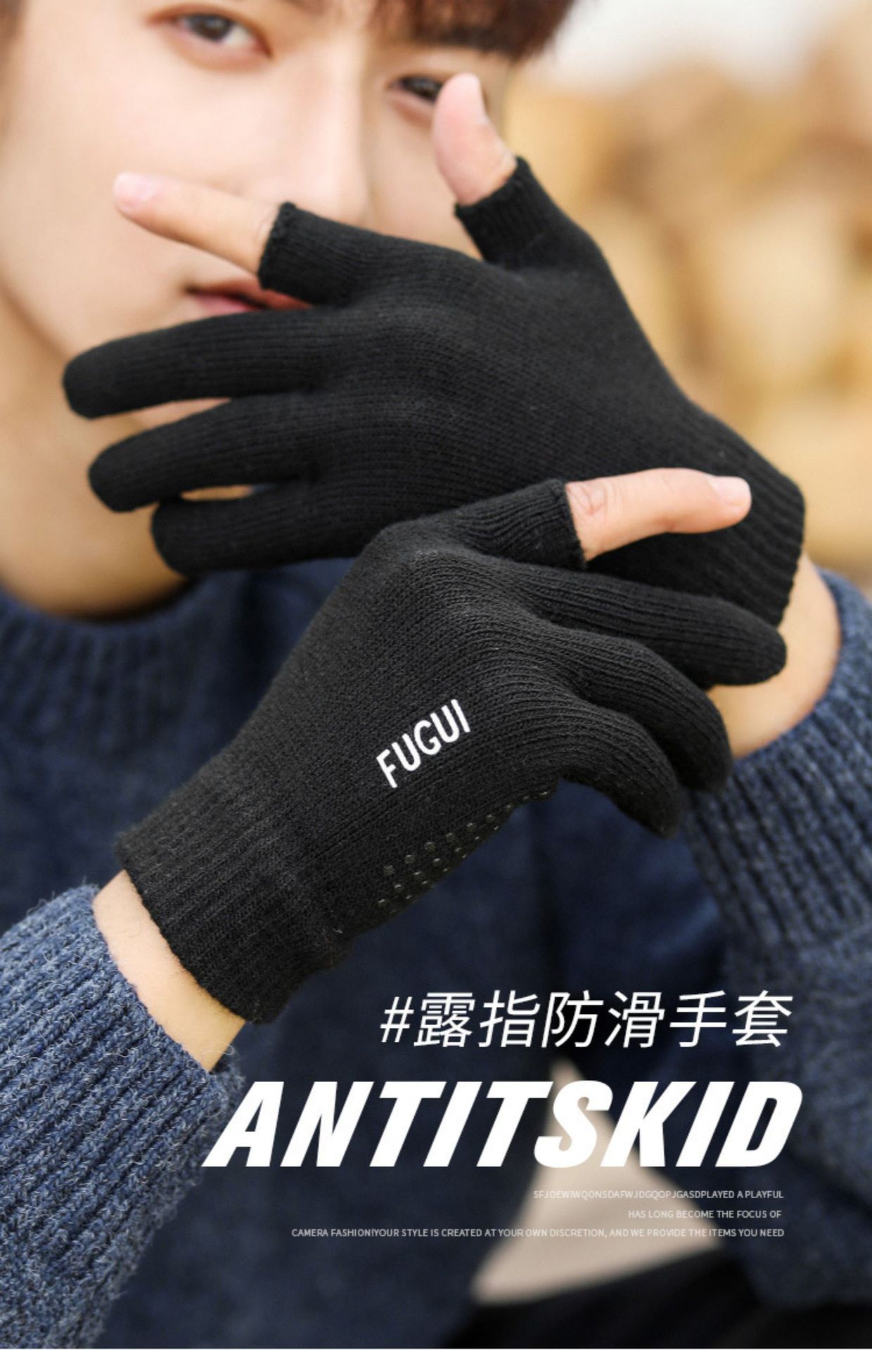 하프 핑거 남성용 장갑 가을과 겨울 이슬 두 손가락 두꺼운 따뜻한 터치 스크린 기모 울 냉장 야외 라이딩 니트스토어 가기