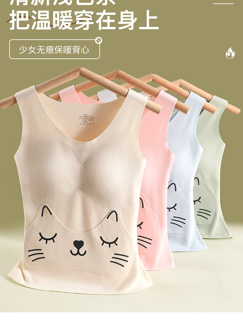 프런트 포켓 캐시미어 실크 성장 소녀 따뜻한 조끼 브라 중학생 학생 기본 어린이 속옷스토어 가기