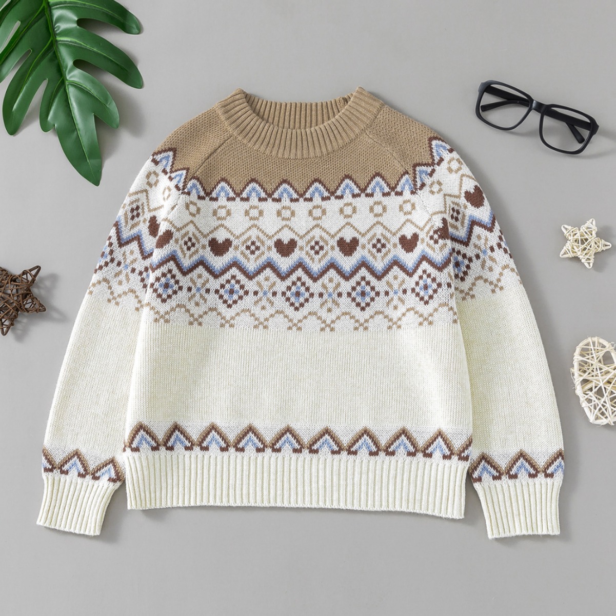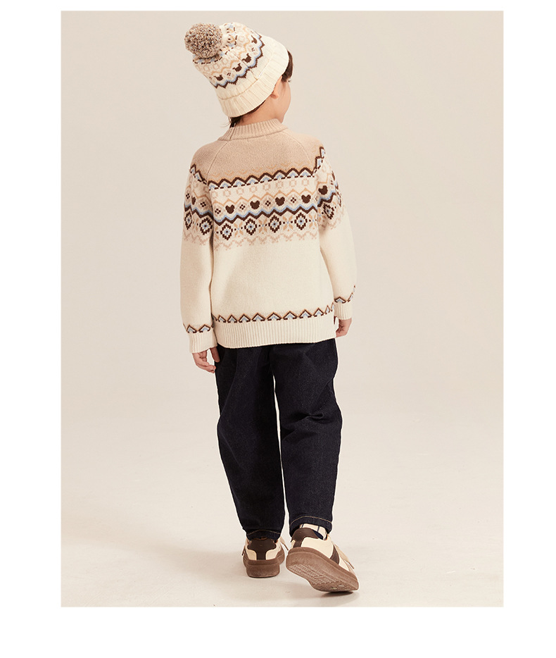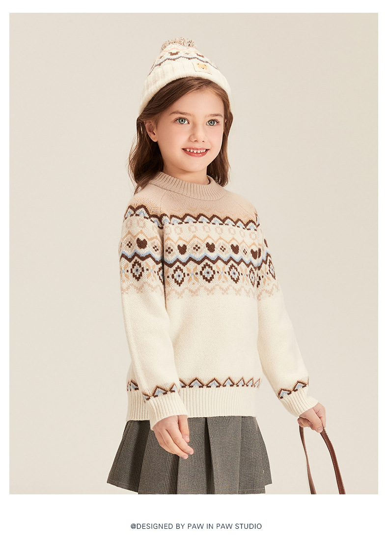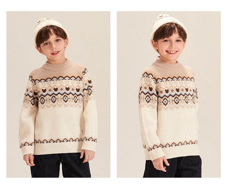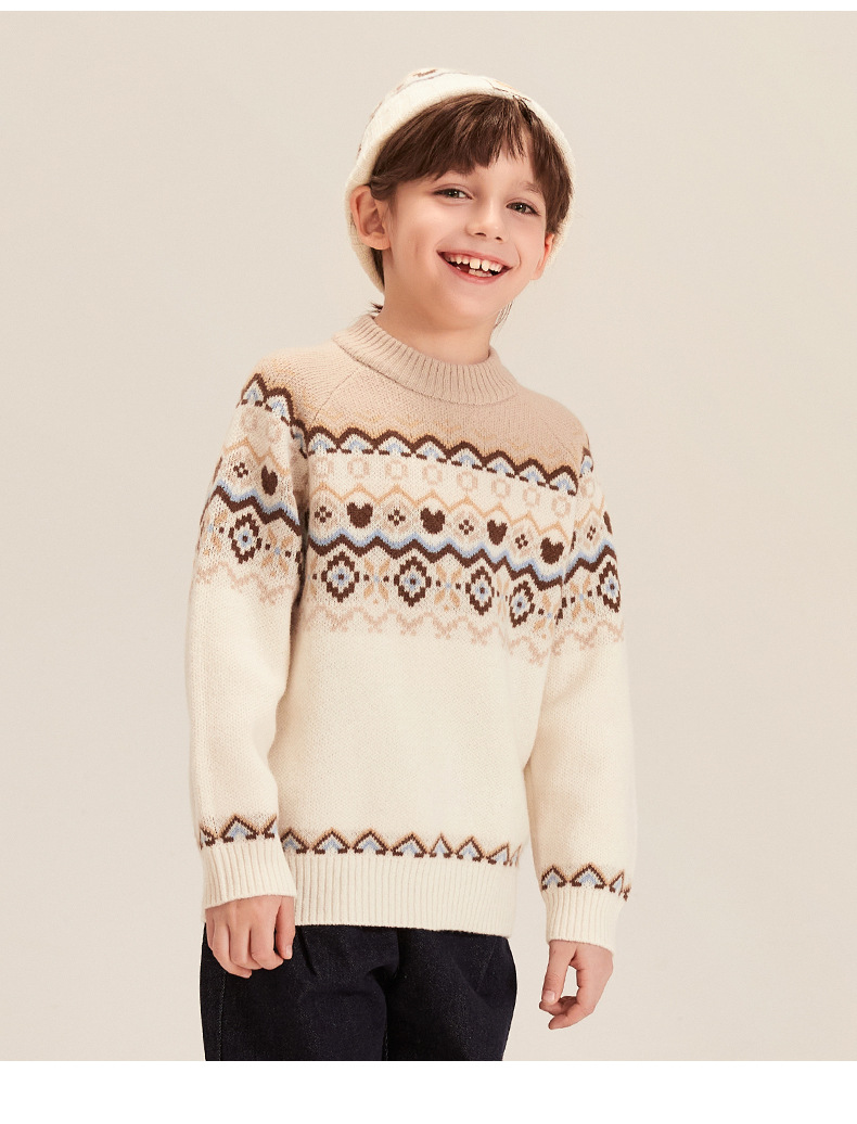 아카데미 스타일 남자 어린이 스웨터 가을과 겨울 중학교 어린이 풀오버 니트 스웨터 크루 넥 탑베이스 셔츠 내부 패션