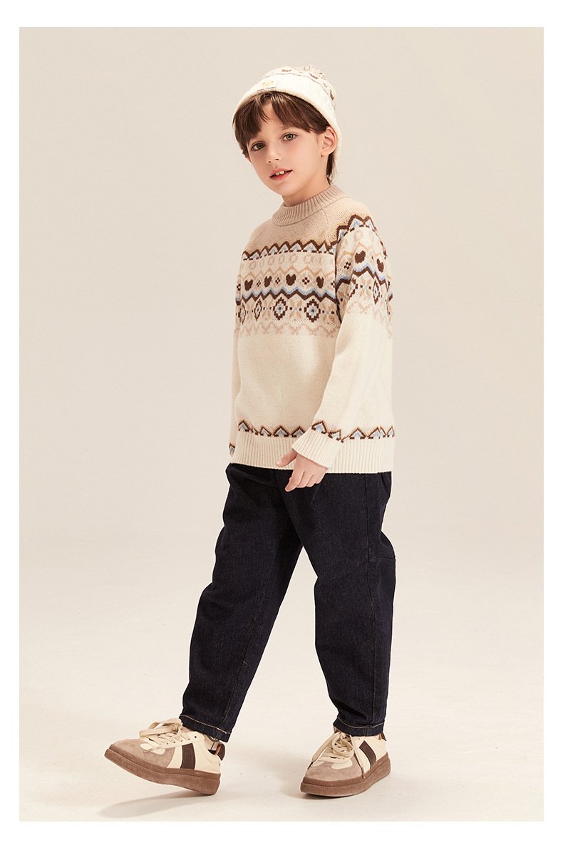 아카데미 스타일 남자 어린이 스웨터 가을과 겨울 중학교 어린이 풀오버 니트 스웨터 크루 넥 탑베이스 셔츠 내부 패션스토어 가기