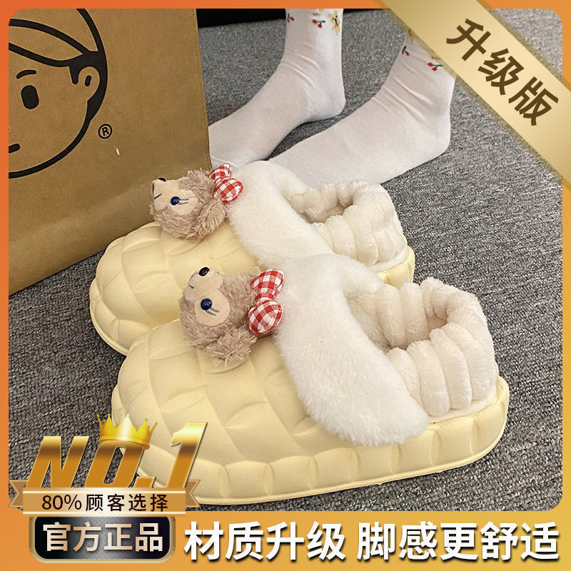 만화 면화 슬리퍼 여성의 2024 새로운 겨울 비 슬립 홈 따뜻한 실내 귀여운 외부 착용 가방 힐 마오 마오 코튼 신발스토어 가기