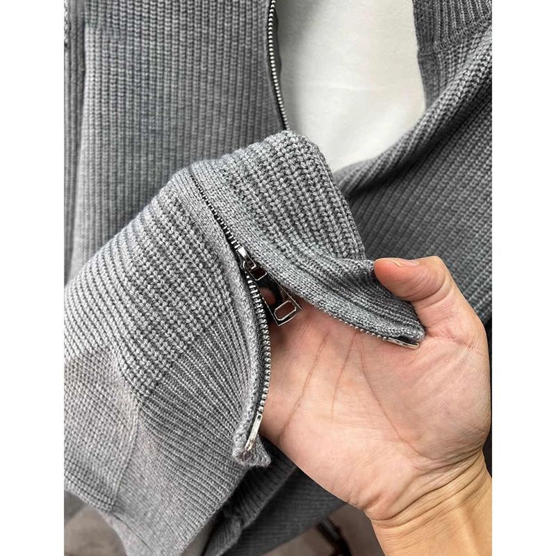 솔리드 컬러 올 매치 지퍼 남성용 니트웨어 가을 겨울 폭발 슬림핏 스웨터 코트 트렌디 브랜드 라이닝 칼라 긴팔 탑