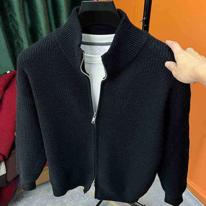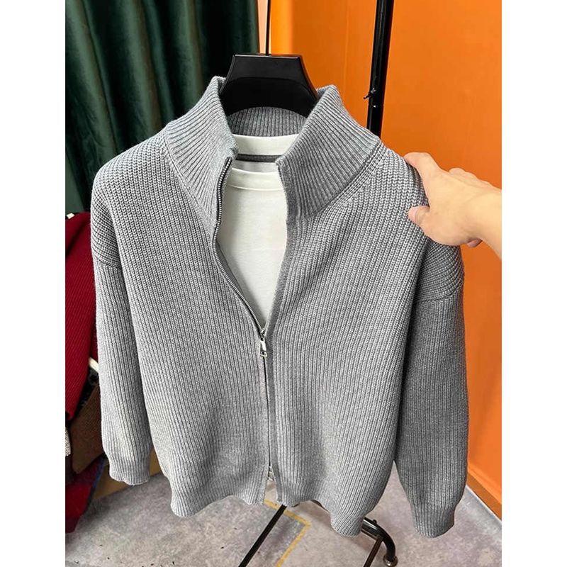 솔리드 컬러 올 매치 지퍼 남성용 니트웨어 가을 겨울 폭발 슬림핏 스웨터 코트 트렌디 브랜드 라이닝 칼라 긴팔 탑스토어 가기