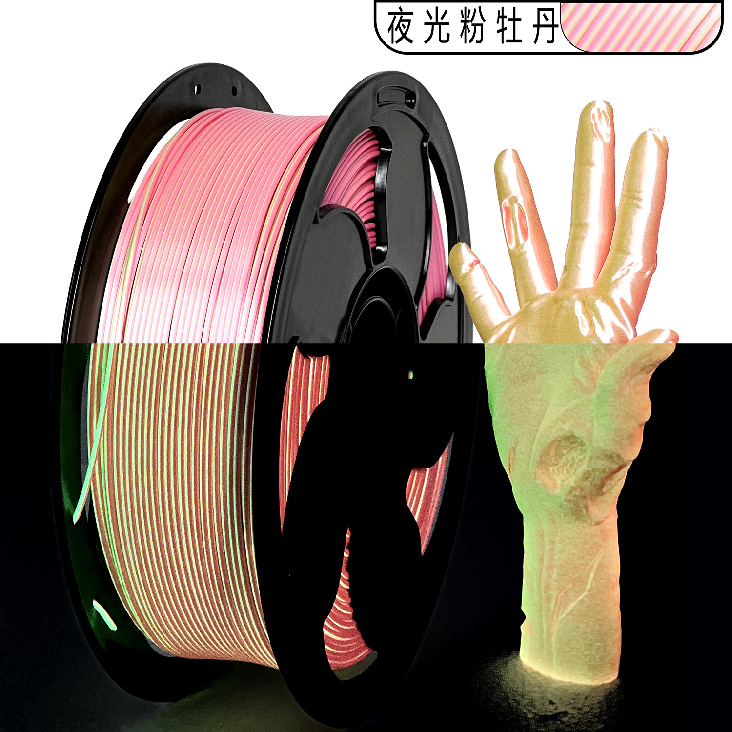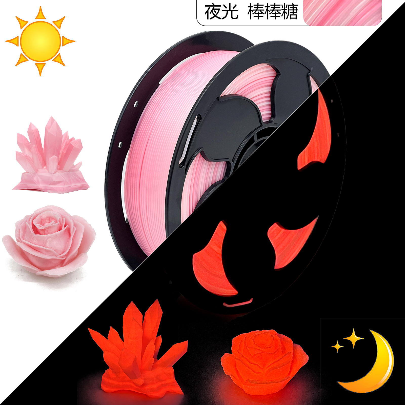 Tuosen 3D 인쇄 필라멘트 PLA 발광 필라멘트 레인보우 1KG 발광 미학 필라멘트 1.75mm Tuozhu와 호환 가능
