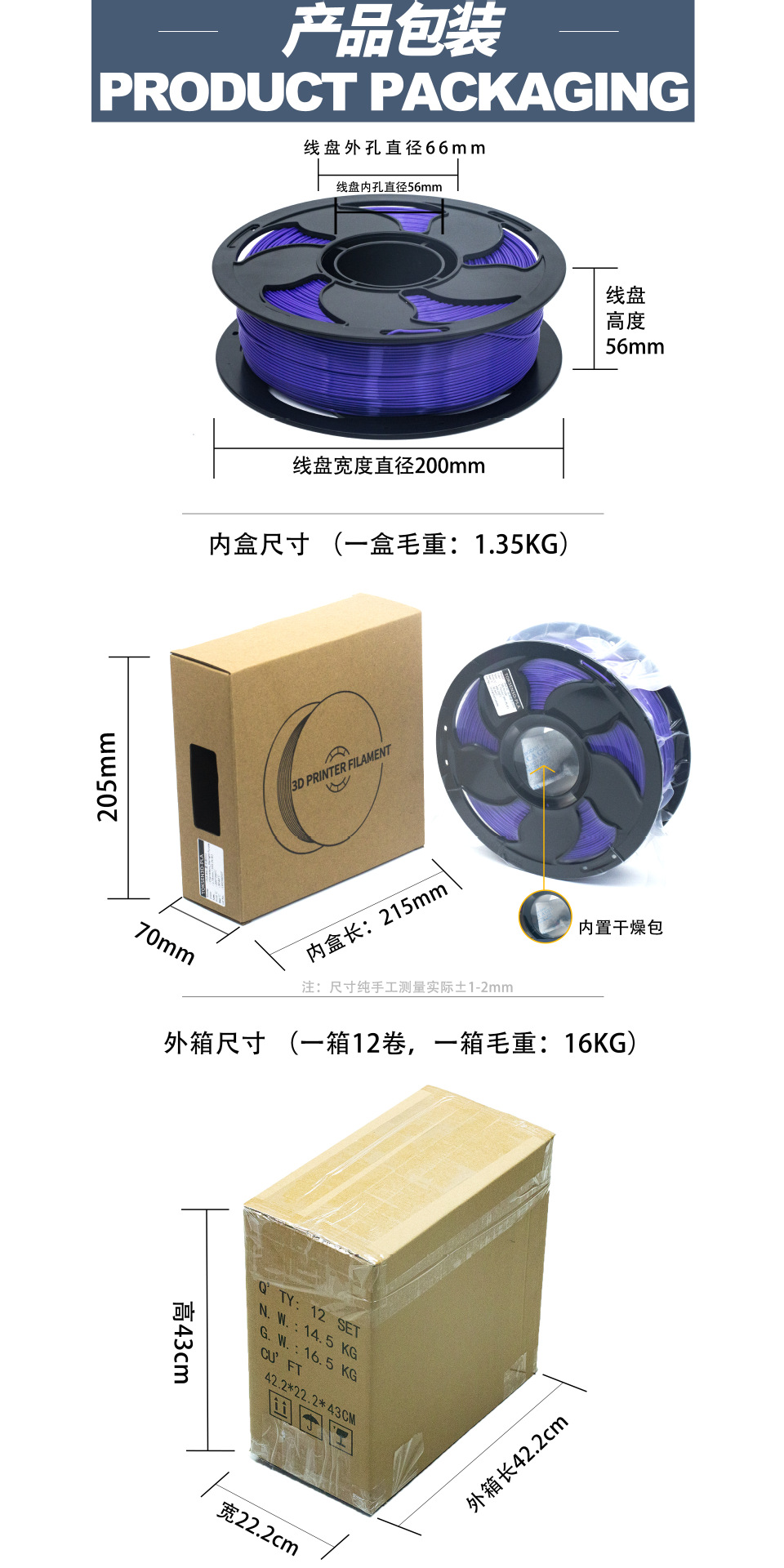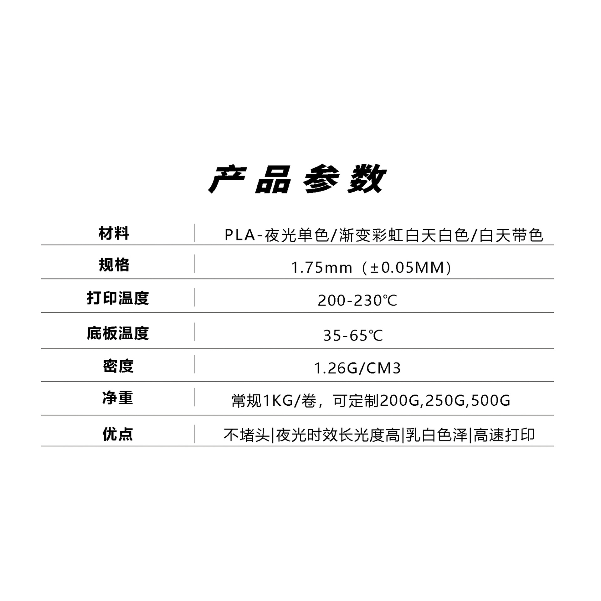 Tuosen 3D 인쇄 필라멘트 PLA 발광 필라멘트 레인보우 1KG 발광 미학 필라멘트 1.75mm Tuozhu와 호환 가능스토어 가기
