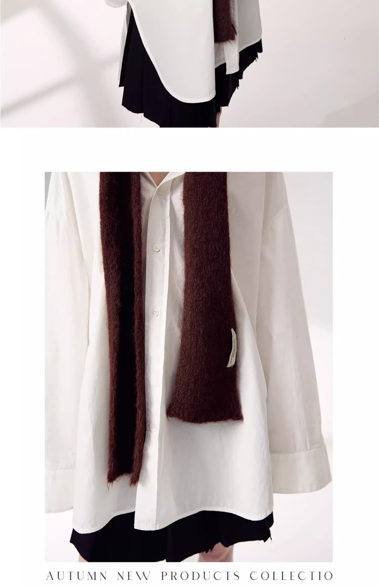 한국의 틈새 디자인 마이크로 롤 엣지 모헤어 스카프 여성용 패셔너블한 롱 스트립 다용도 넥워머 얇고 좁은 스카프