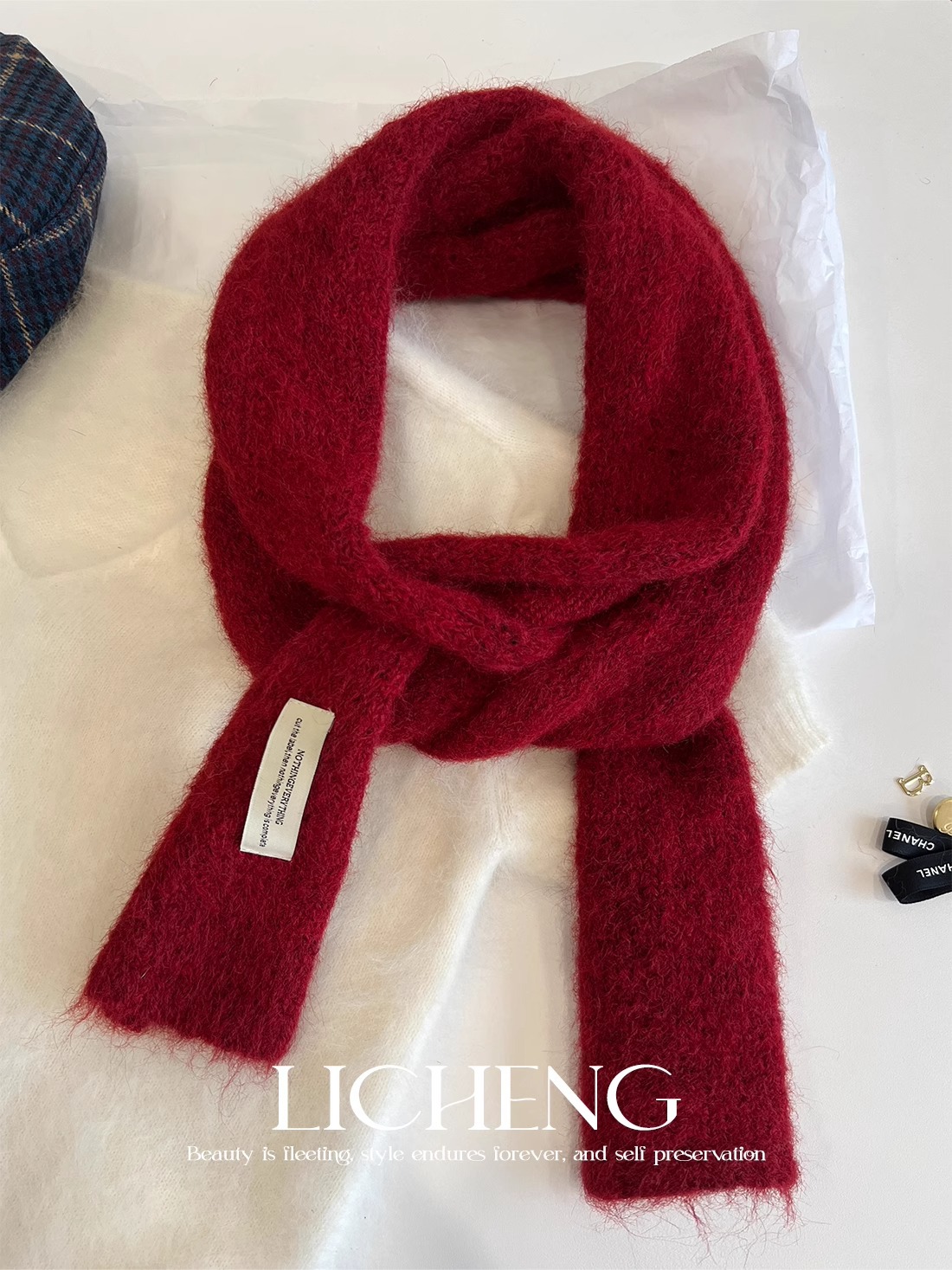 한국의 틈새 디자인 마이크로 롤 엣지 모헤어 스카프 여성용 패셔너블한 롱 스트립 다용도 넥워머 얇고 좁은 스카프스토어 가기