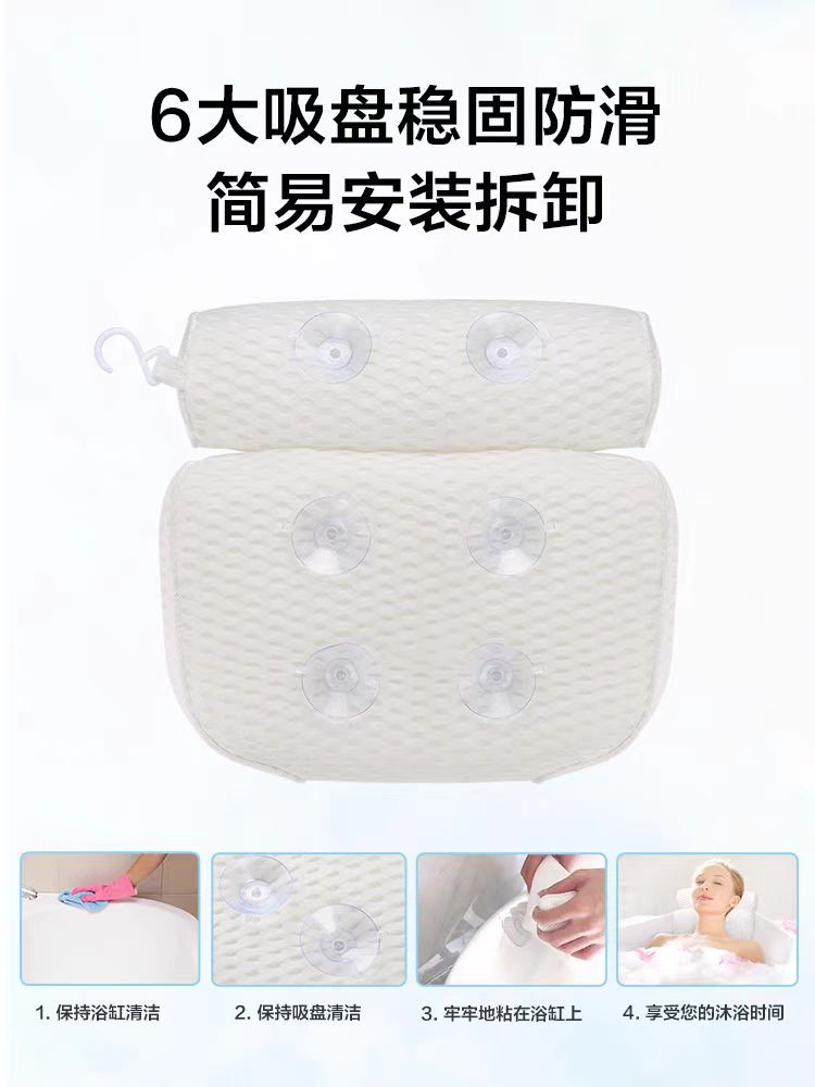 크로스보더 아마존 3D 메쉬 욕조 베개 흡착식 미끄럼 방지 쿠션 등받이 베개 욕실 베개 세탁기 사용 가능 시트 쿠션스토어 가기