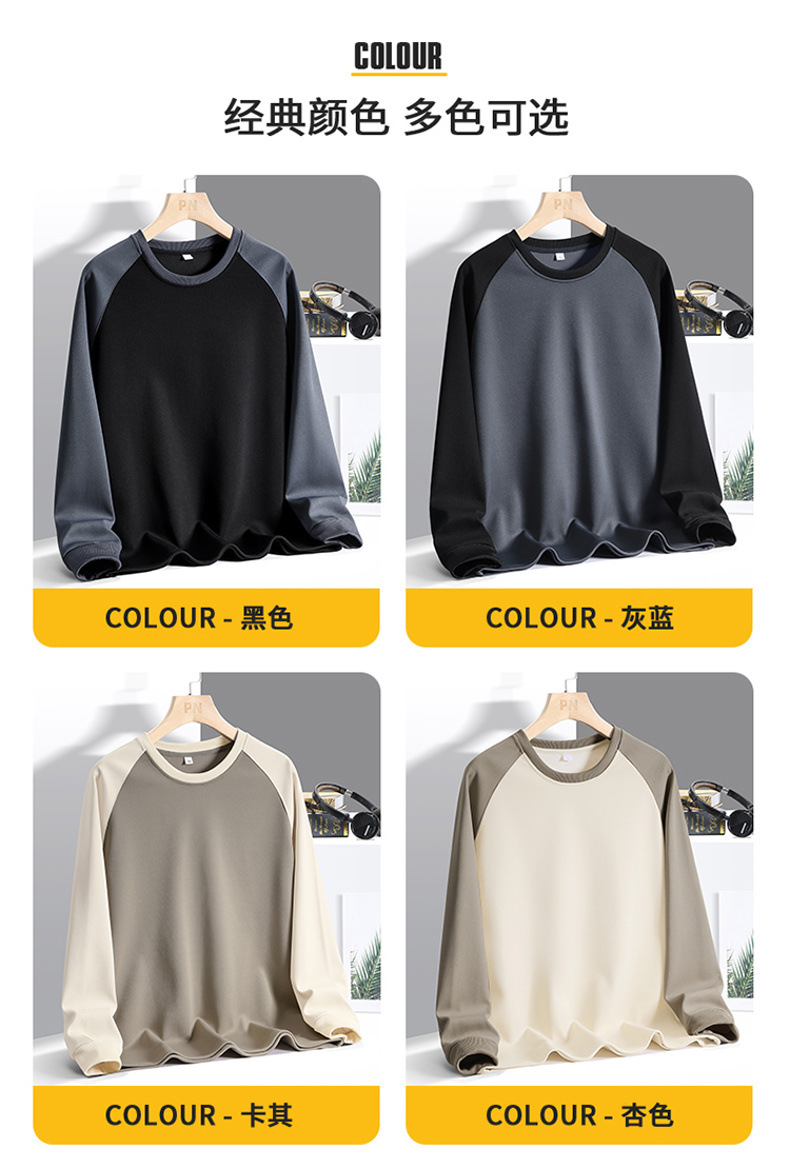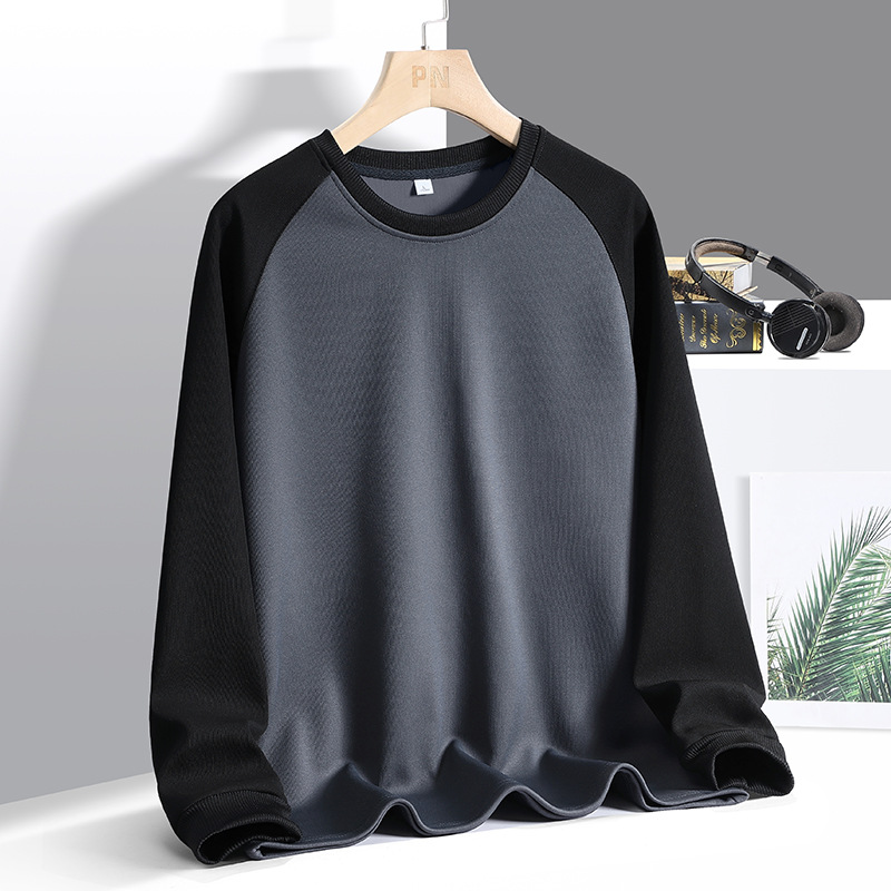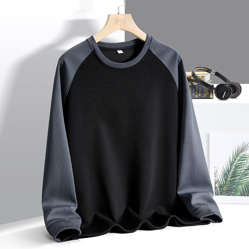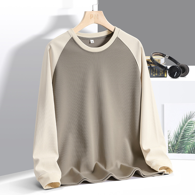봄과 가을 대비 컬러 남성용 긴팔 티셔츠 스웨터 루즈 트렌디베이스 셔츠 크루 넥 따뜻한 컬러 블록 풀오버 탑 남성스토어 가기