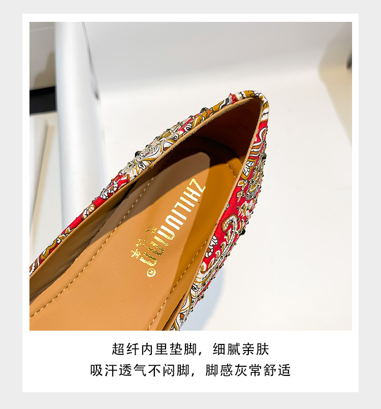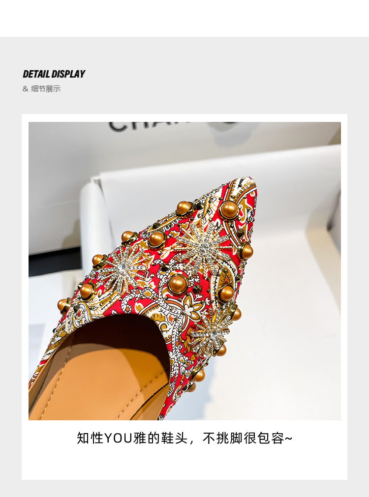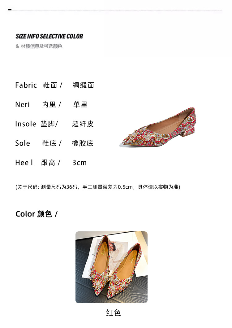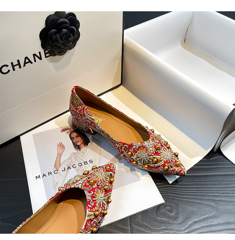 66-A9 웨딩 슈즈 가을과 겨울 2024 새로운 포인팅 슈즈 두꺼운 힐 미들 라인스톤 핸드 메이드 올 매치 슈즈 슈즈스토어 가기