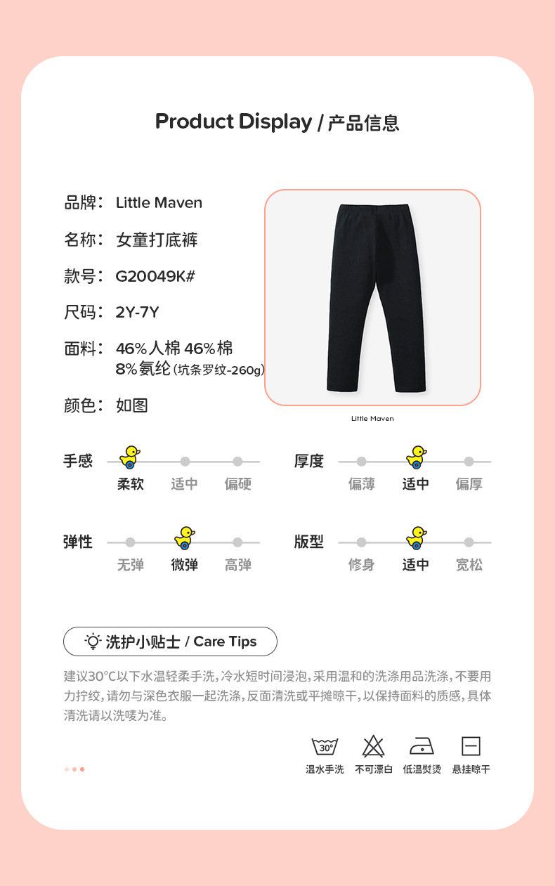 작은 maven 유럽과 미국의 새로운 소녀 레깅스 가을 바지 통기성 단색 소녀 바지 도매스토어 가기