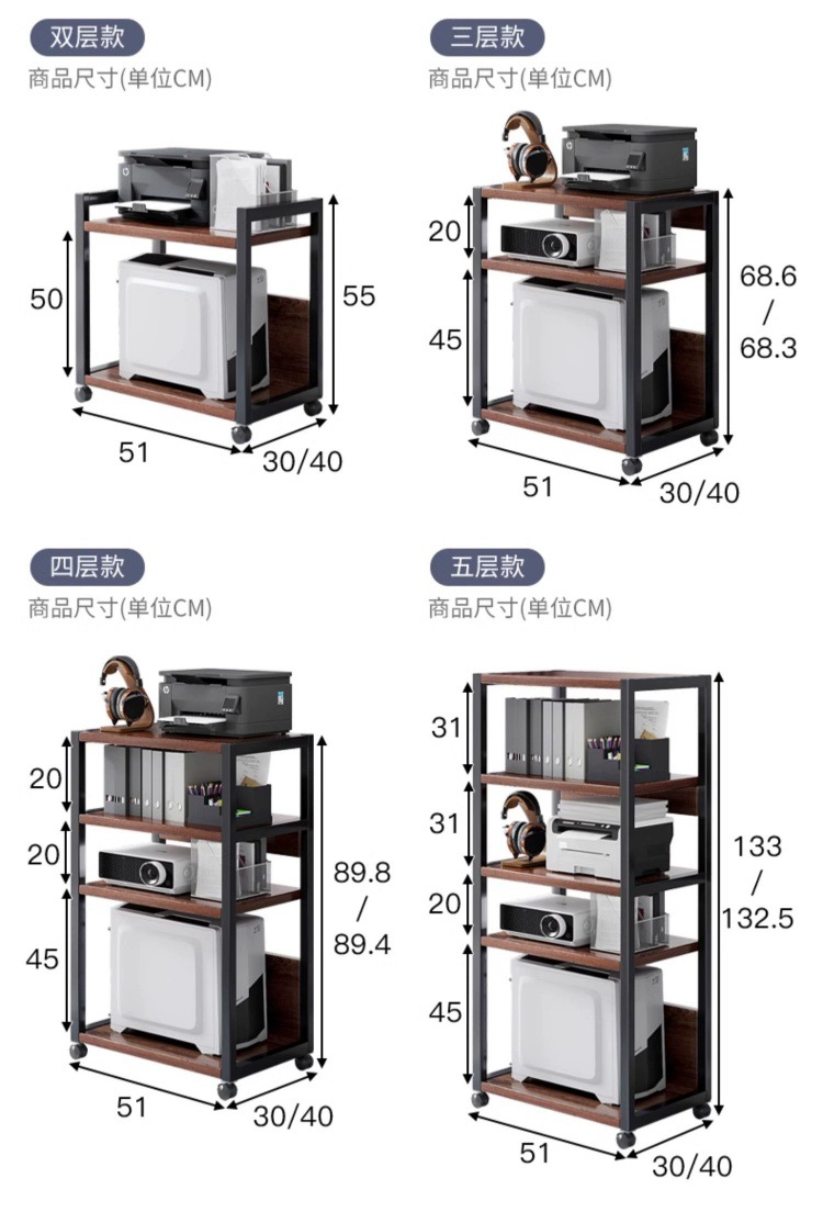 打印机置物架落地办公室多层移动收纳架子家用书桌电脑主机箱托架