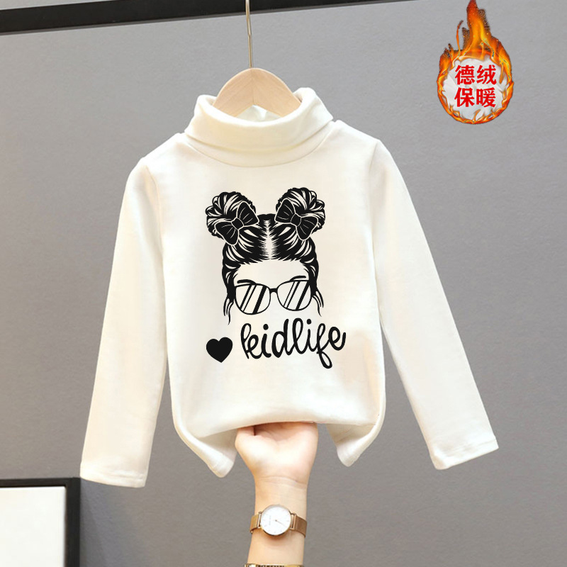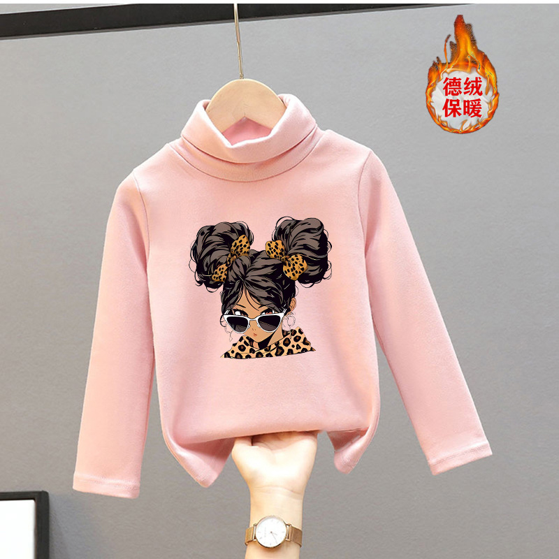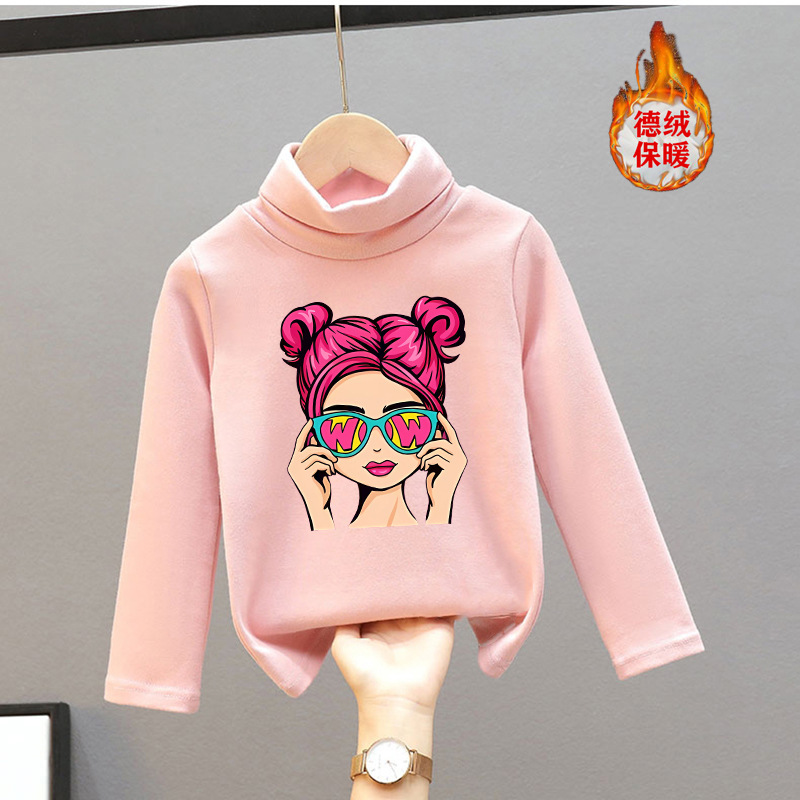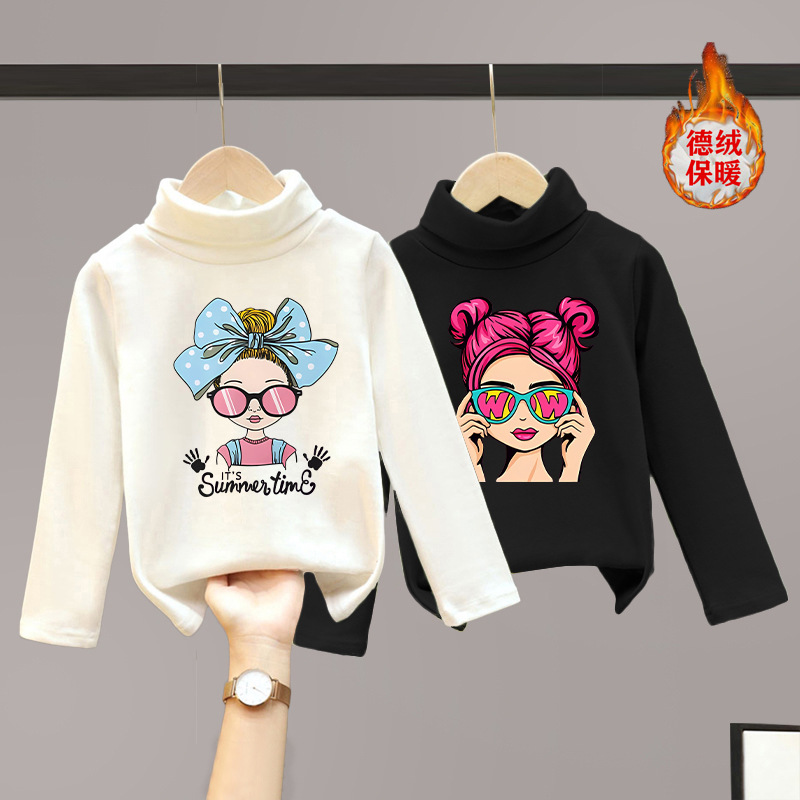 국경을 넘나 드는 봄과 가을 소녀의베이스 셔츠 기모 플러스 두꺼운 벨벳 한국식 반 높이 칼라 따뜻한 어린이 티셔츠 아동복스토어 가기