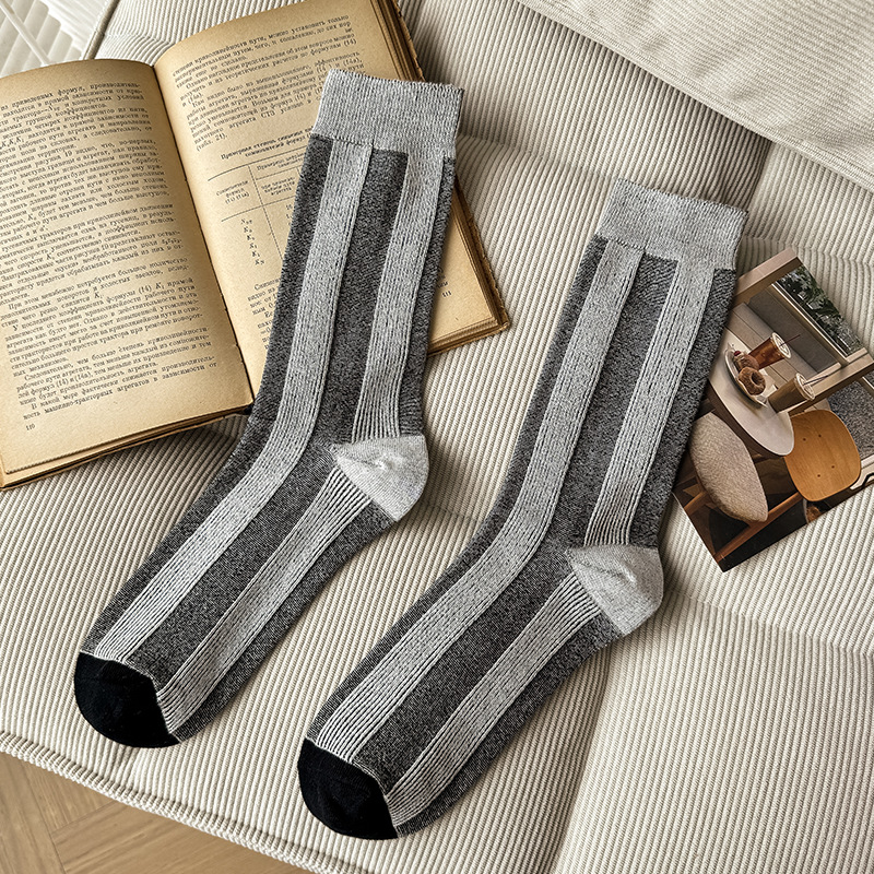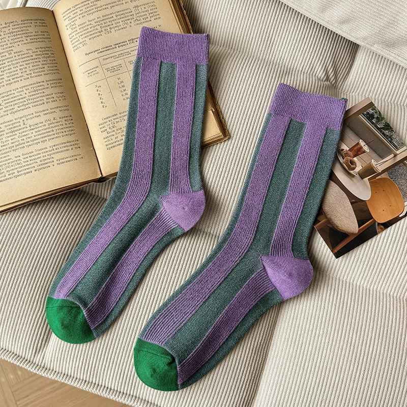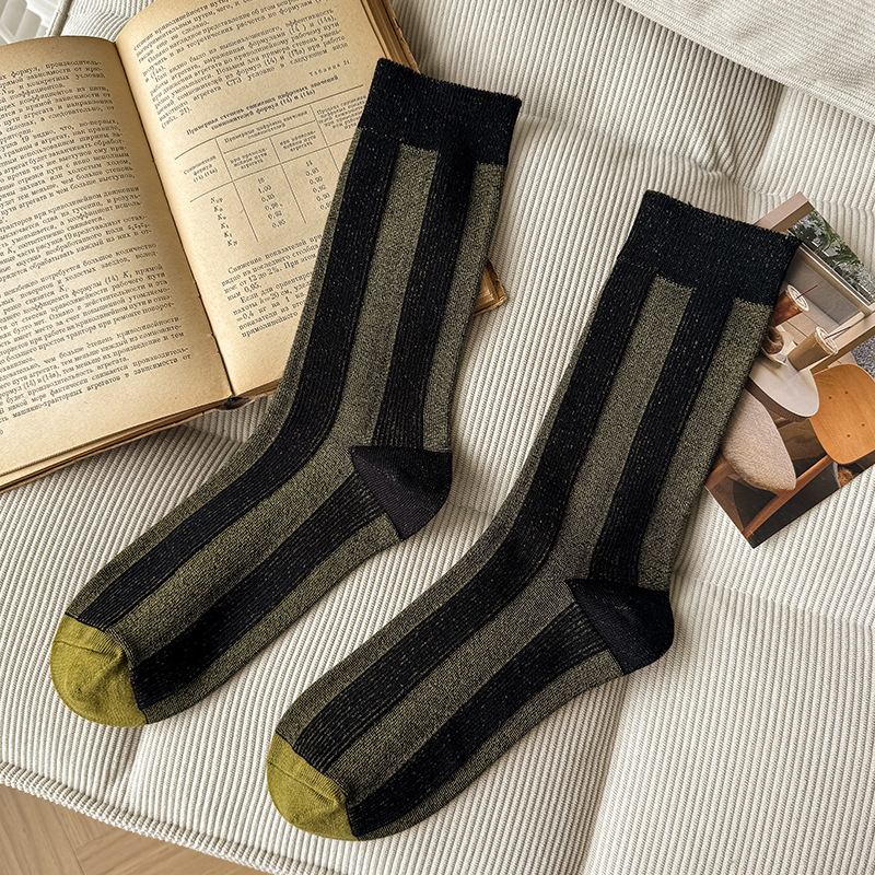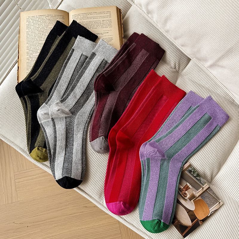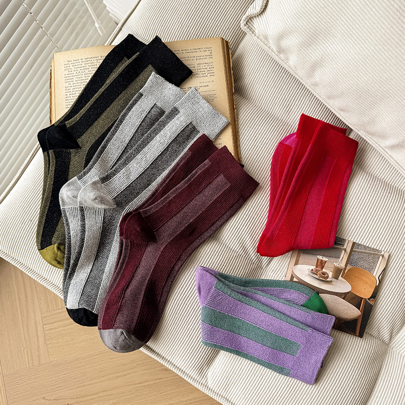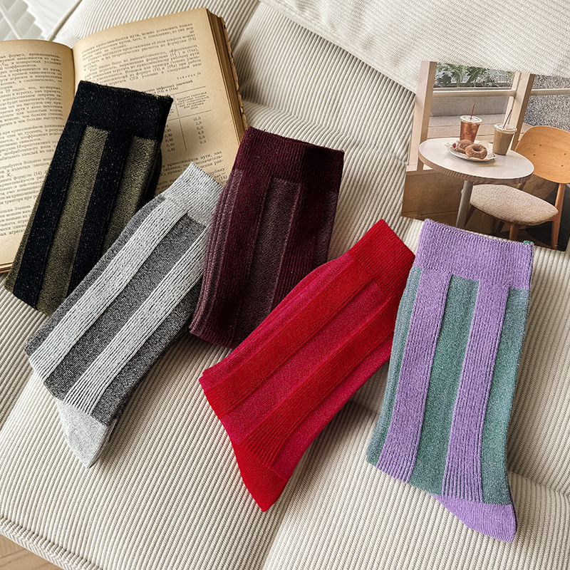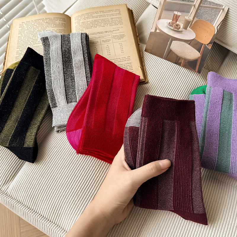 가벼운 럭셔리 인터넷 연예인 컬러 매칭 수직 스트라이프 캐주얼 미드 튜브 양말 가을 및 겨울 패션 작은 가죽 신발과 양말로 양말스토어 가기