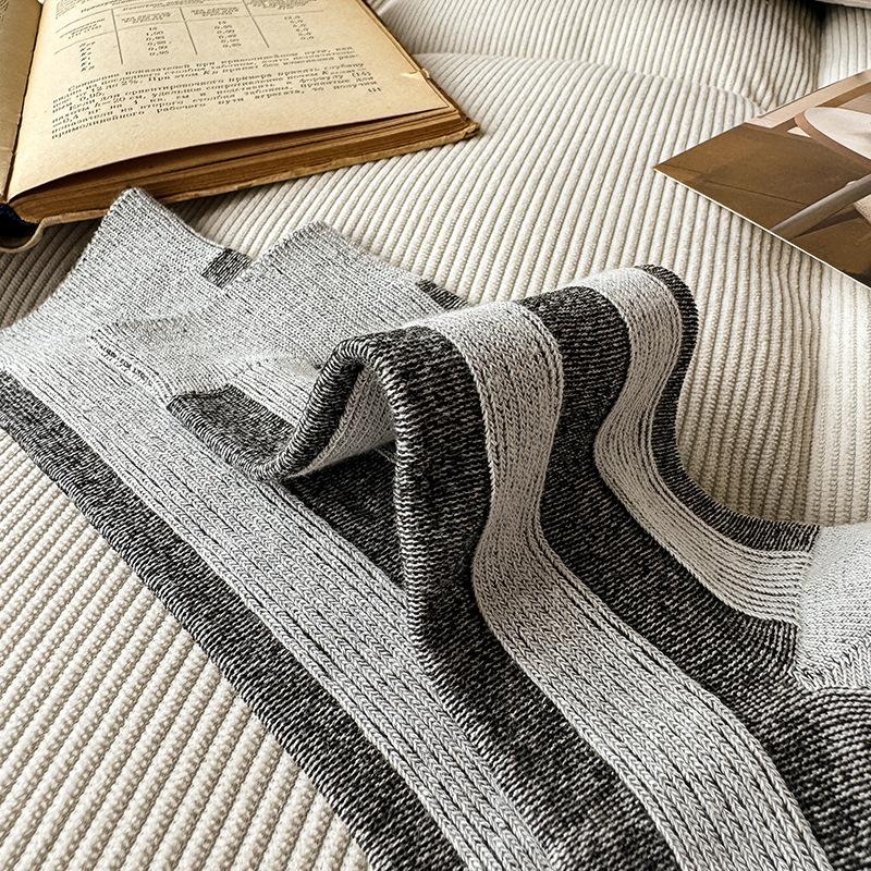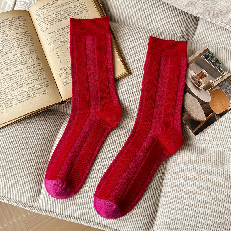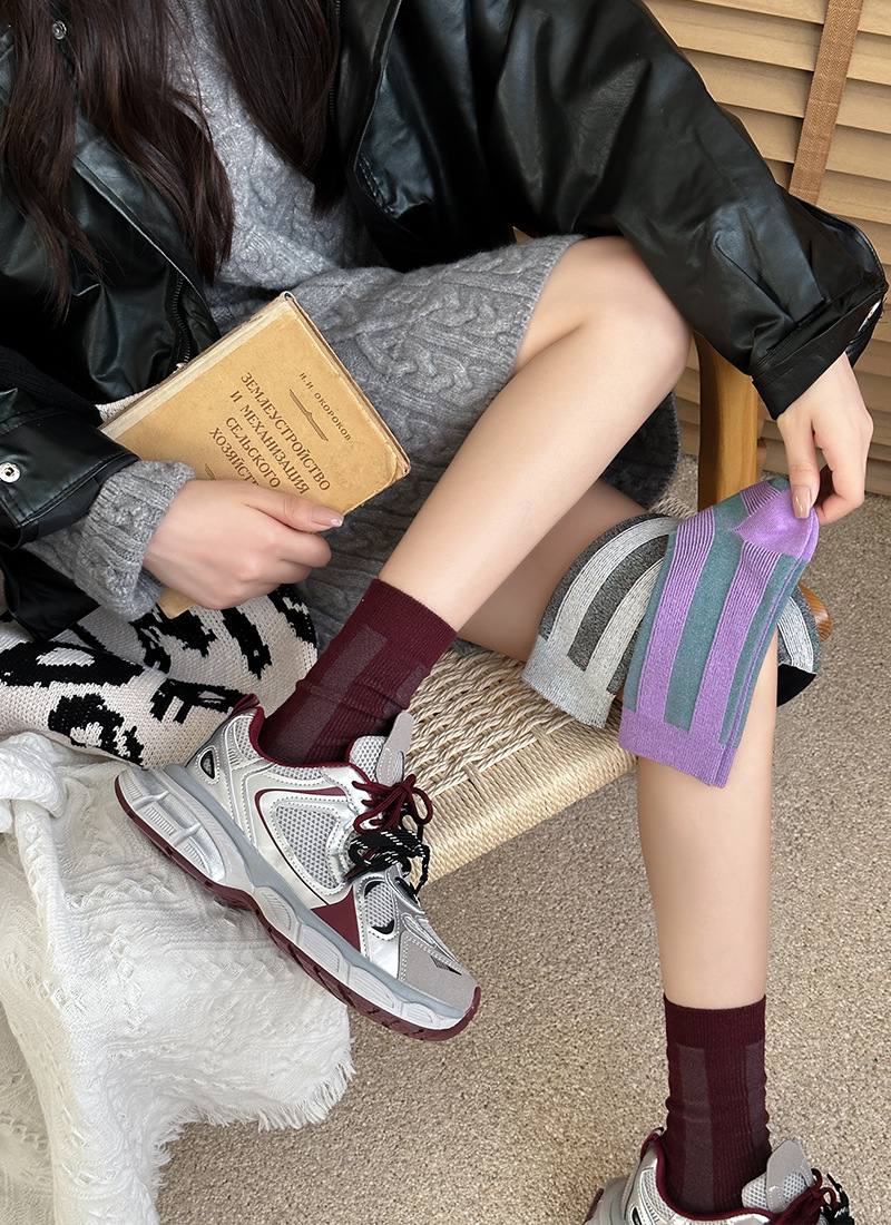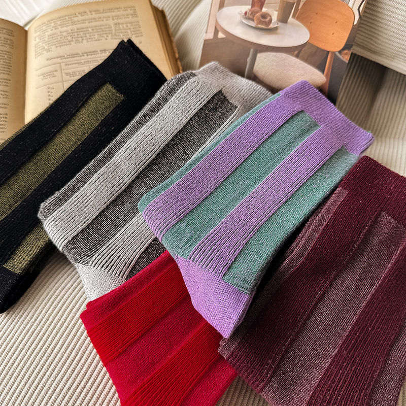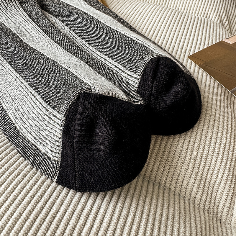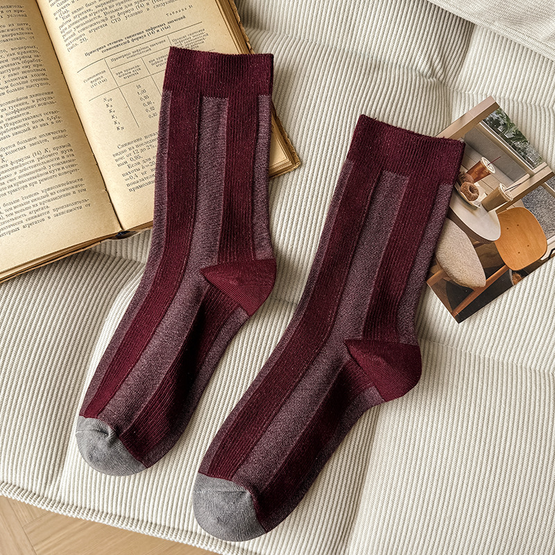 가벼운 럭셔리 인터넷 연예인 컬러 매칭 수직 스트라이프 캐주얼 미드 튜브 양말 가을 및 겨울 패션 작은 가죽 신발과 양말로 양말스토어 가기