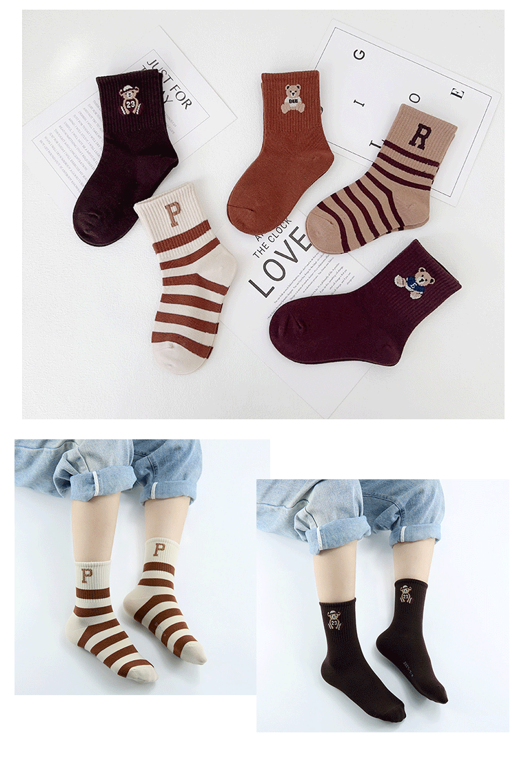 이순신 한 쌍의 어린이 양말 가을과 겨울 새로운 만화 곰 튜브 양말은면을 빗어 큰 어린이 패션 브랜드 스포츠 양말 뼈없는스토어 가기