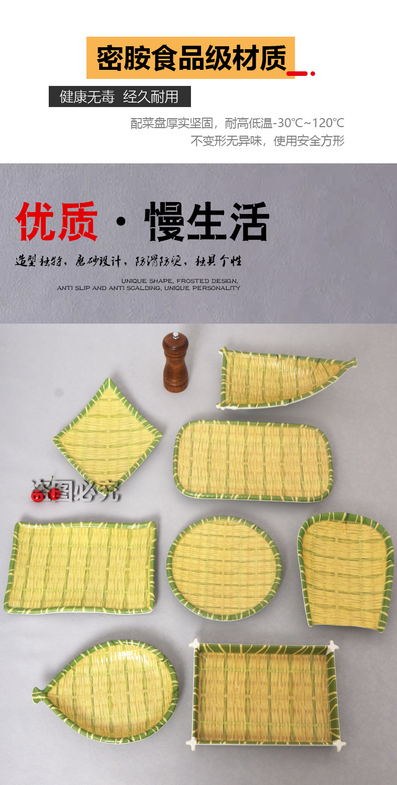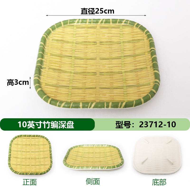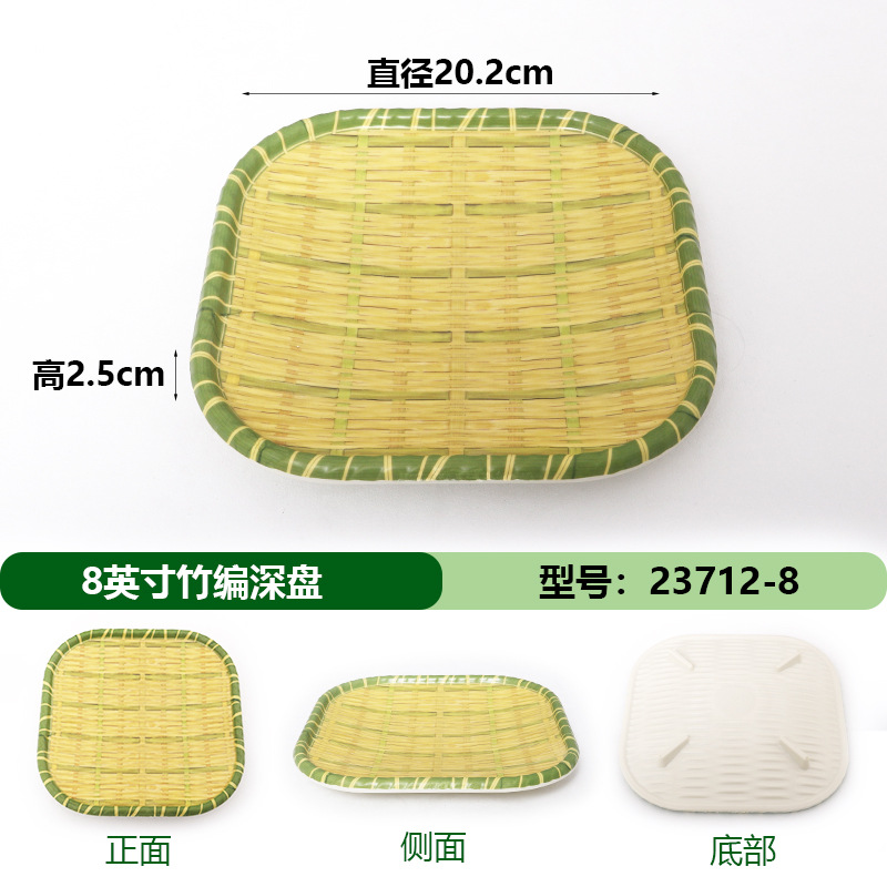 모조 대나무 디스크 창조적 인 라운드 멜라민 식기 플라스틱 바베큐 튀김 간식 차가운 접시 상업 작은 튀김 요리스토어 가기