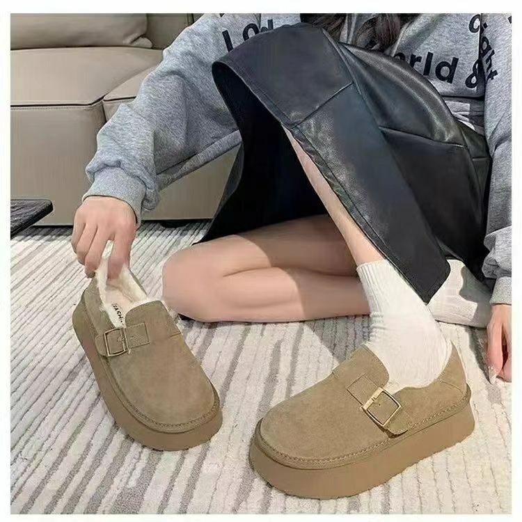 Birkenstock 신발 2024 두꺼운 밑창 간단한 스노우 부츠 여성의 겨울 새로운 기모 두꺼운 따뜻한 면화 신발