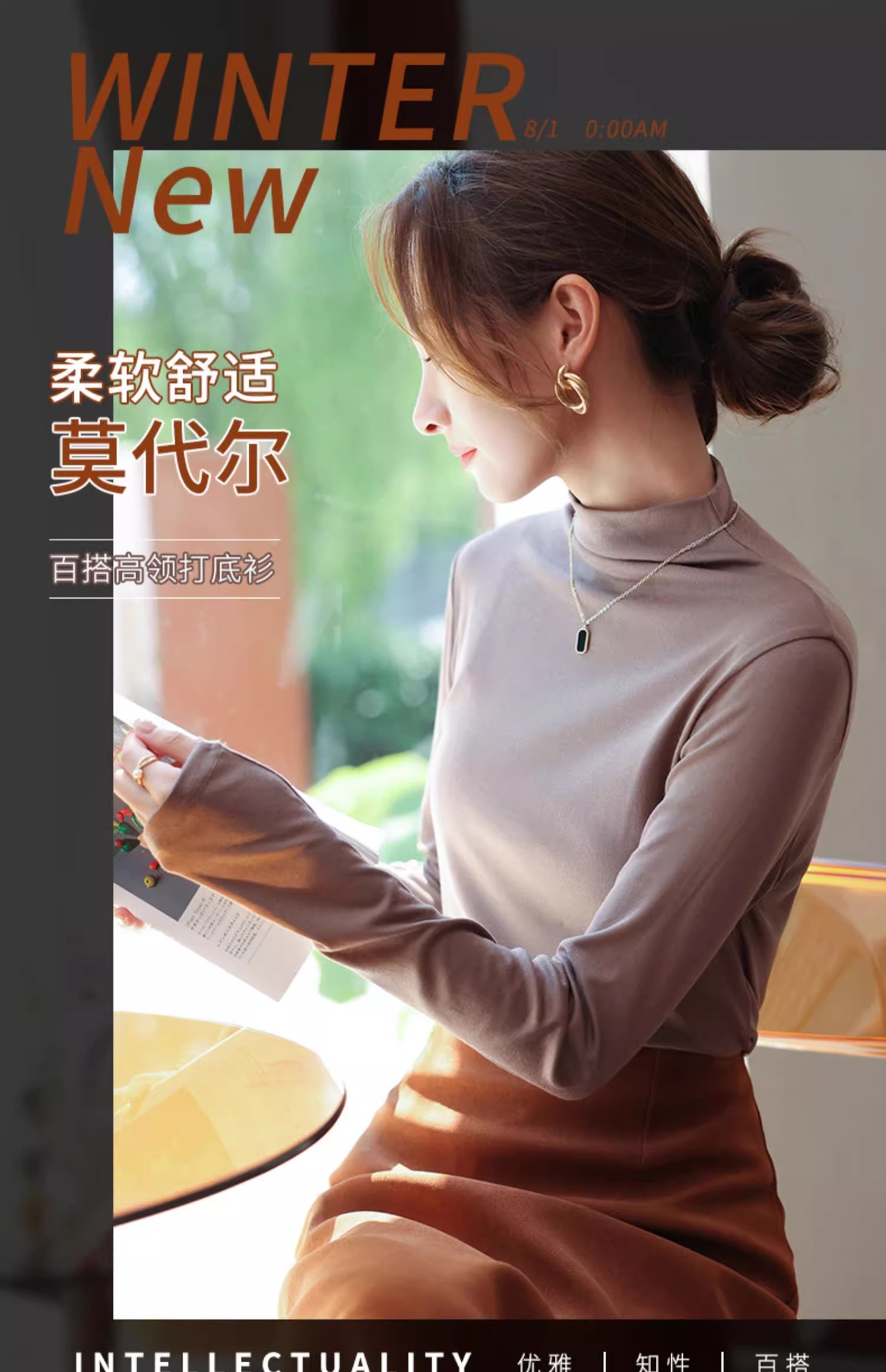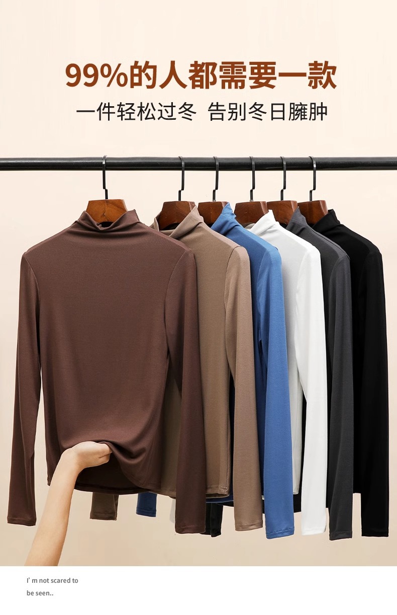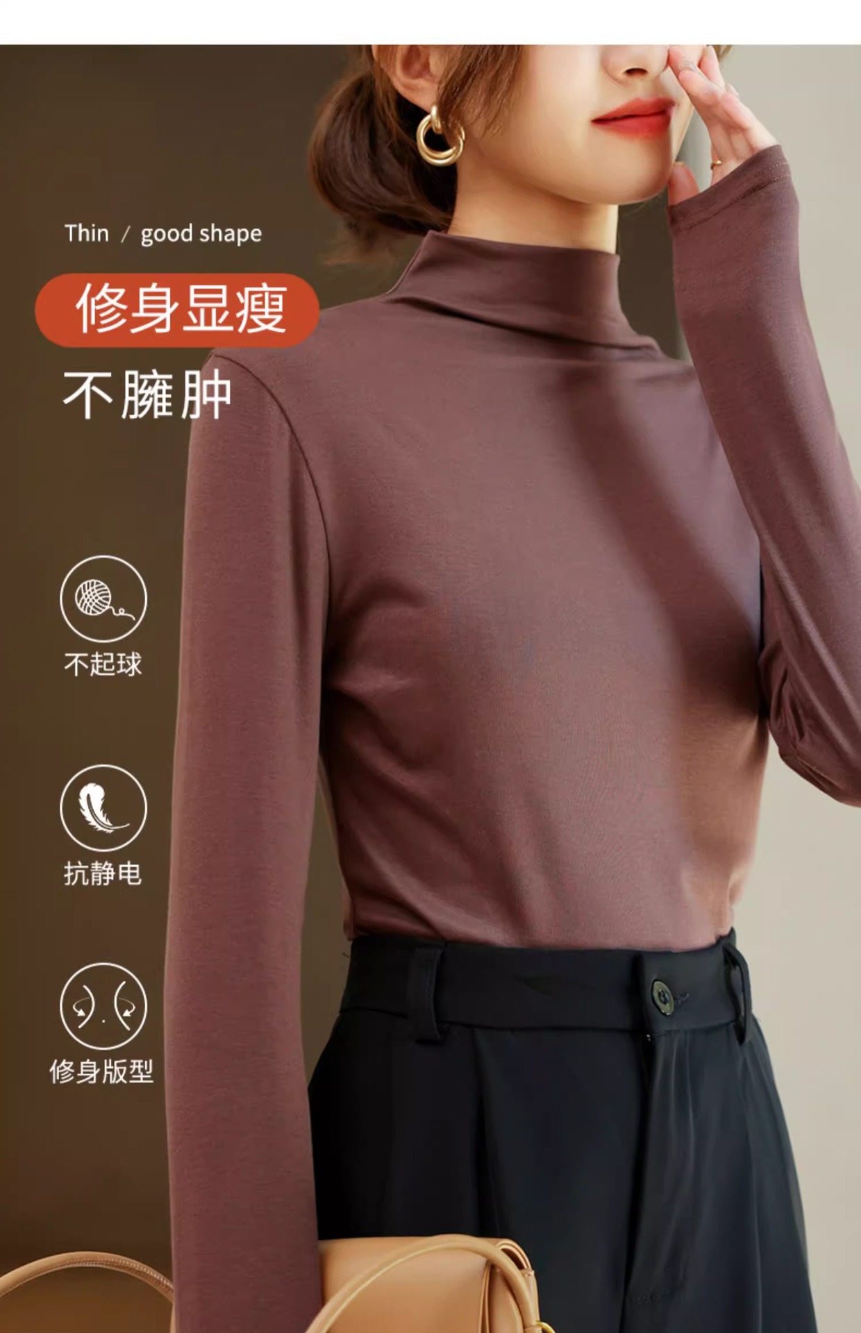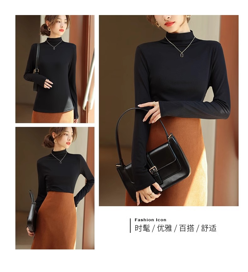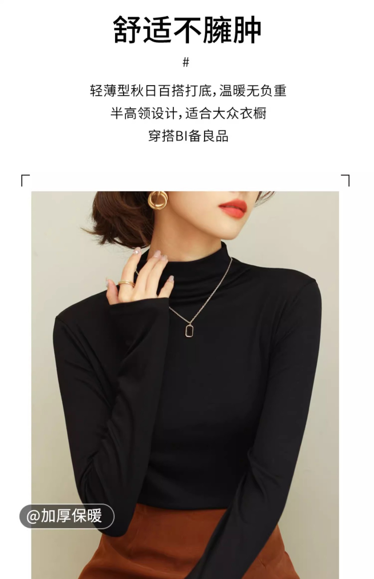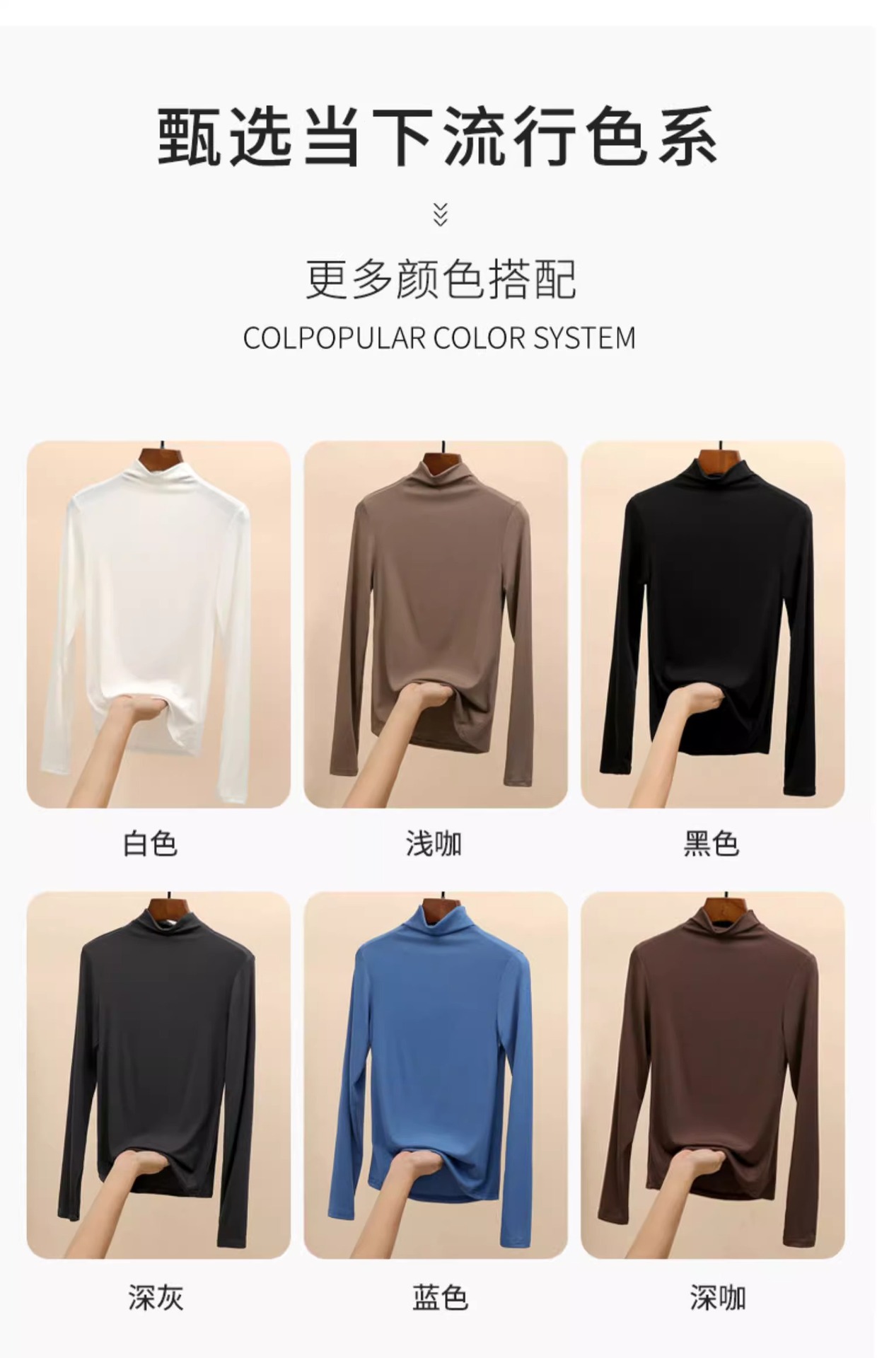 반 높이 칼라 모달면 베이스 셔츠 여성의 가을과 겨울 내부 긴 소매 중 칼라 블랙과 화이트 탑 2024 가을 뉴스토어 가기