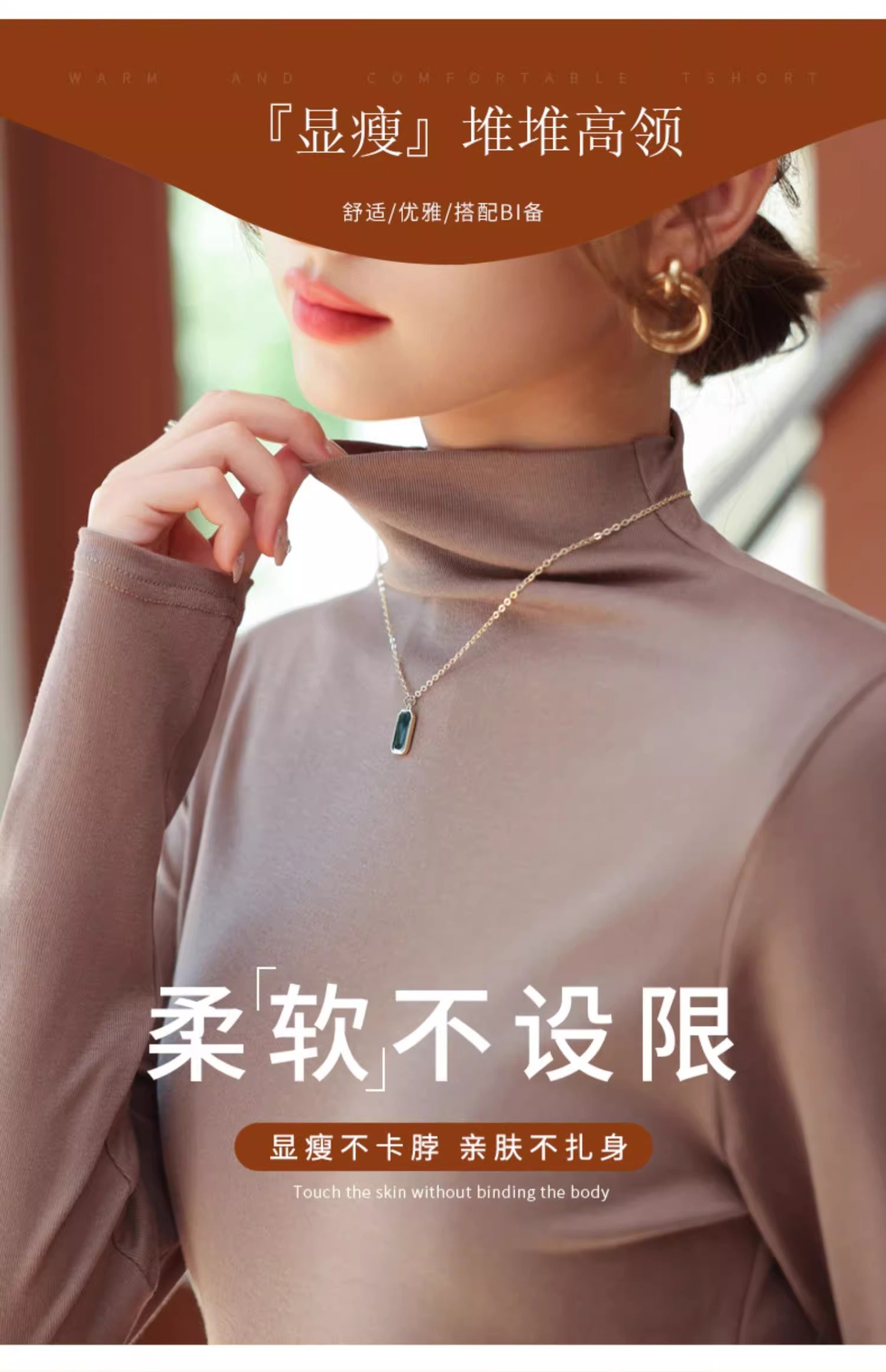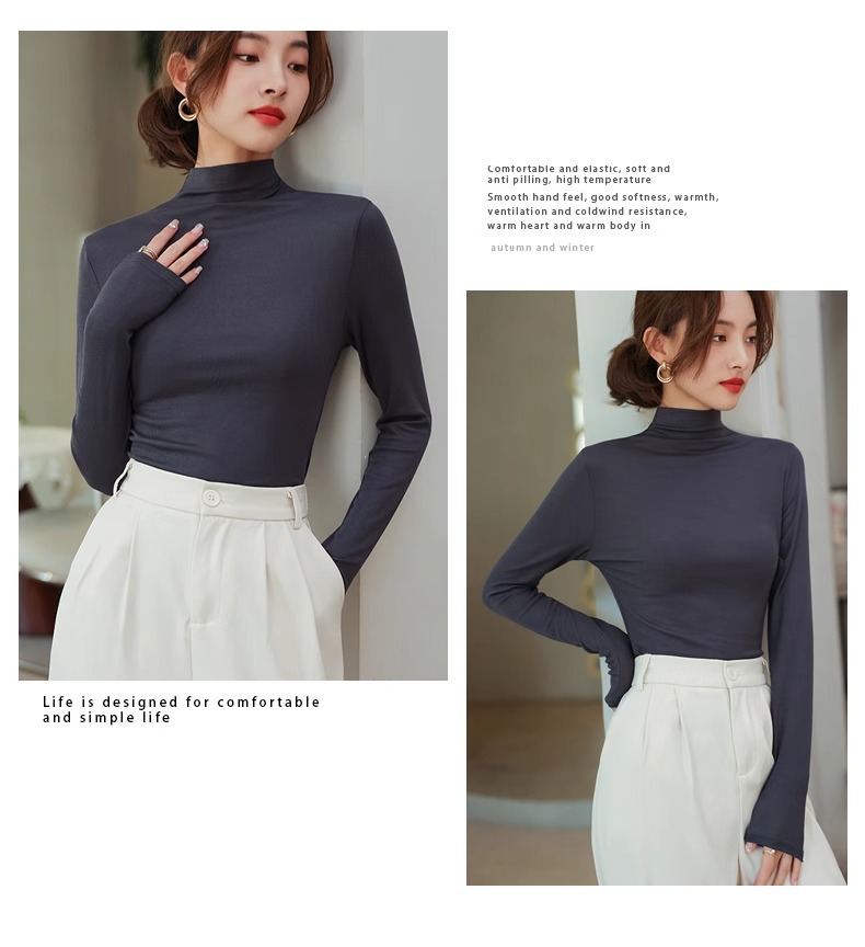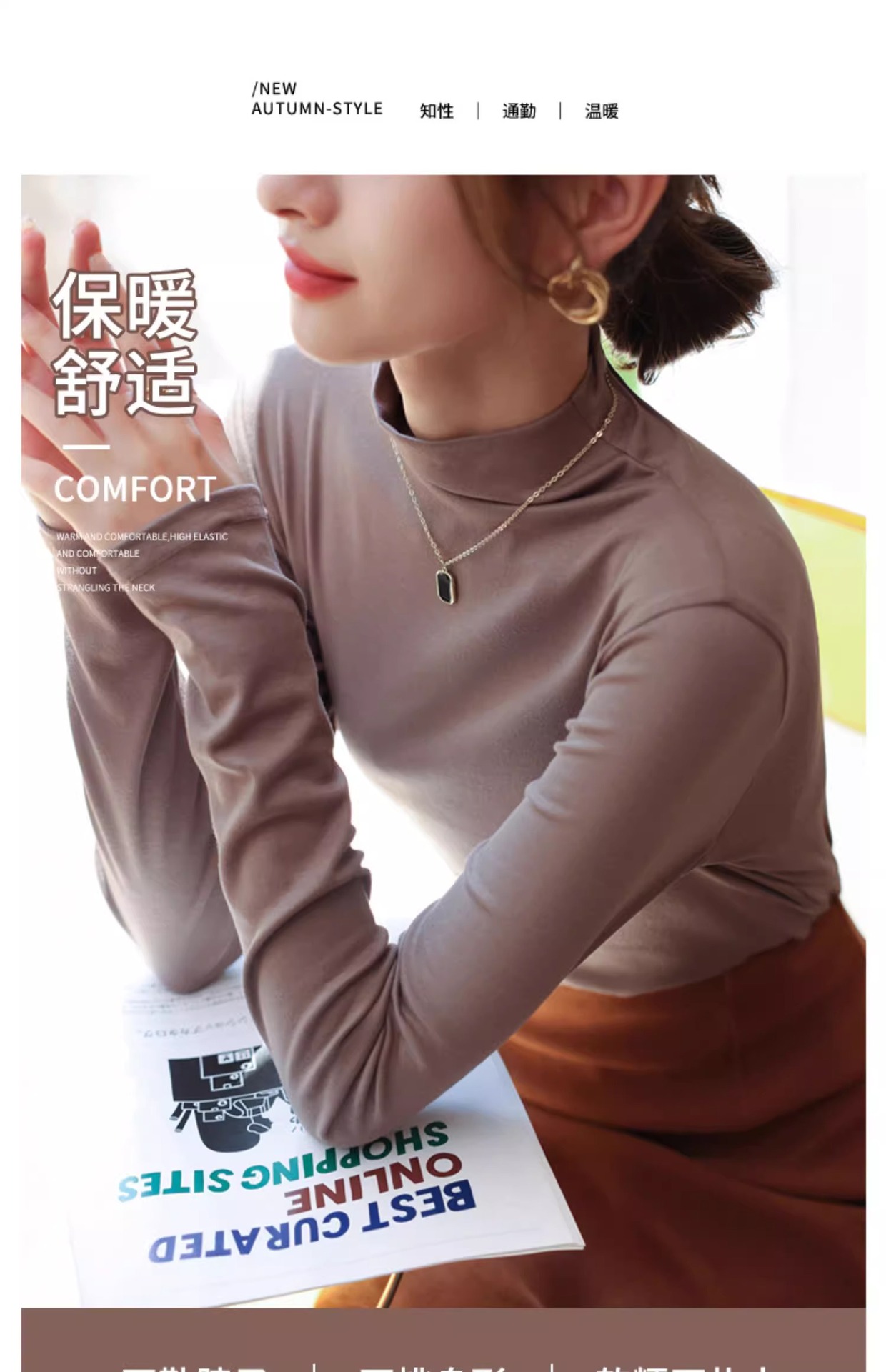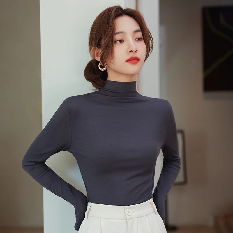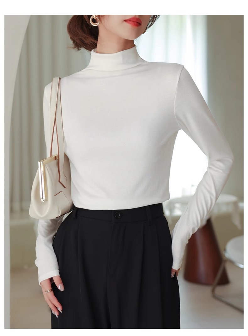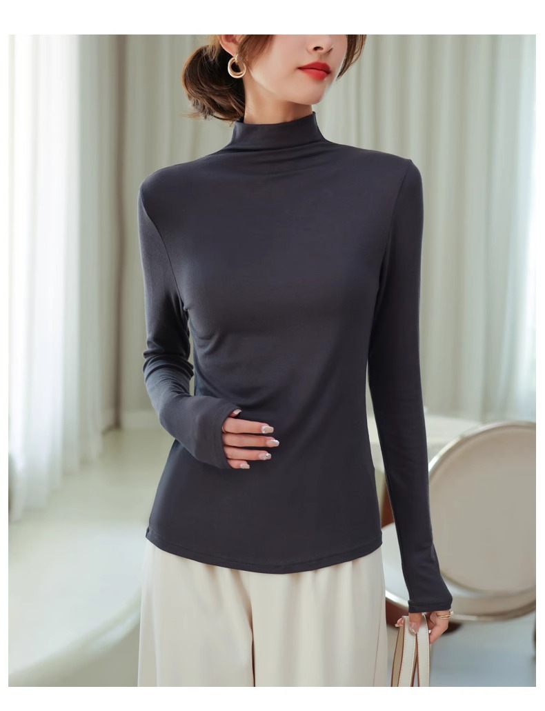반 높이 칼라 모달면 베이스 셔츠 여성의 가을과 겨울 내부 긴 소매 중 칼라 블랙과 화이트 탑 2024 가을 뉴스토어 가기