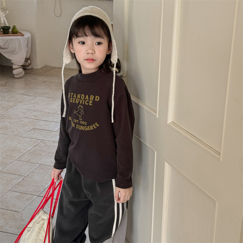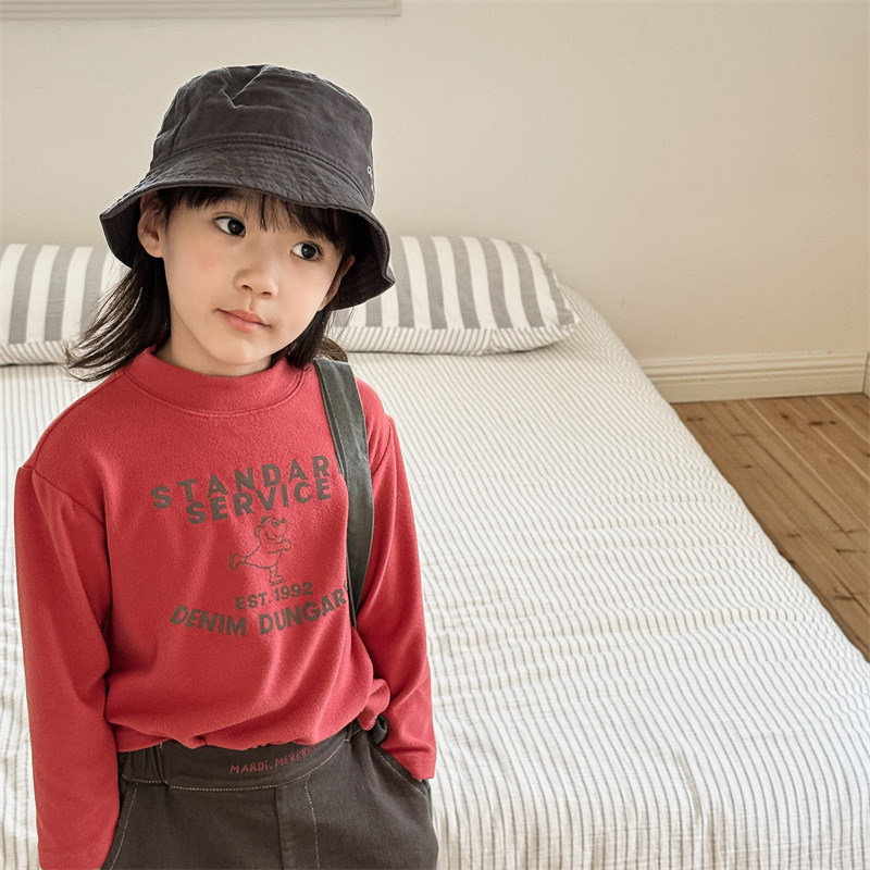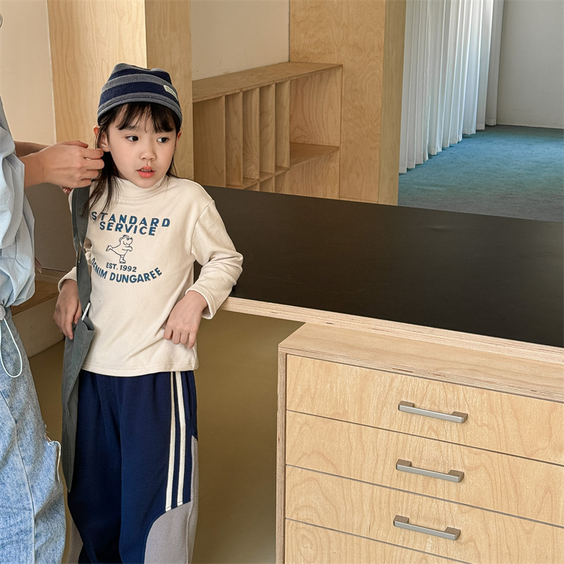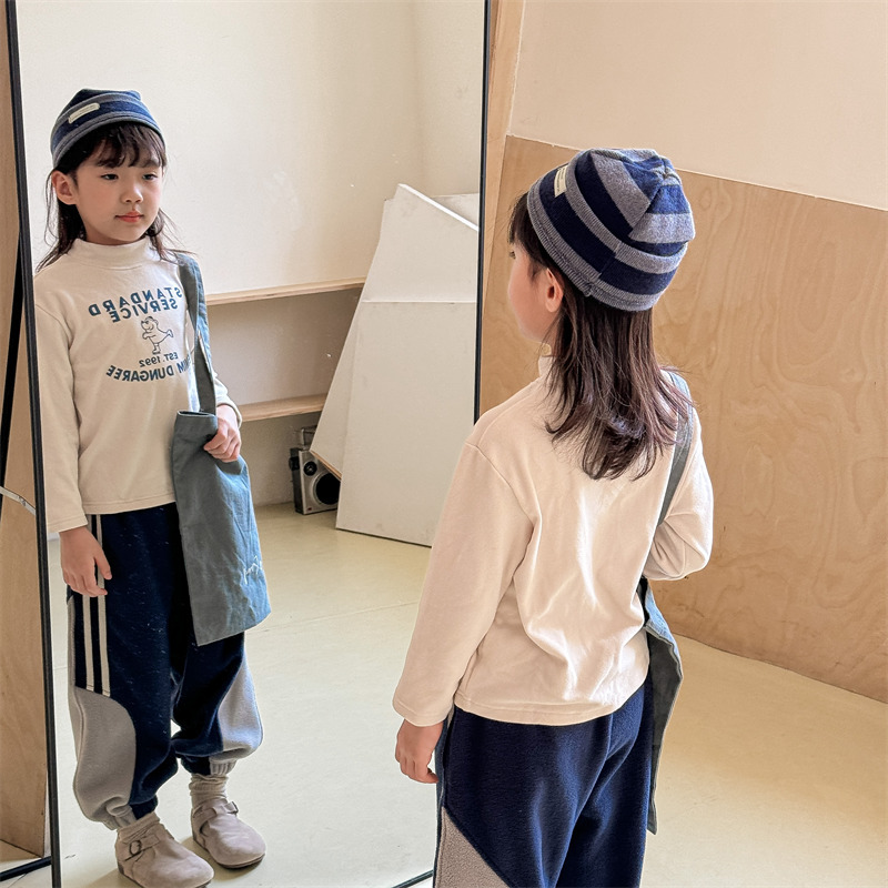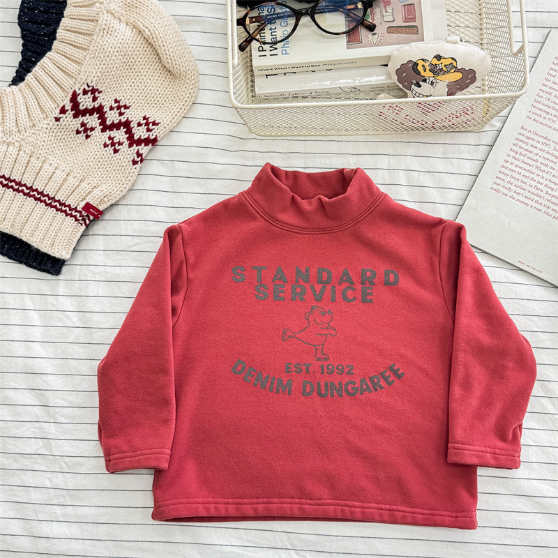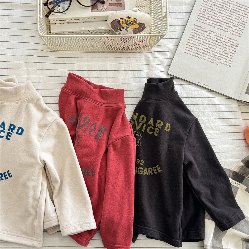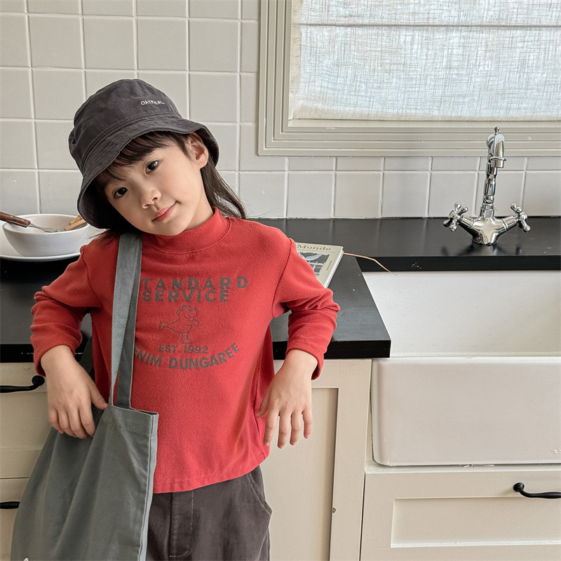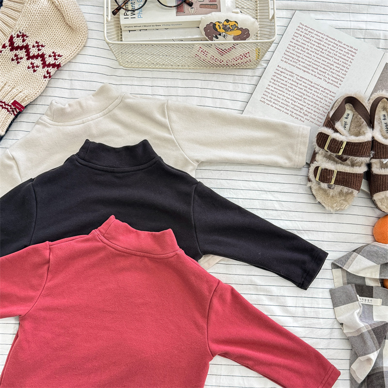 2026 봄 아동복 가을 아동복 한국 스타일 플리스 하이넥 티셔츠 남녀 아동용 따뜻한 긴팔 이너웨어 5637